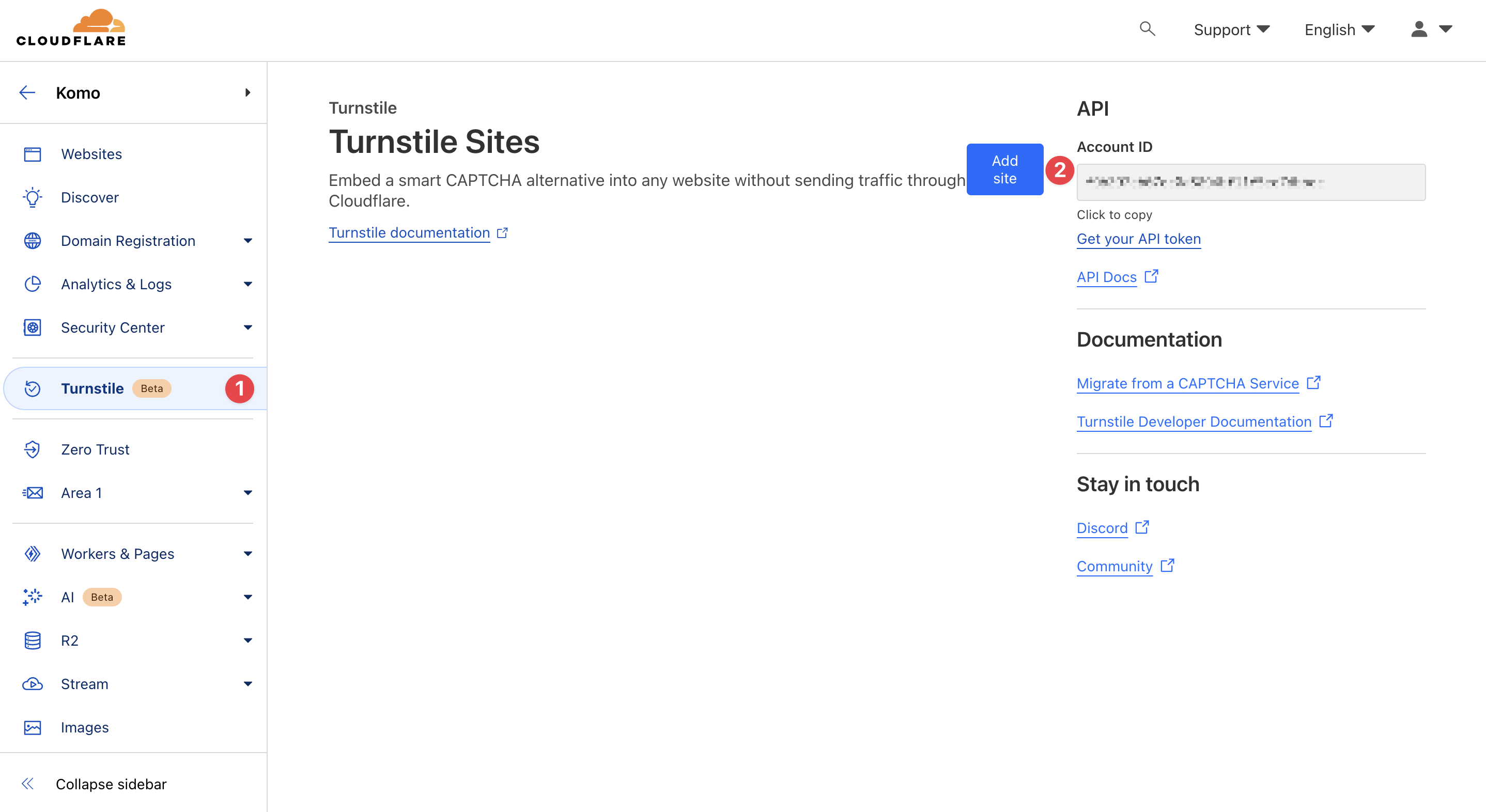 - (1) Navigate to the sidebar and click on Turnstile