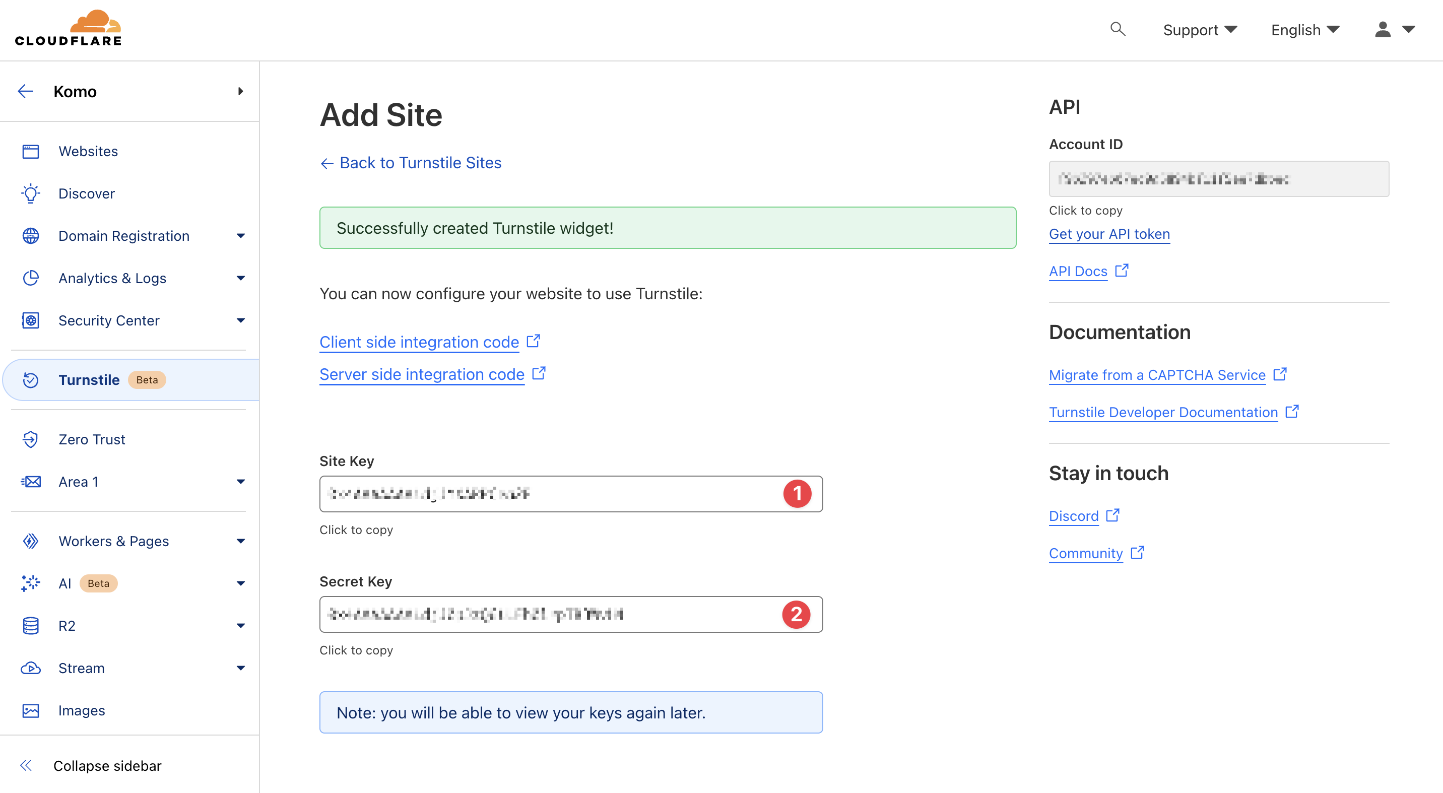 Step 2: Copy the Turnstile keys