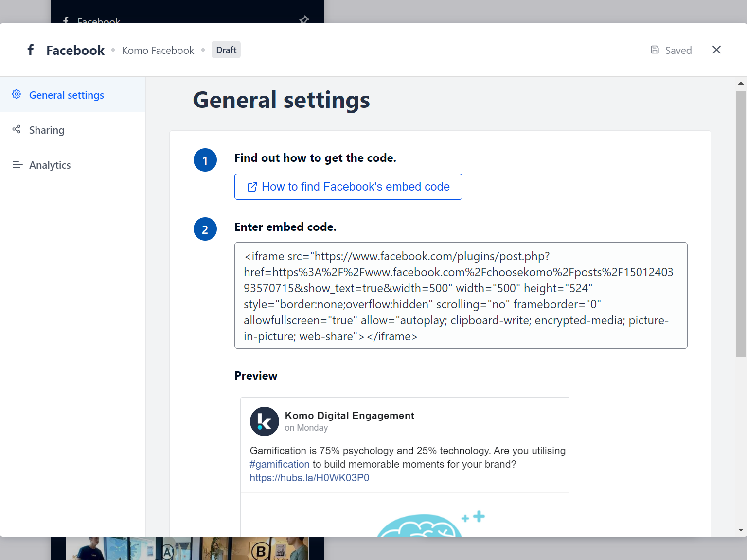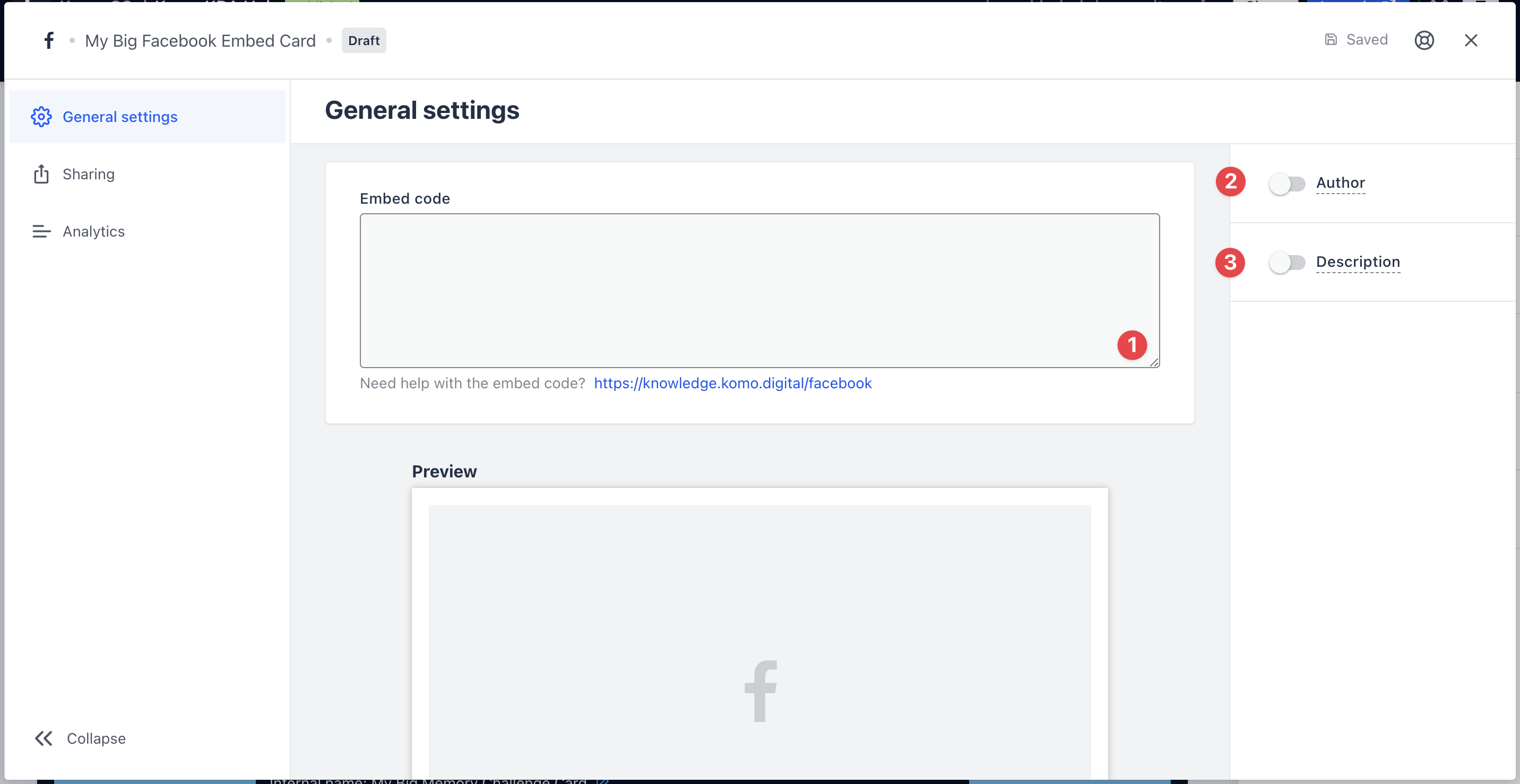 - (1) Get the embed code and paste it here and a preview will appear below.