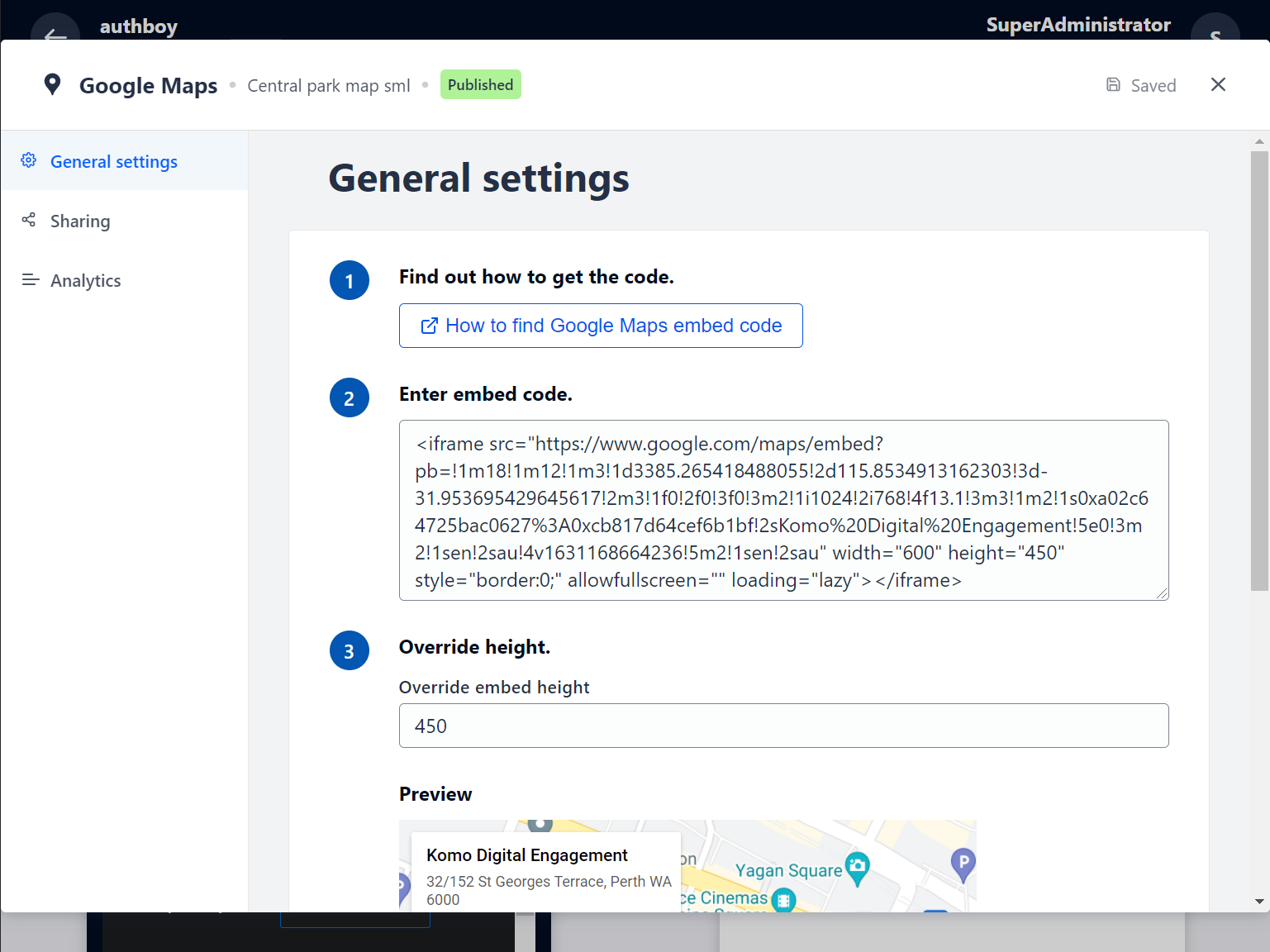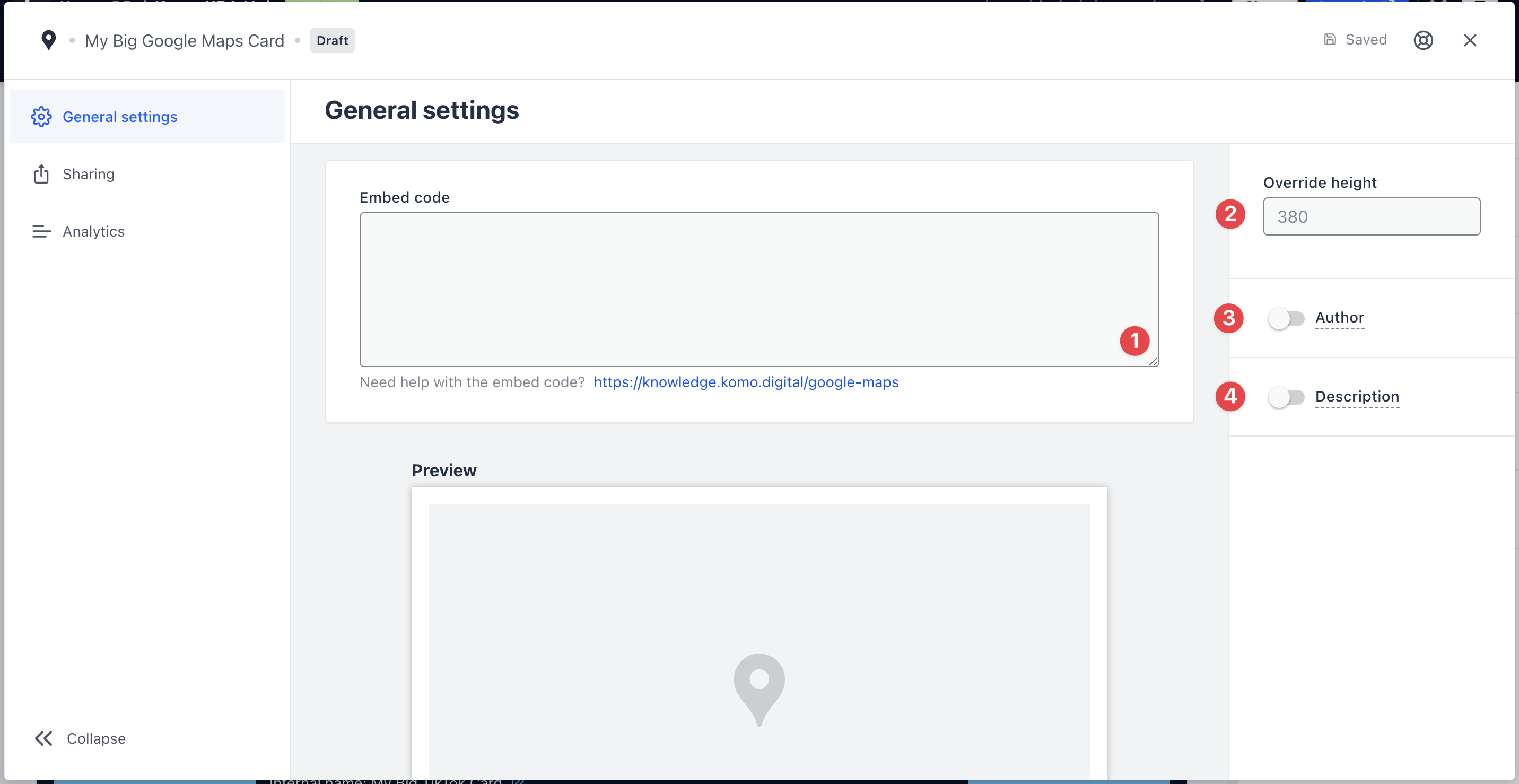 - (1) Get the embed code and paste it here and a preview will appear below.