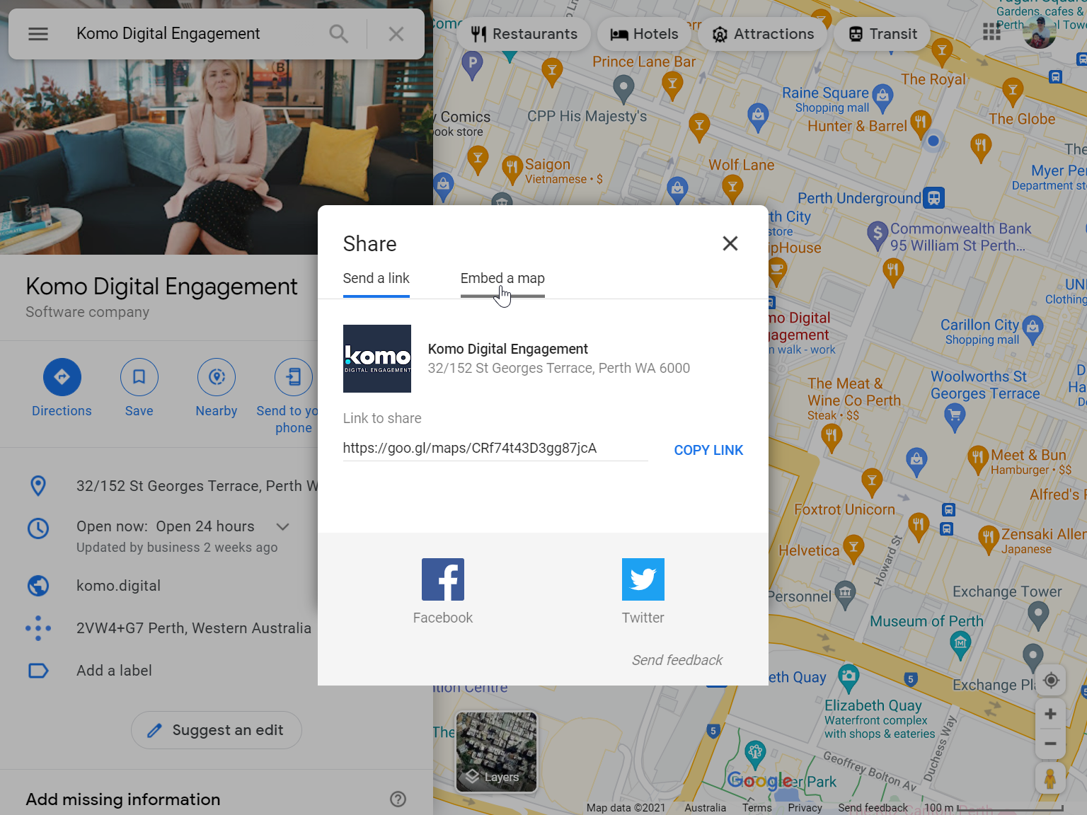 - Once there, click Add content, from here select Embeds and then Google Maps.