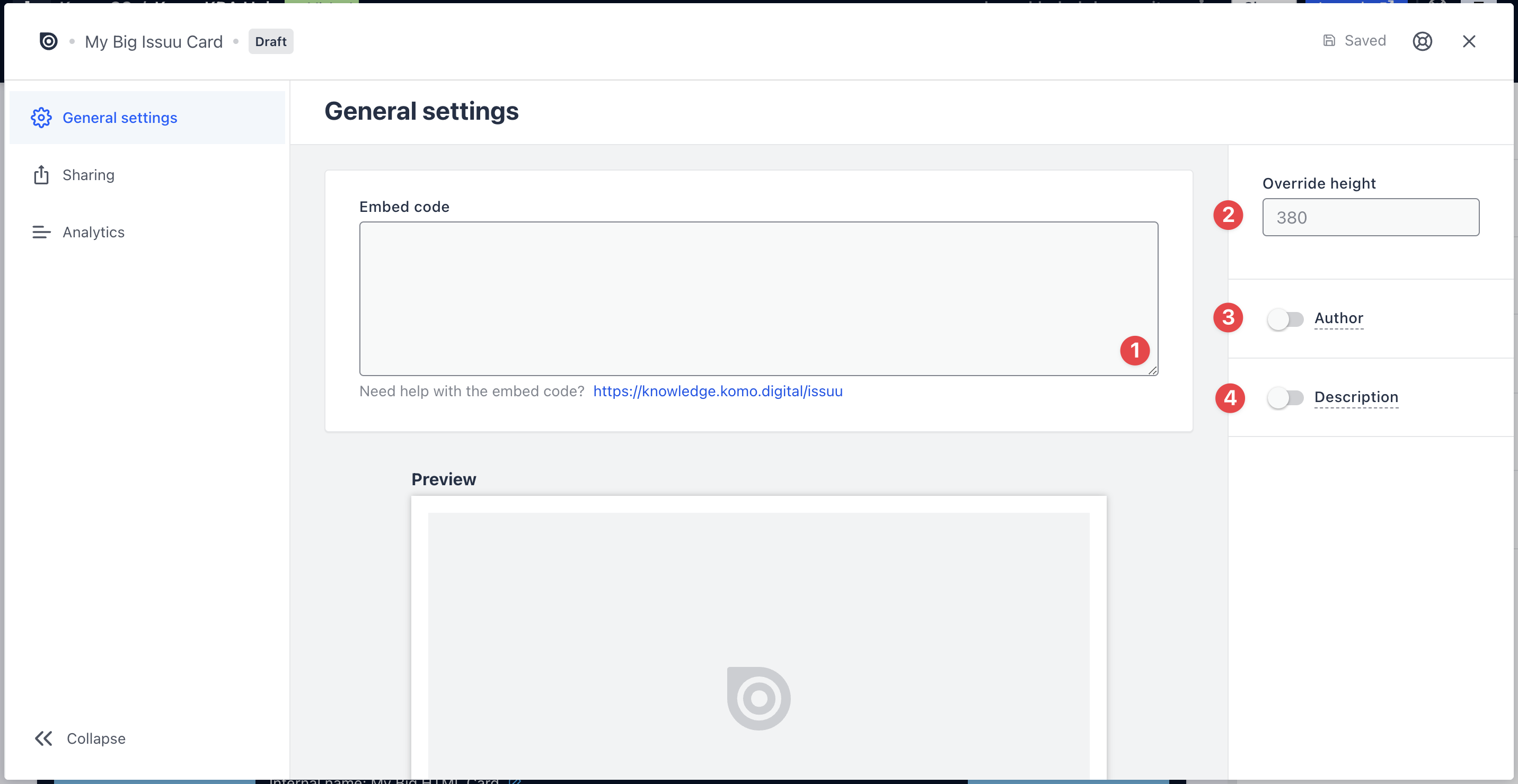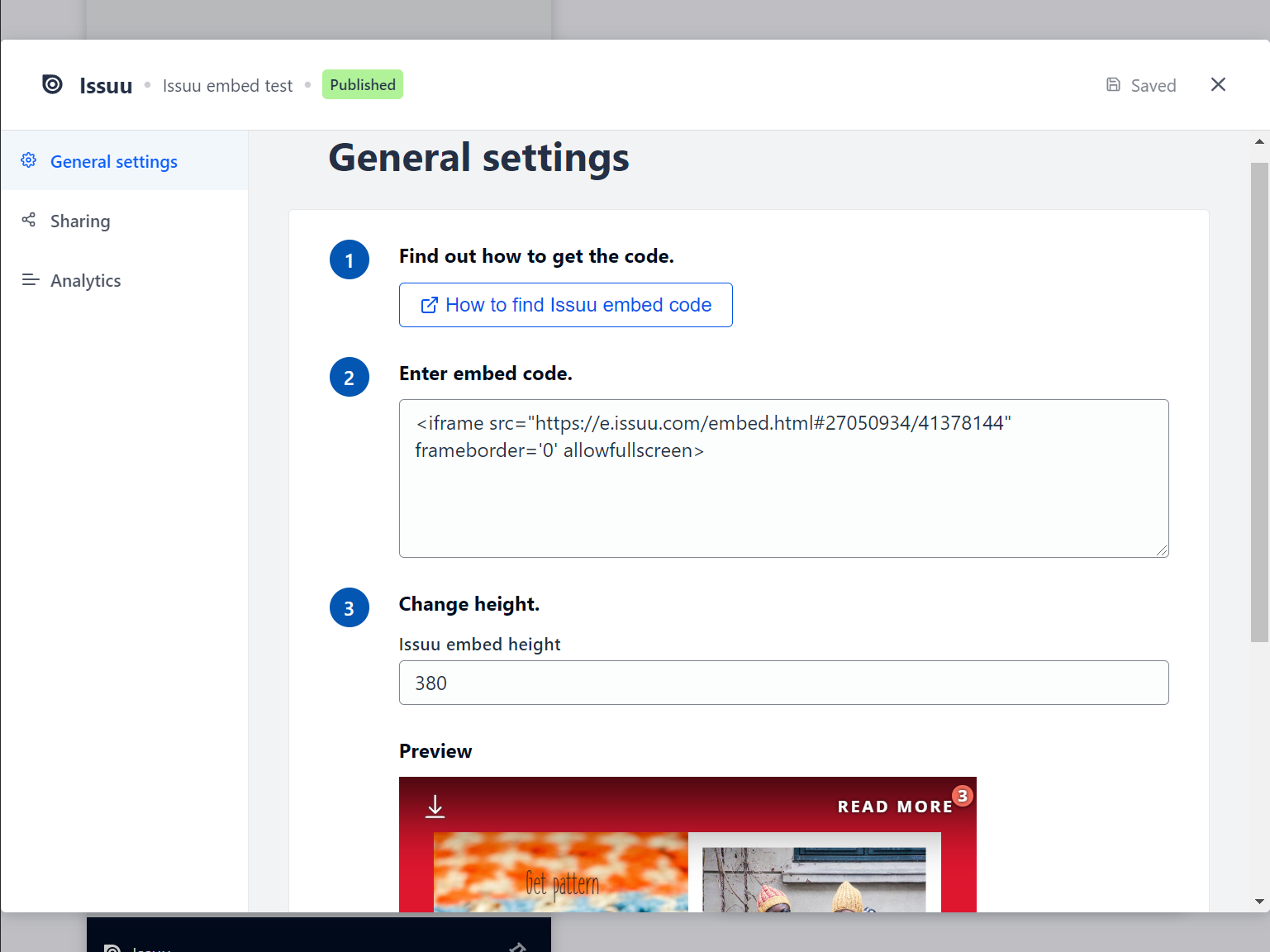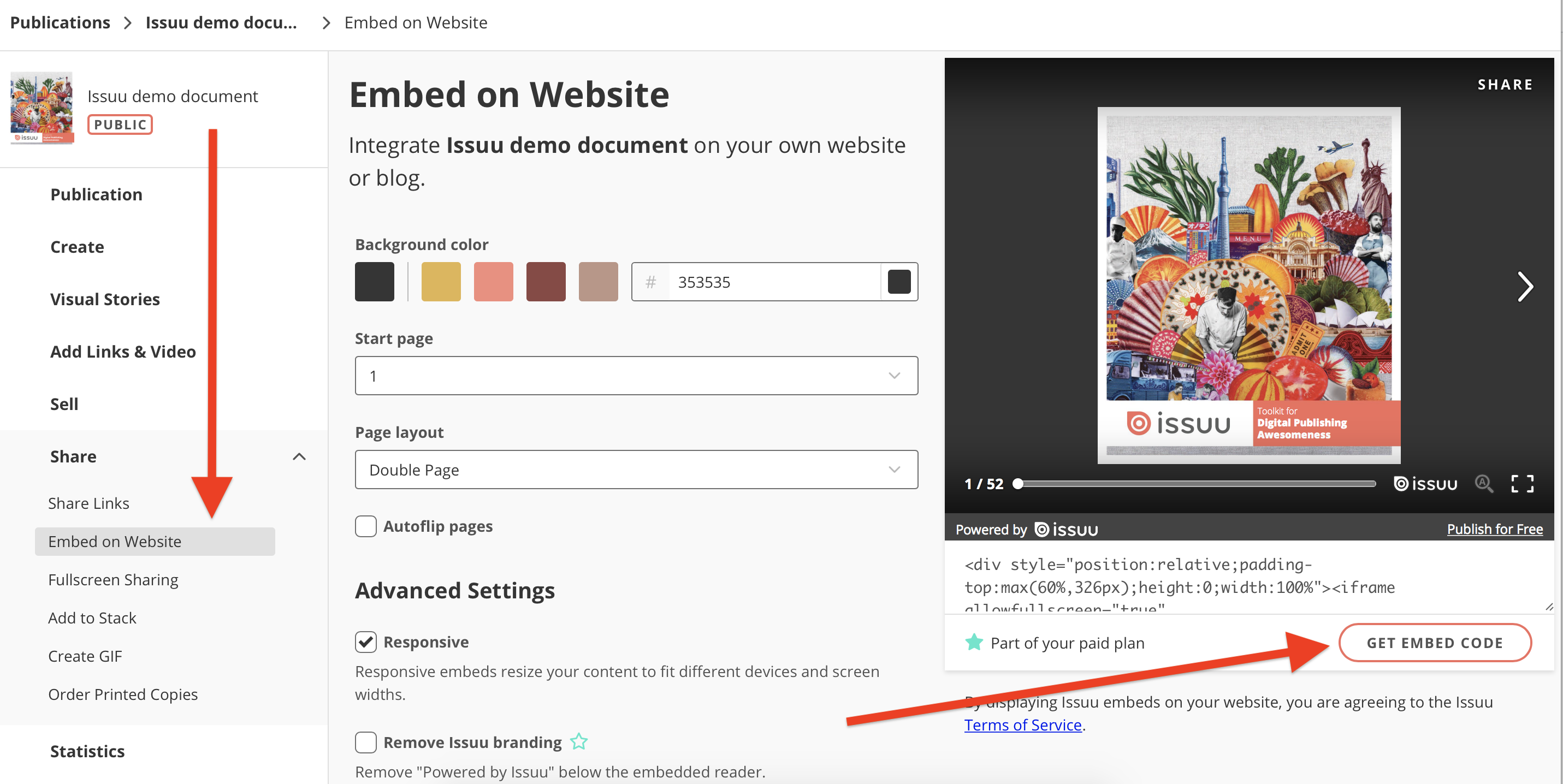 - Embedding is not available for Issuu users on the Basic plan - only the paid plans support it.