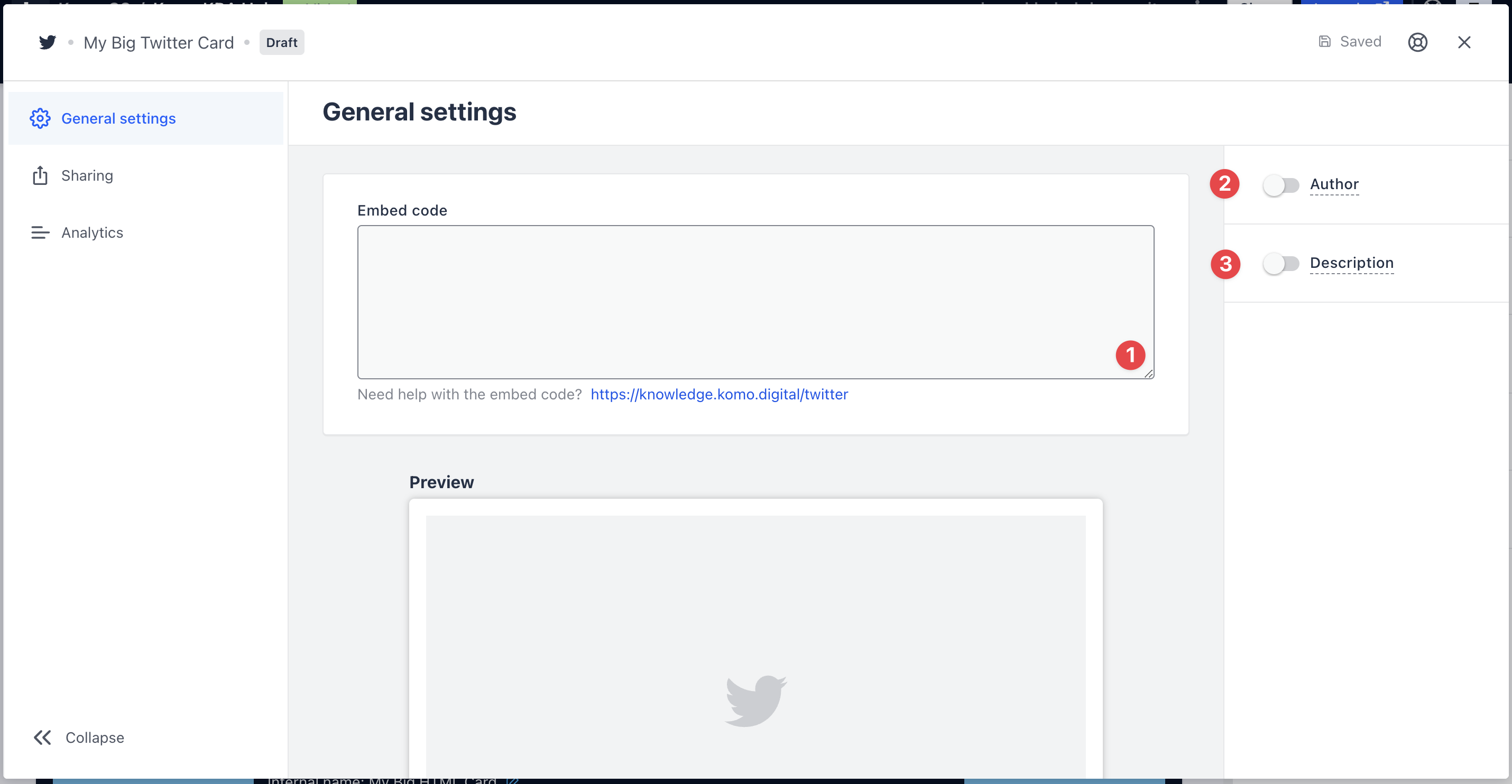 Setting a height on the embedded timeline will introduce an additional scrollbar inside the embedded timeline content. We do not recommend setting a width - the content will automatically try to scale to the best width. - (2) You can add an author tag by displaying the brand or person who’s responsible for the card content.