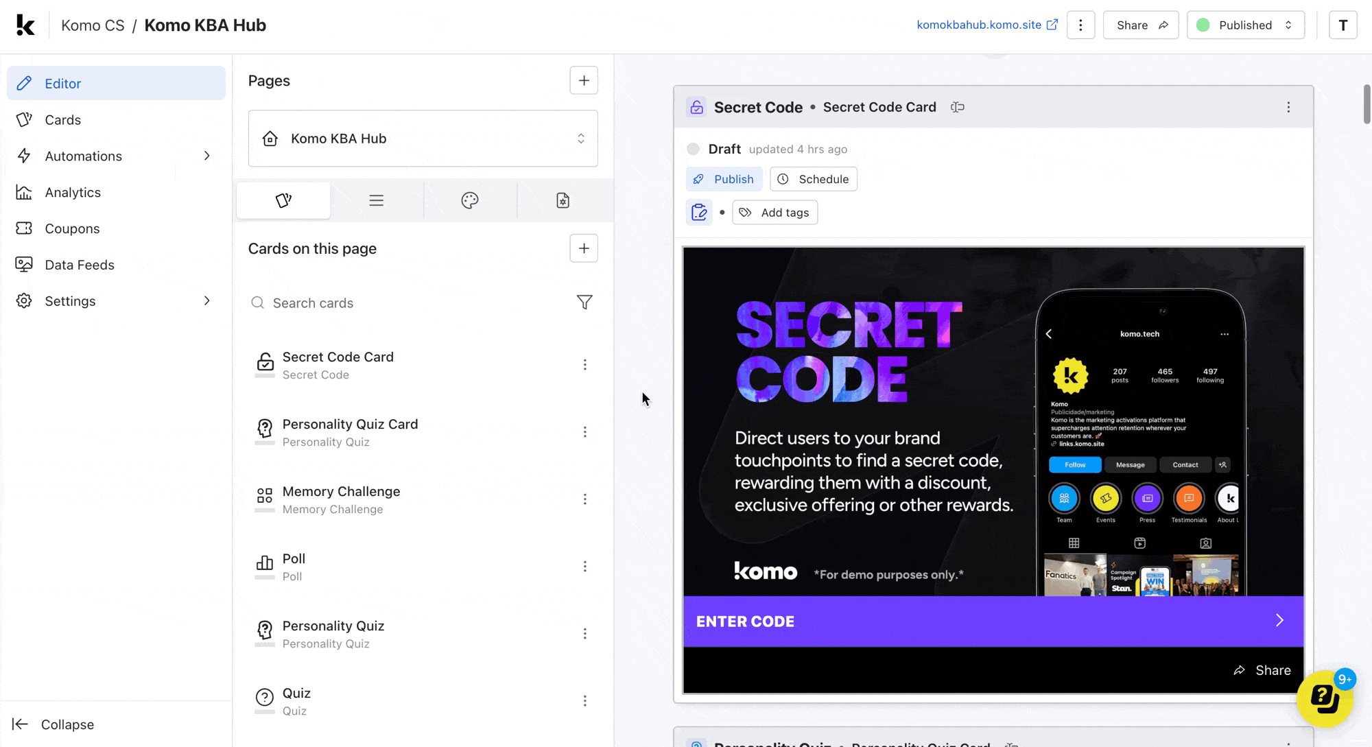 • Go back to your Hub and select the Settings cog on the relevant card.