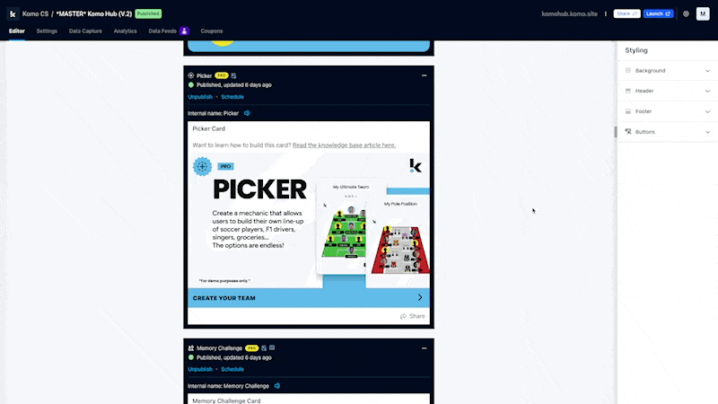 Why do my analytics look different for each different Card I use? Our collection of content pieces are all vastly different, to allow you to create interactive, immersive campaigns that are engaging in different ways! For this reason, it’s only fitting that different mechanics should have different analytics to assist you as you test and learn different Cards on the Platform. For example, item picks (made for the Picker Card) are not going to be relevant statistics for a Live Trivia Card.