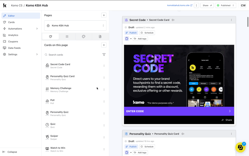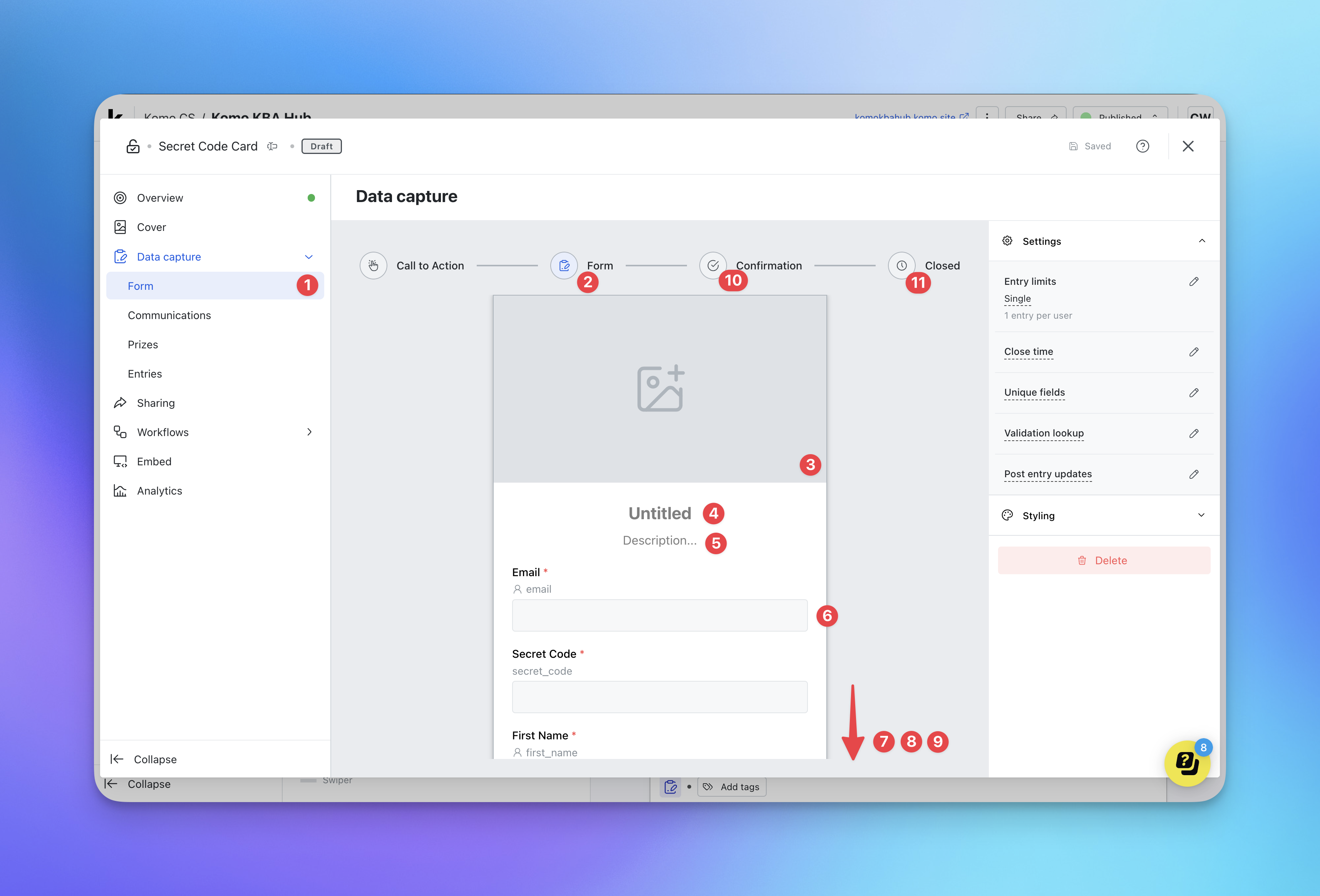 If you’re wanting to run a competition on your card you’ll need to add a data capture form. This form allows you to gather entrant information whilst also granting the ability to send communications and prizing.How do I set it up?