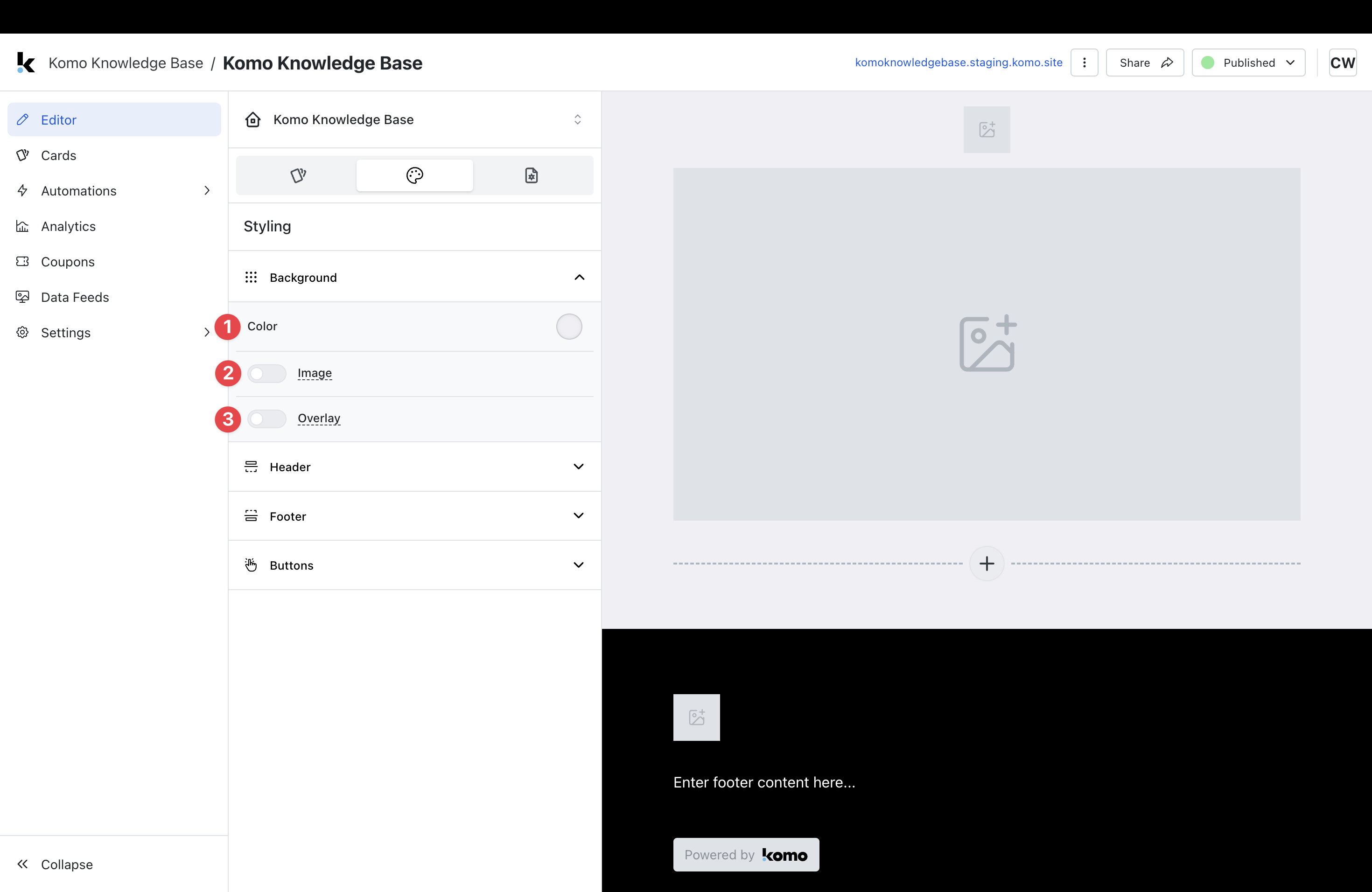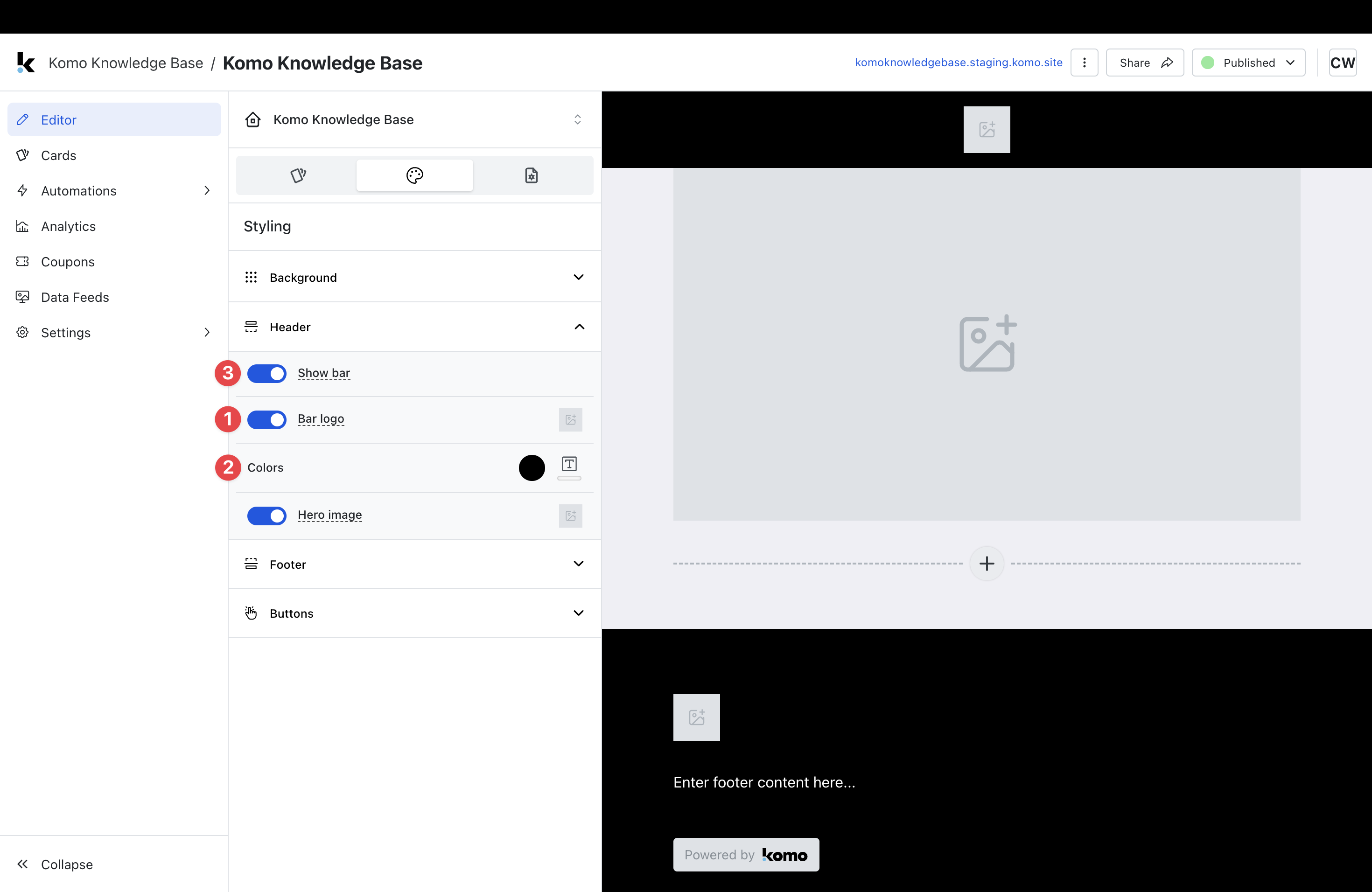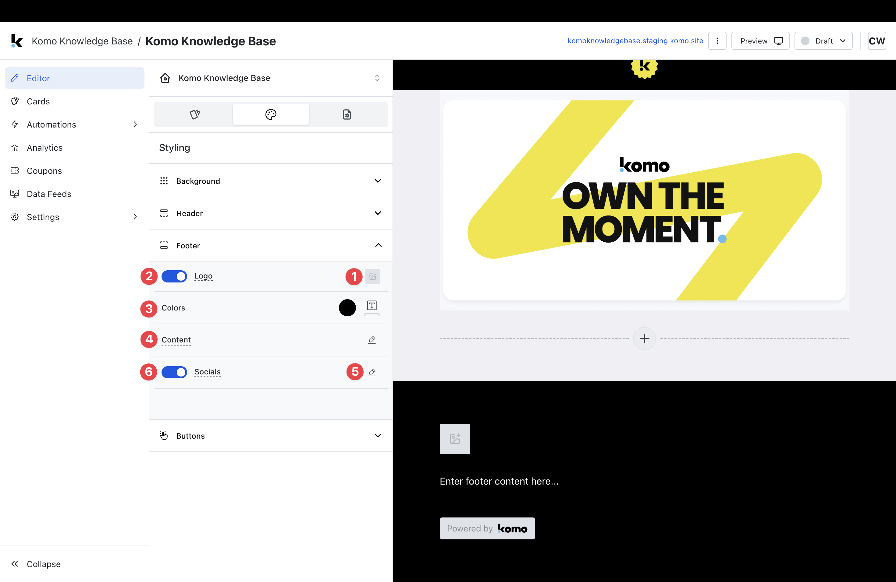 - Step 5: Set up your Footer settings