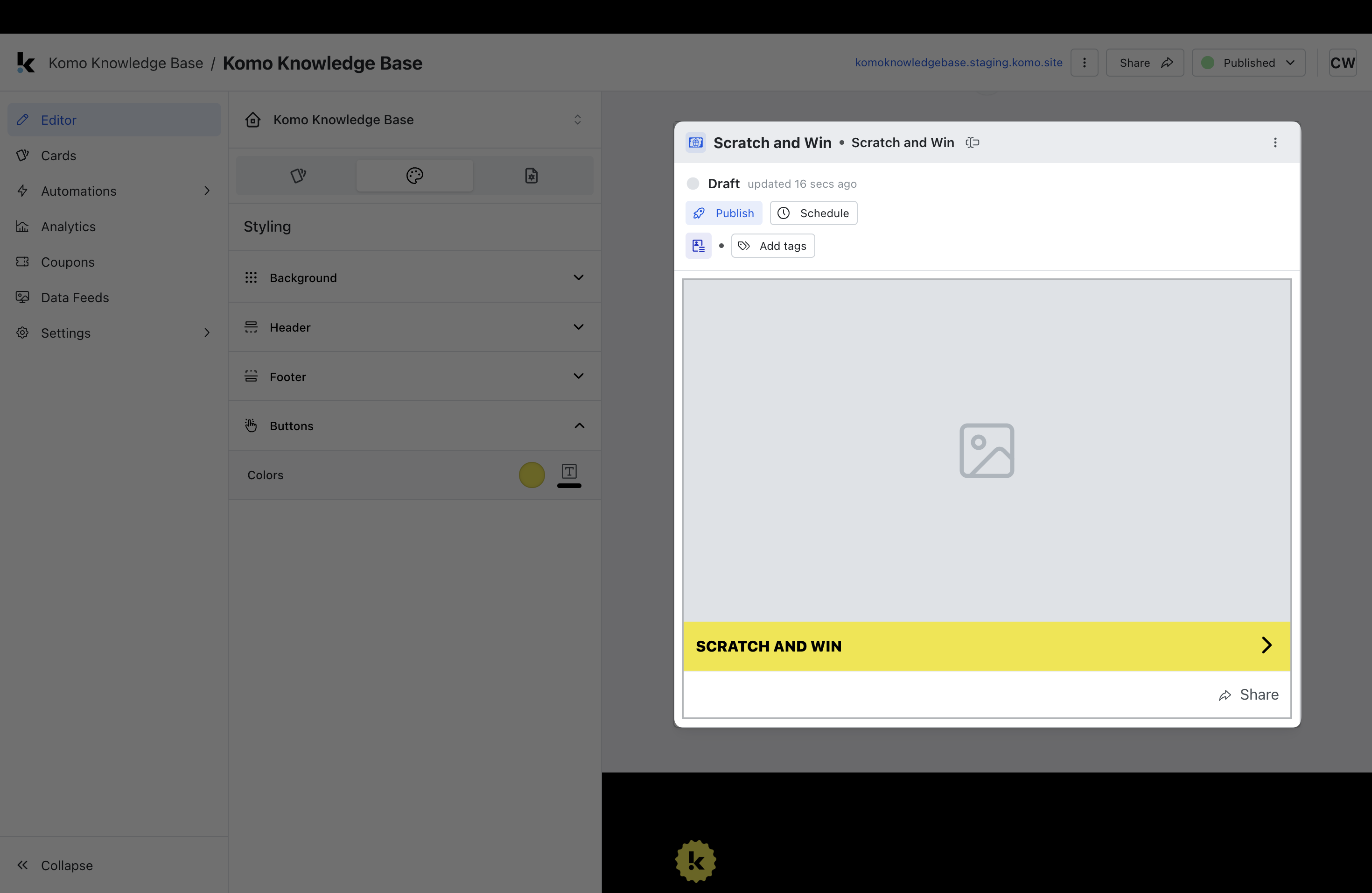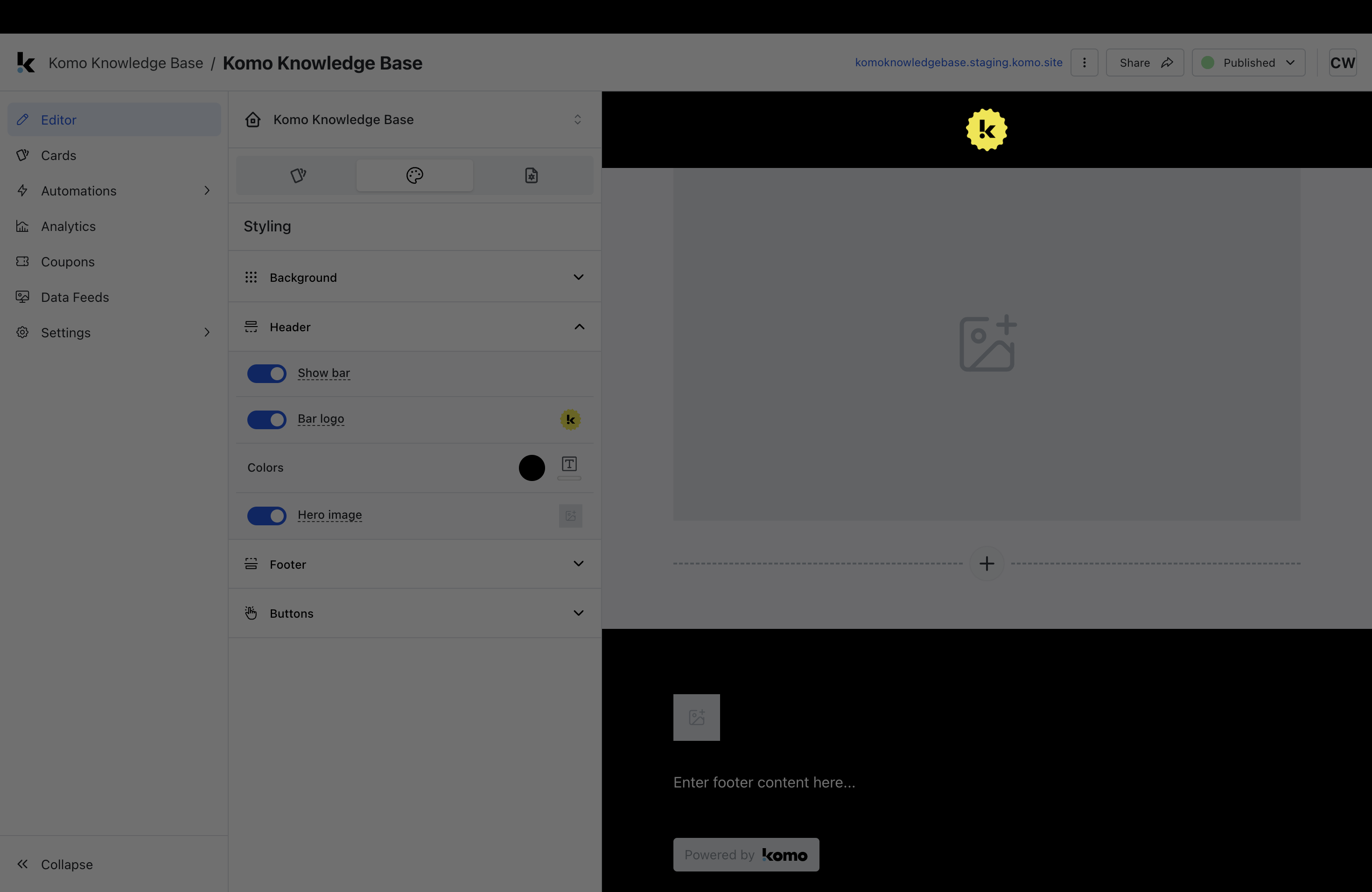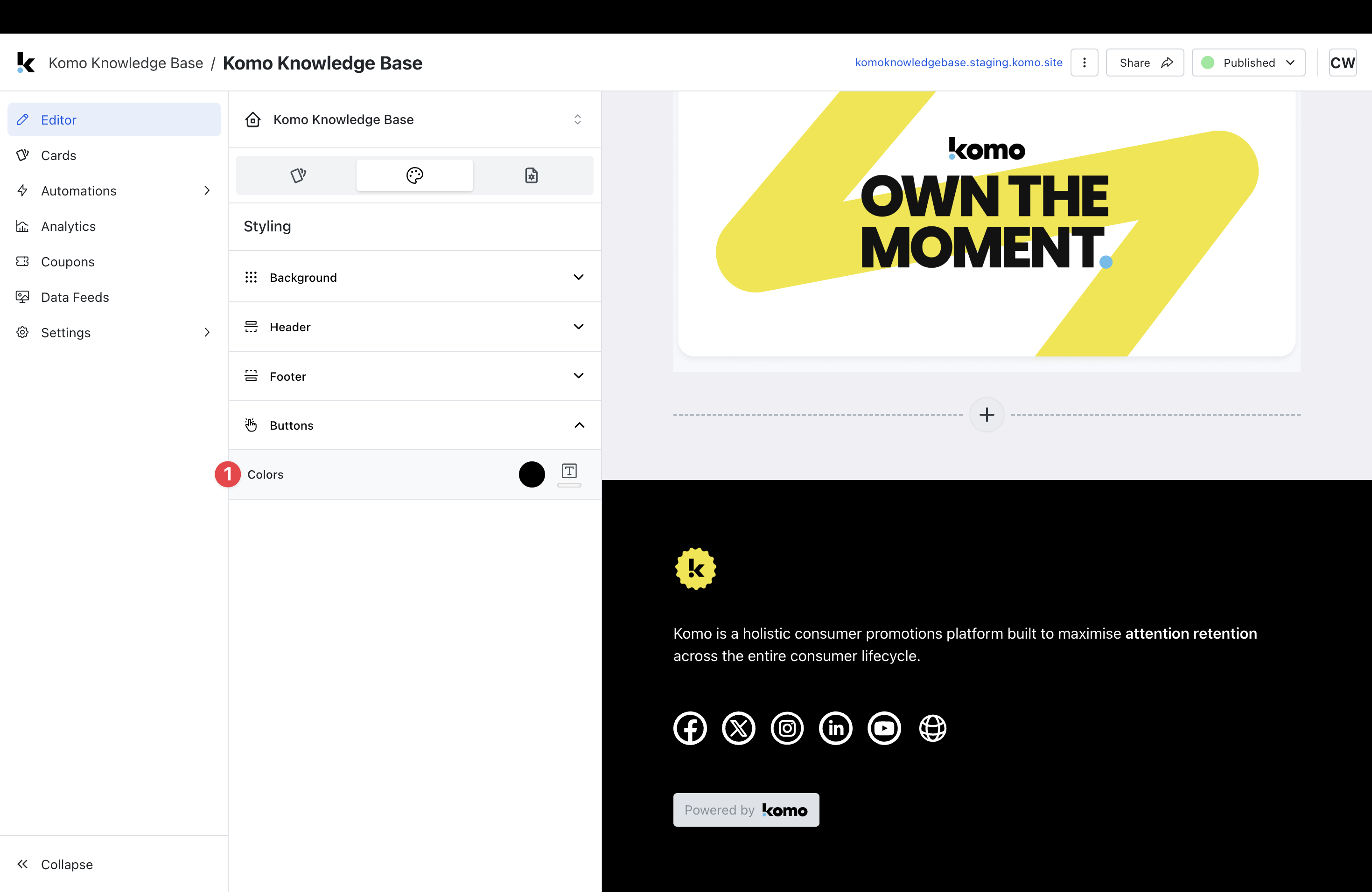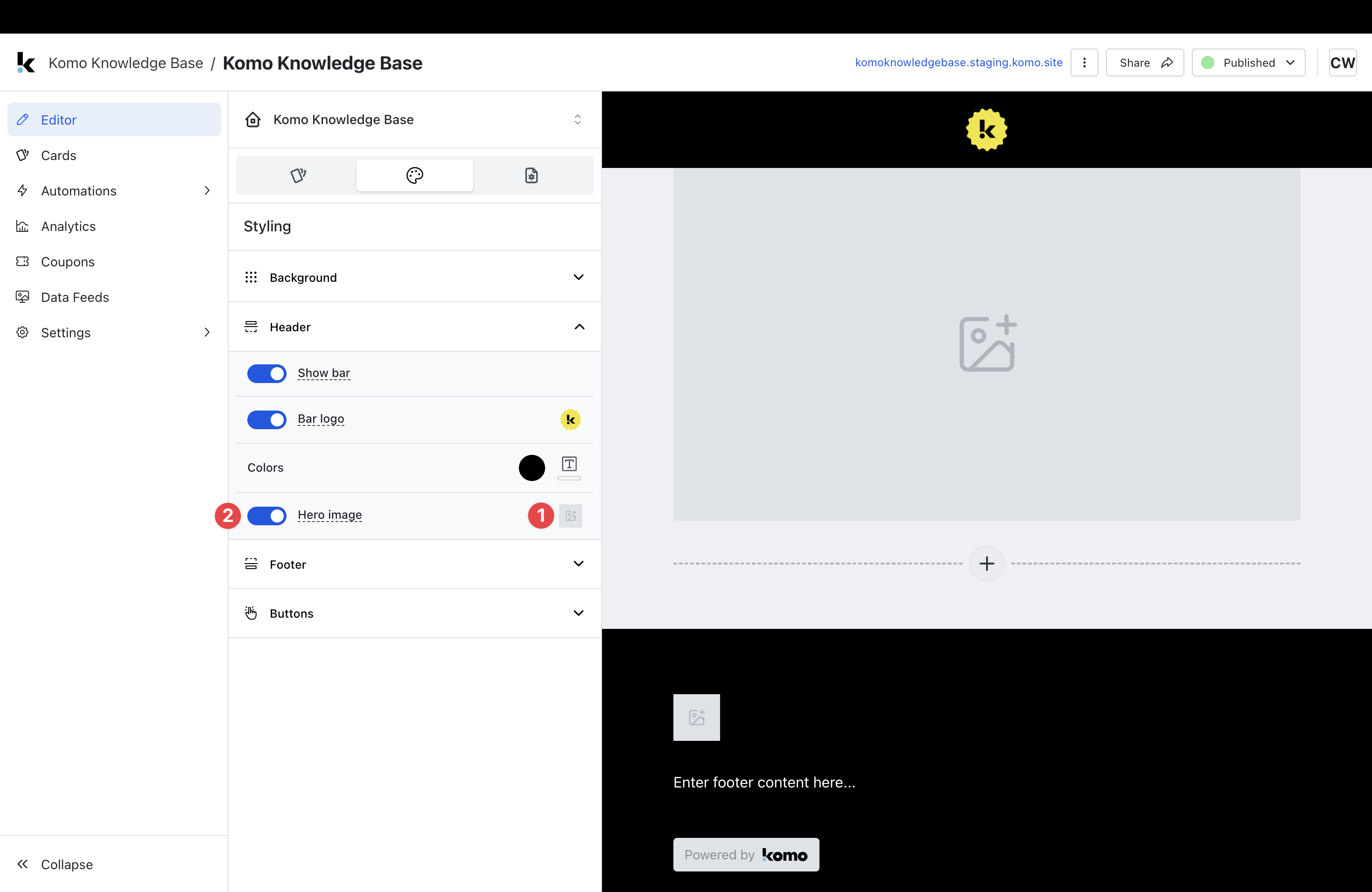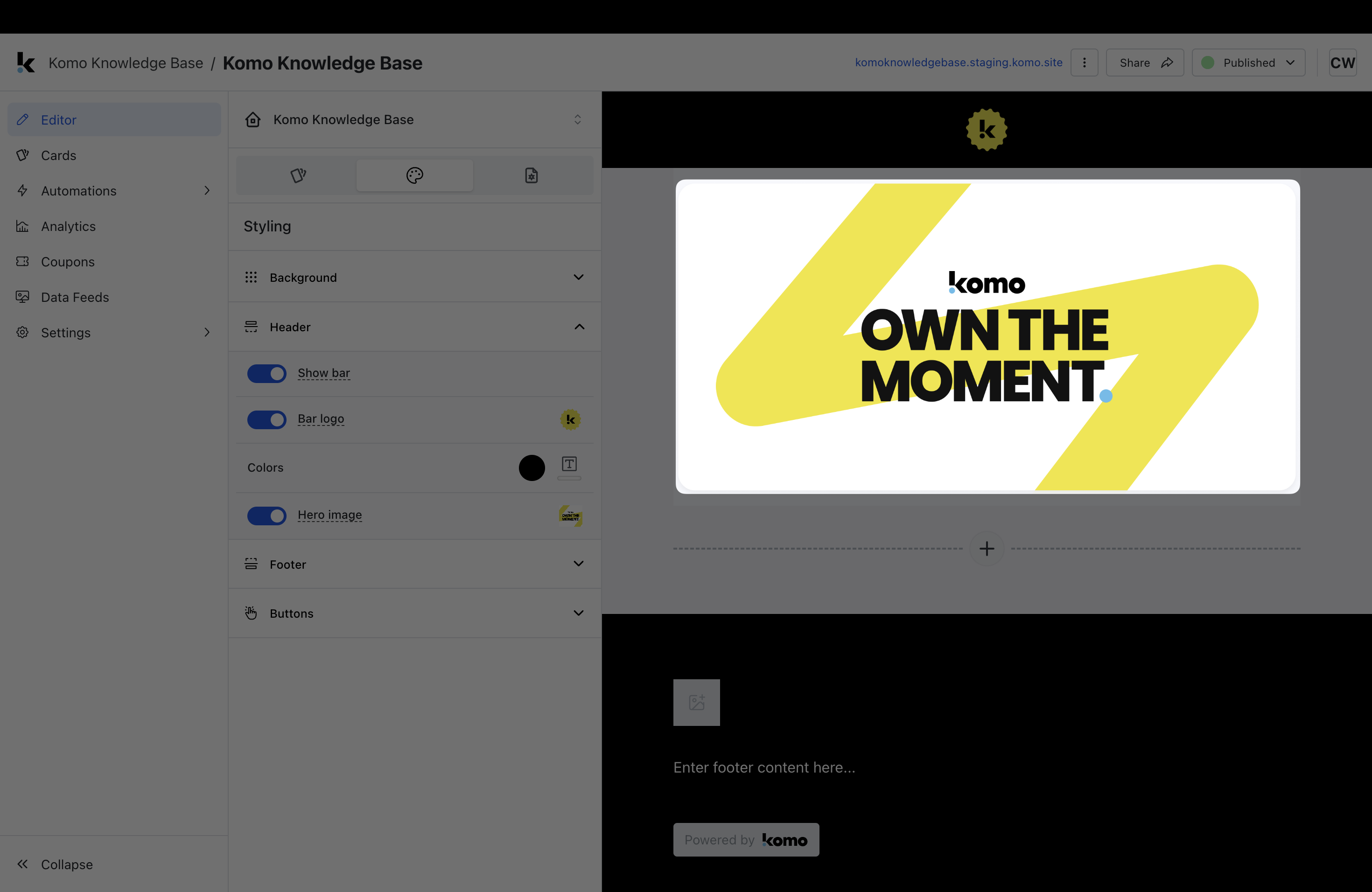 Tip: We recommend setting this up prior to creating your cards as once this is changed, all content added to the Hub will have these settings. You will also be able to change the call-to-action bar colours at the card level.