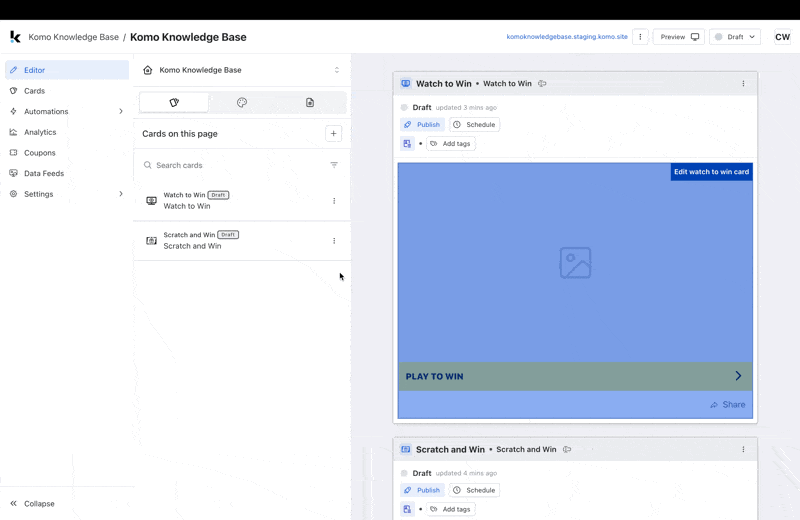 - You will now notice that the Card order on the page has been updated.