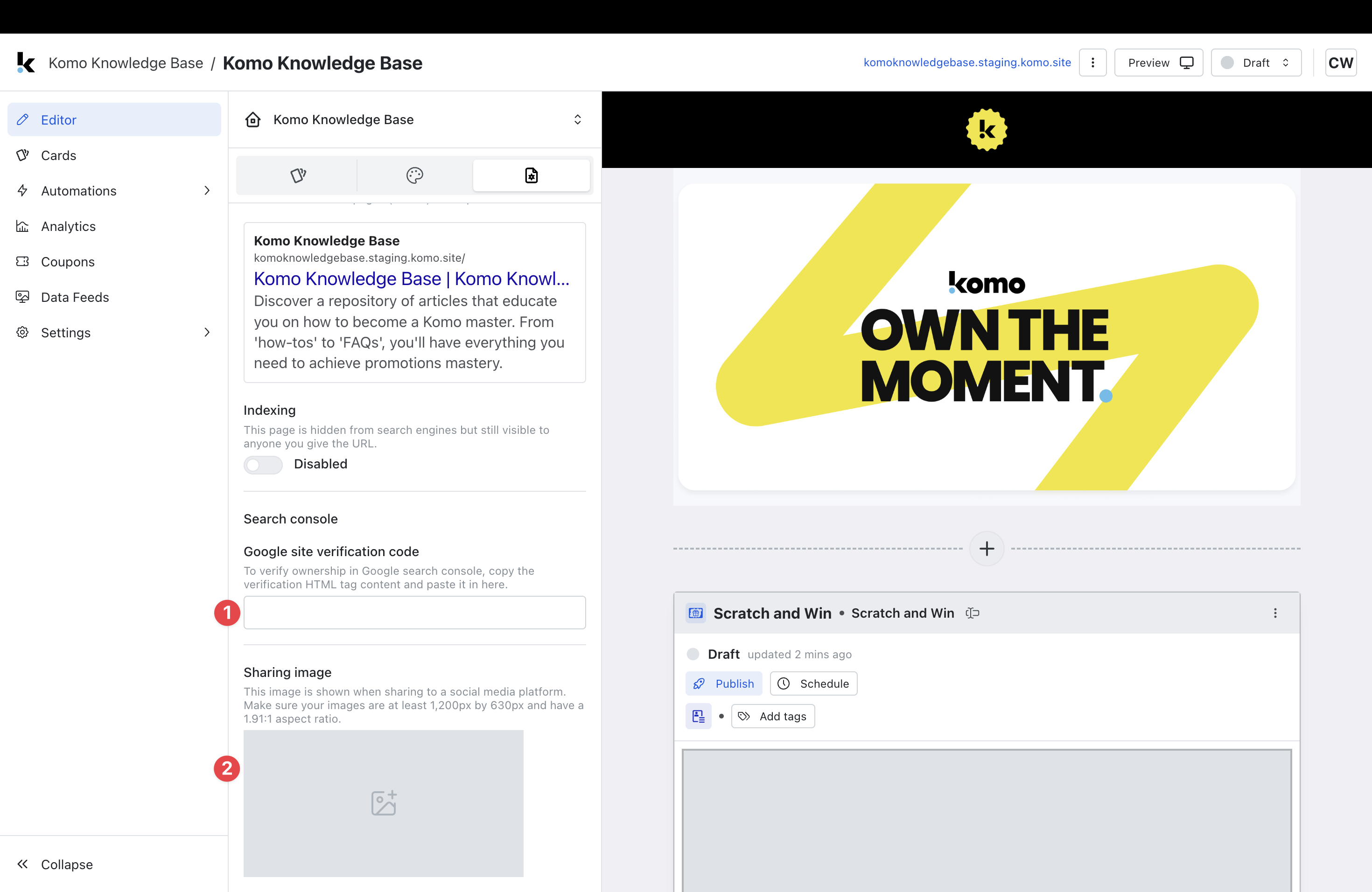 - (2) You can upload a Sharing Image which is the image that will be displayed when sharing the page on social media platforms.