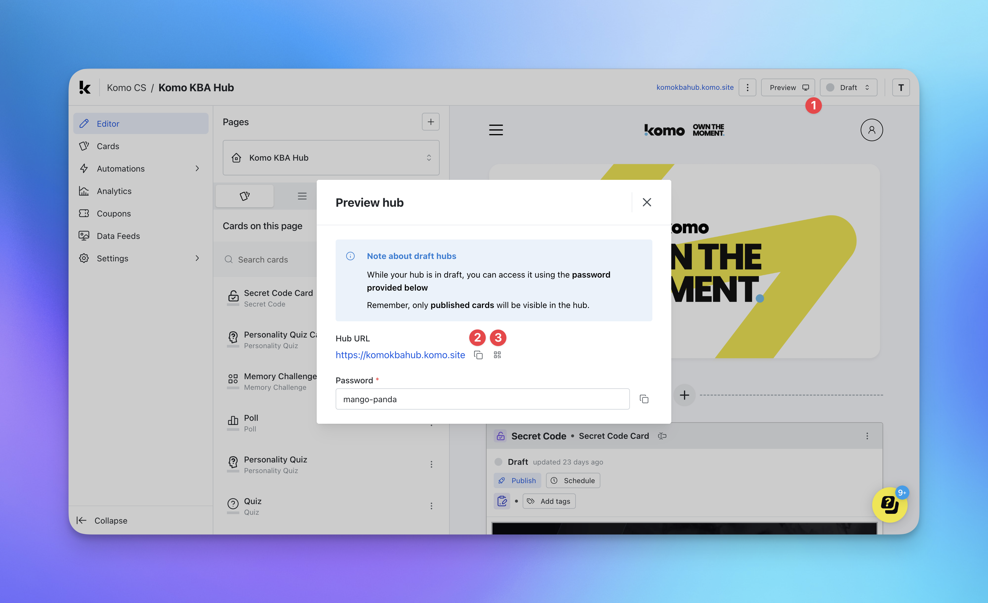 Step 3: Sharing an unpublished Hub