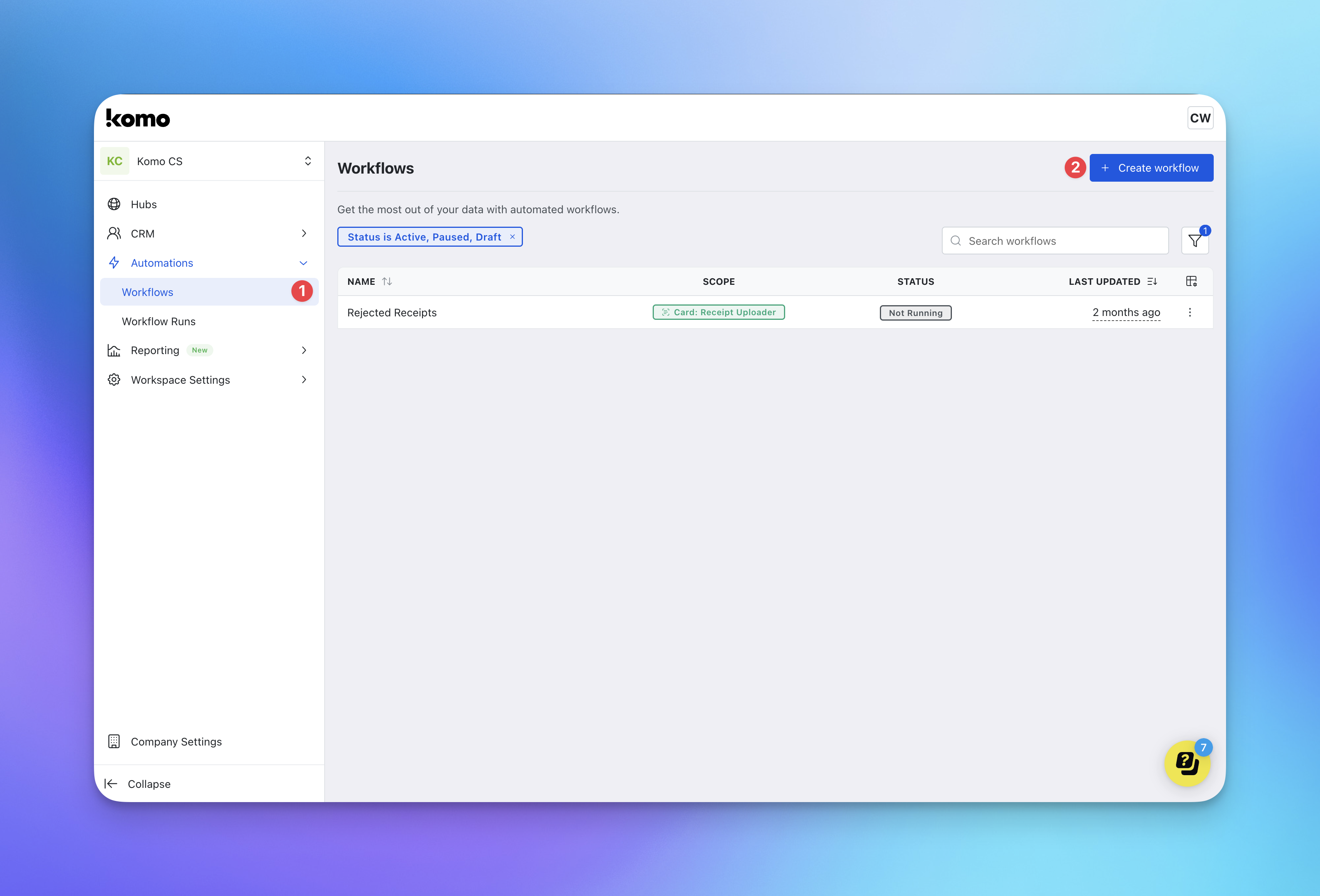 (2) Click + Create workflow.