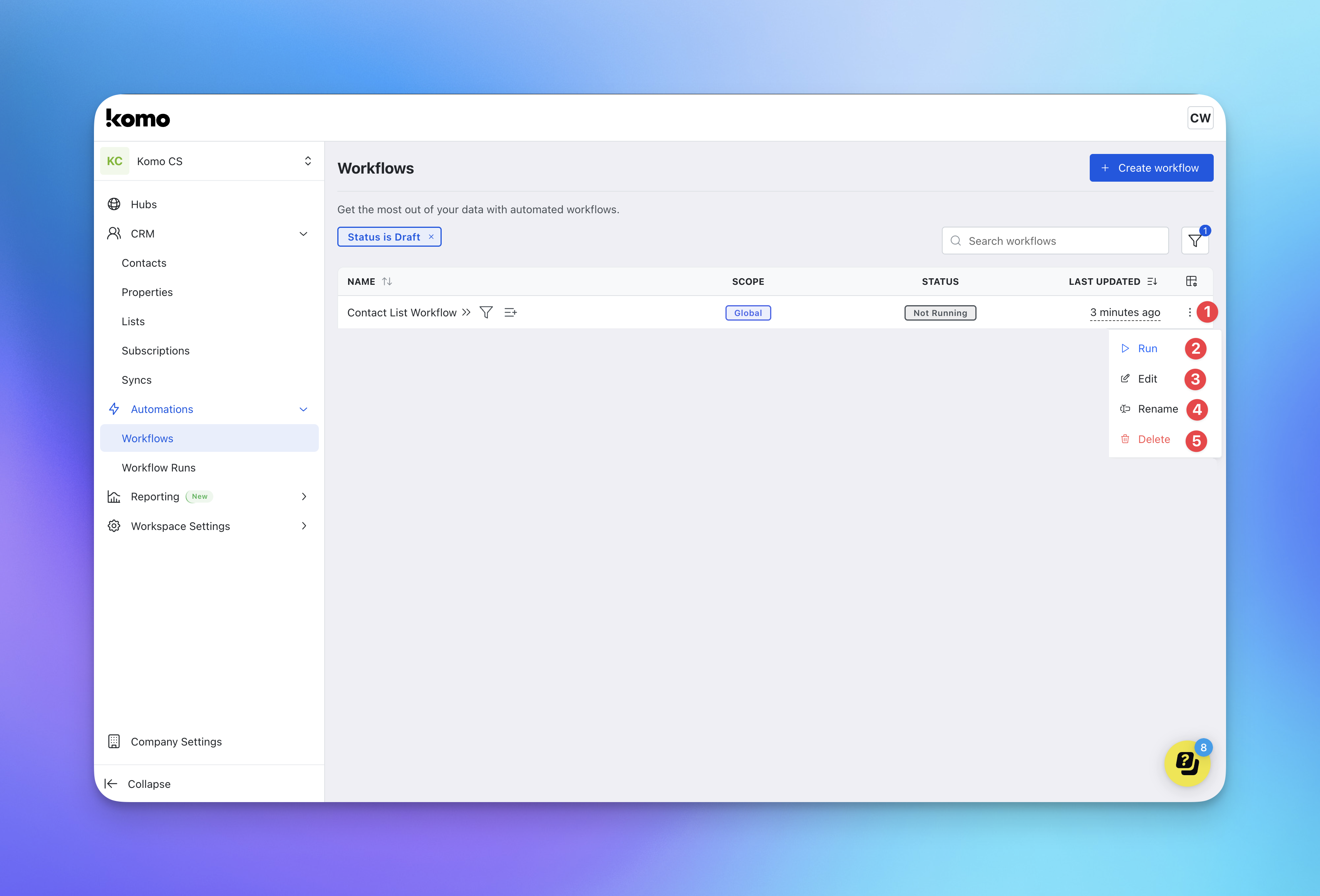 - (1) Within your workspace, navigate to Workflows which is located under the Automations dropdown.
