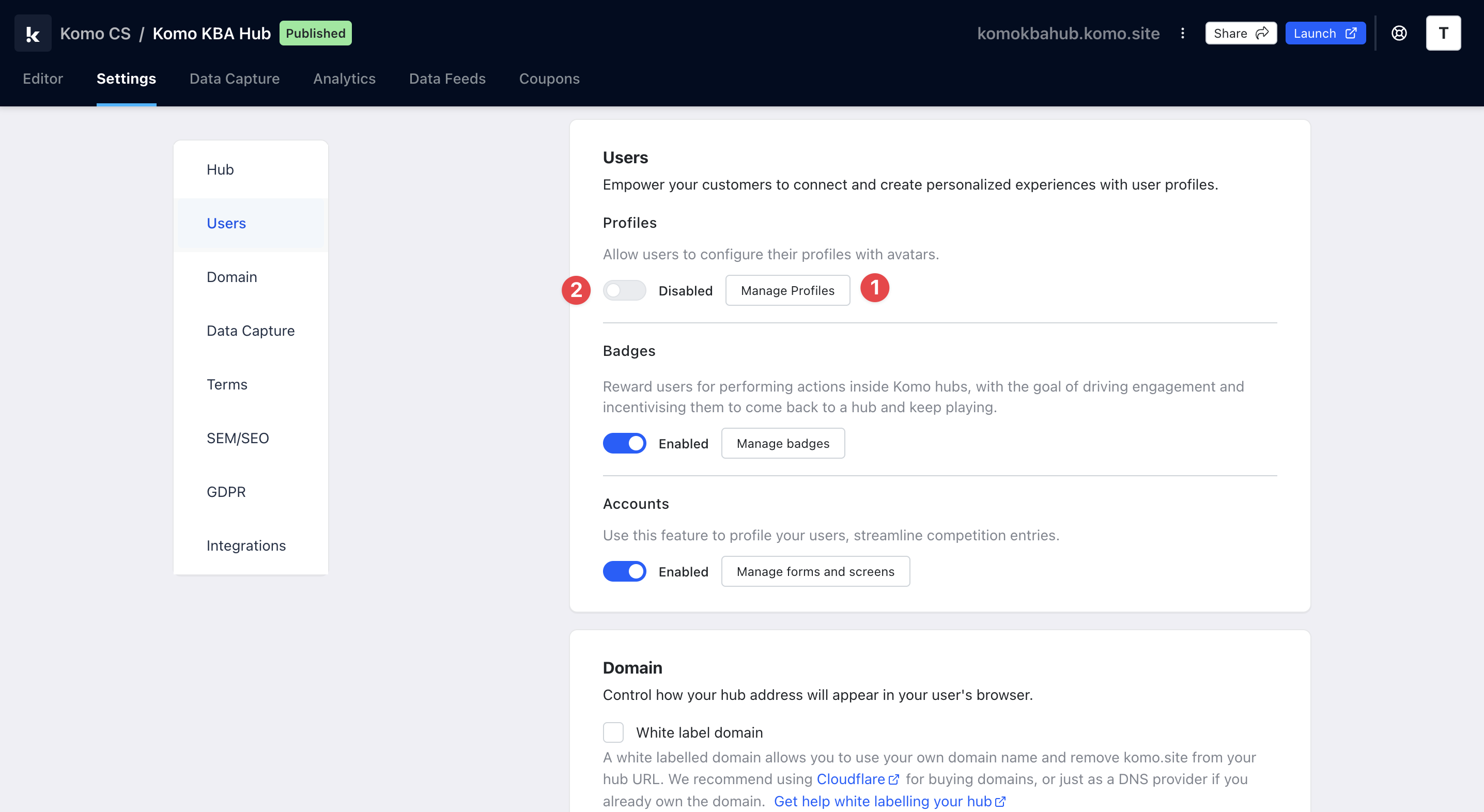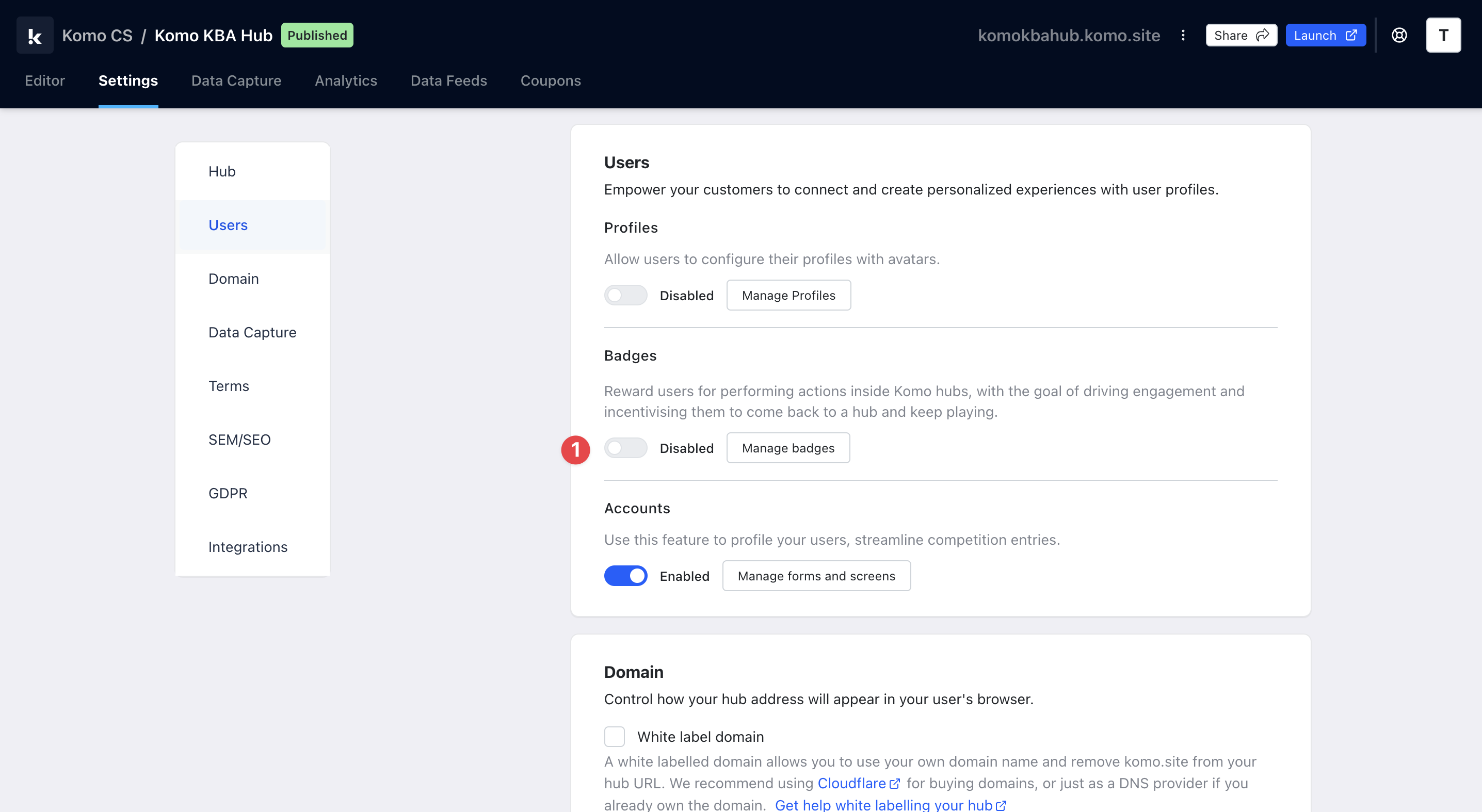 Step 2: Turn on Badges in Hub settings