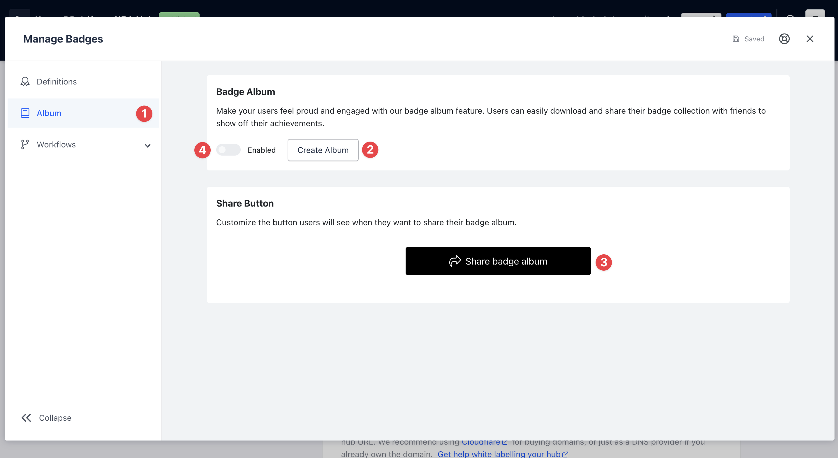 - (3) Here you can also edit the share button that allows users to share their Badge Album