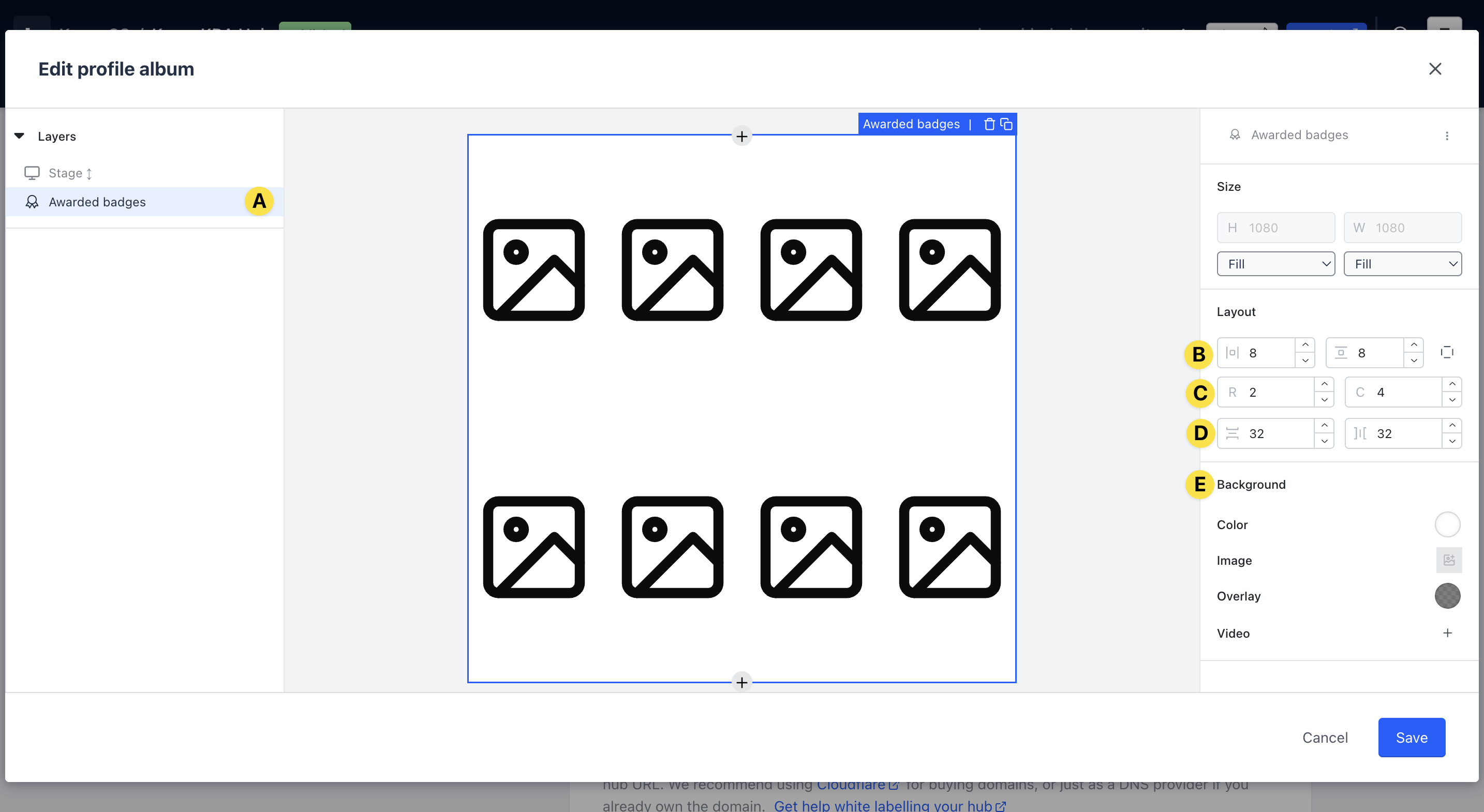 - (D) Edit the amount of space between the rows and columns of each badge