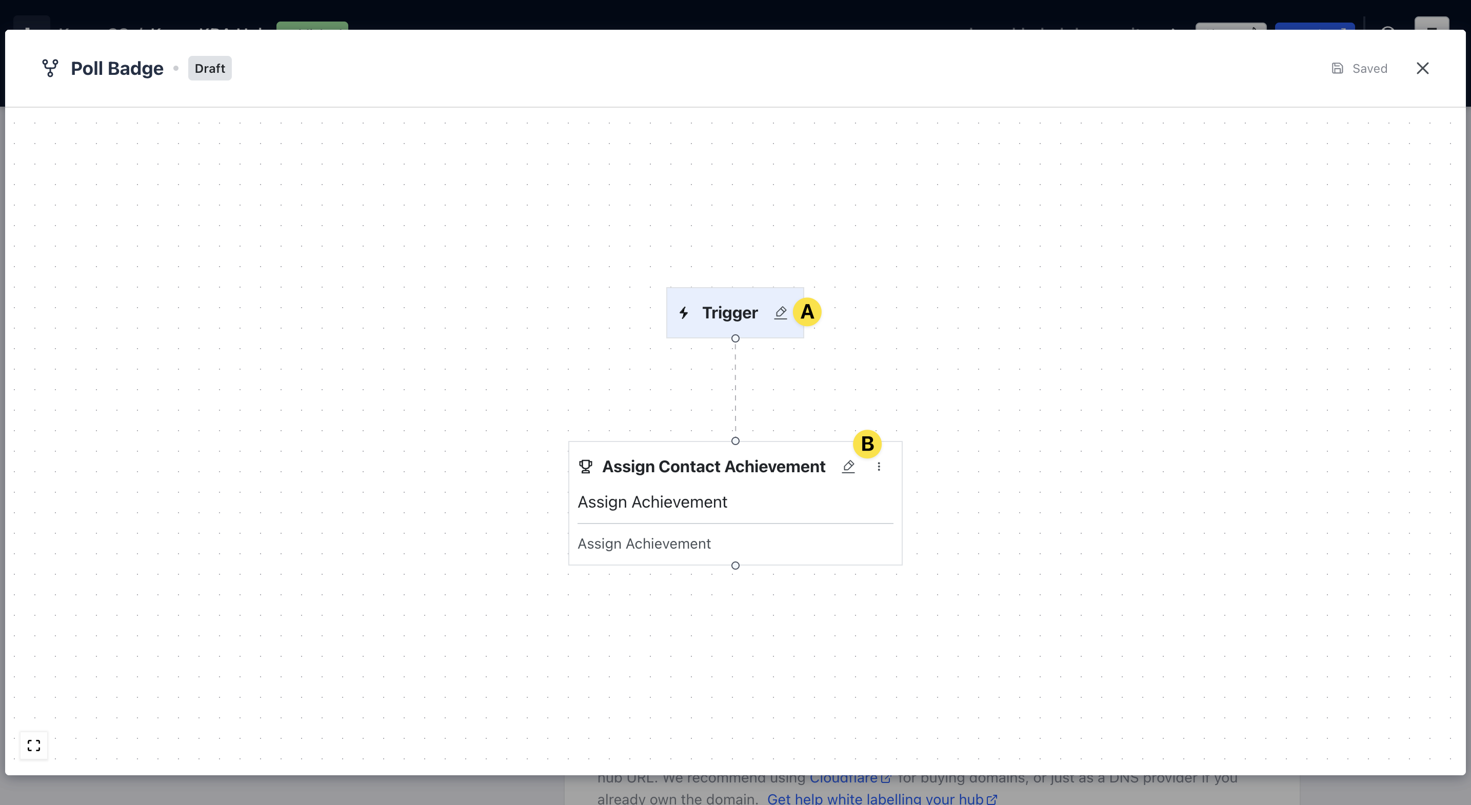 (B) Click on the edit icon to connect the badge to the workflow