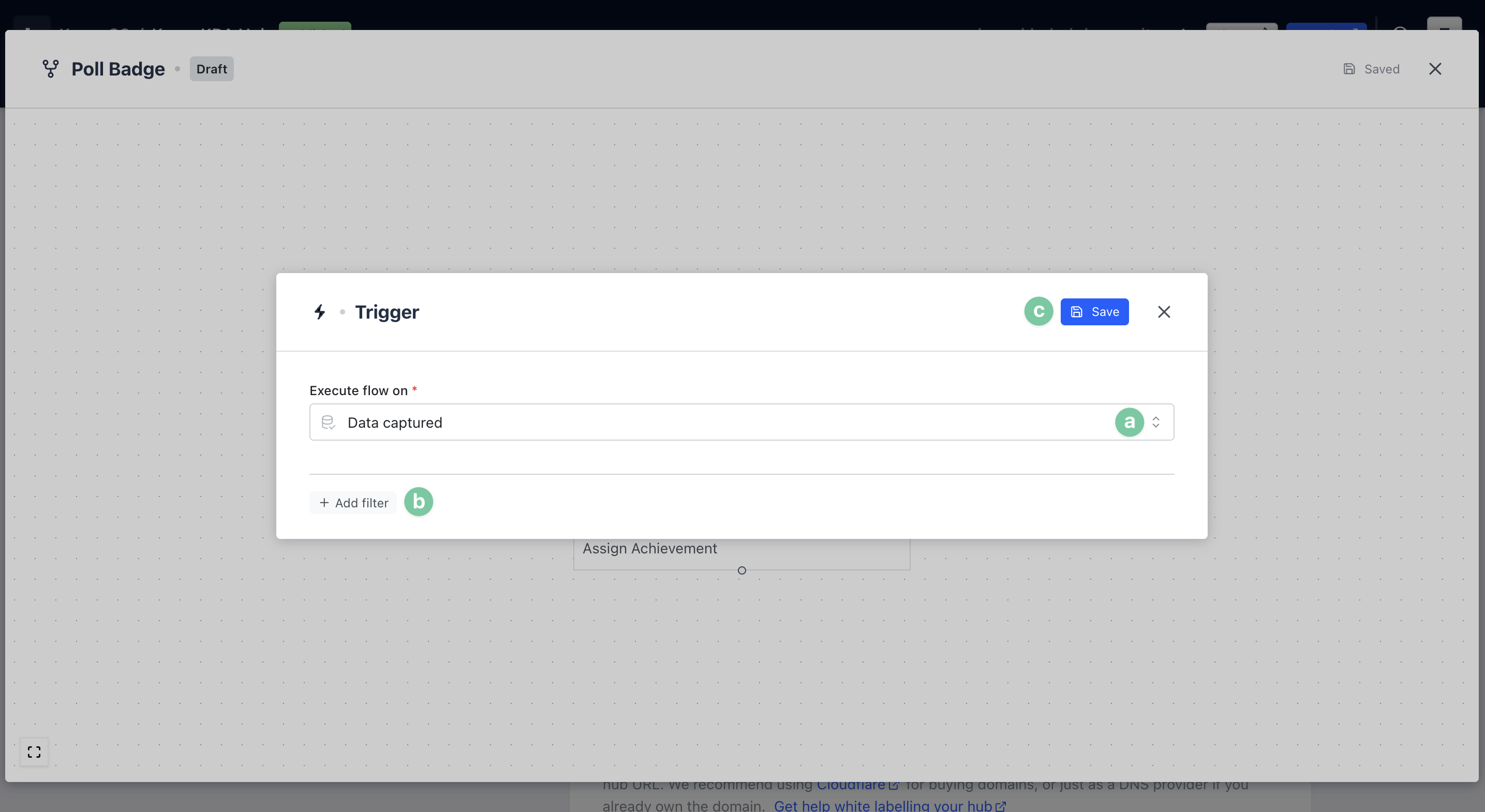 - Gameplay data captured: When a user fills out a data capture form on your Hub. Add filters to only award Badges on certain Cards