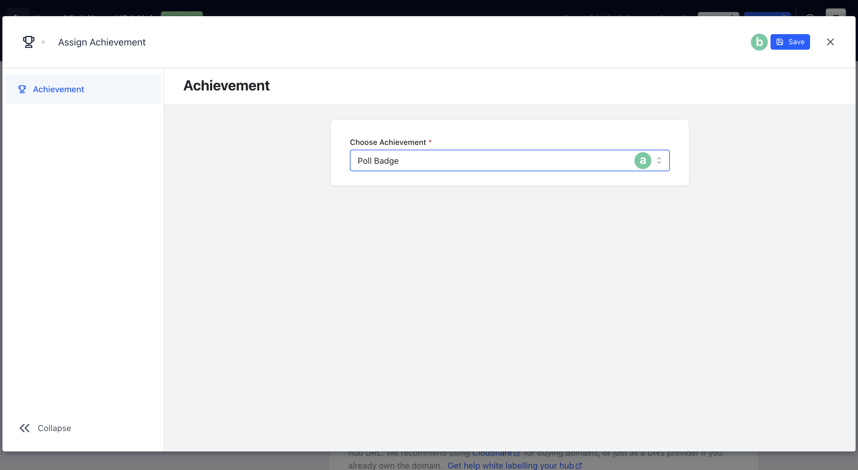 The Badge Album allows users to share the Badges they’ve earned on your Hub by downloading them as a customised image.