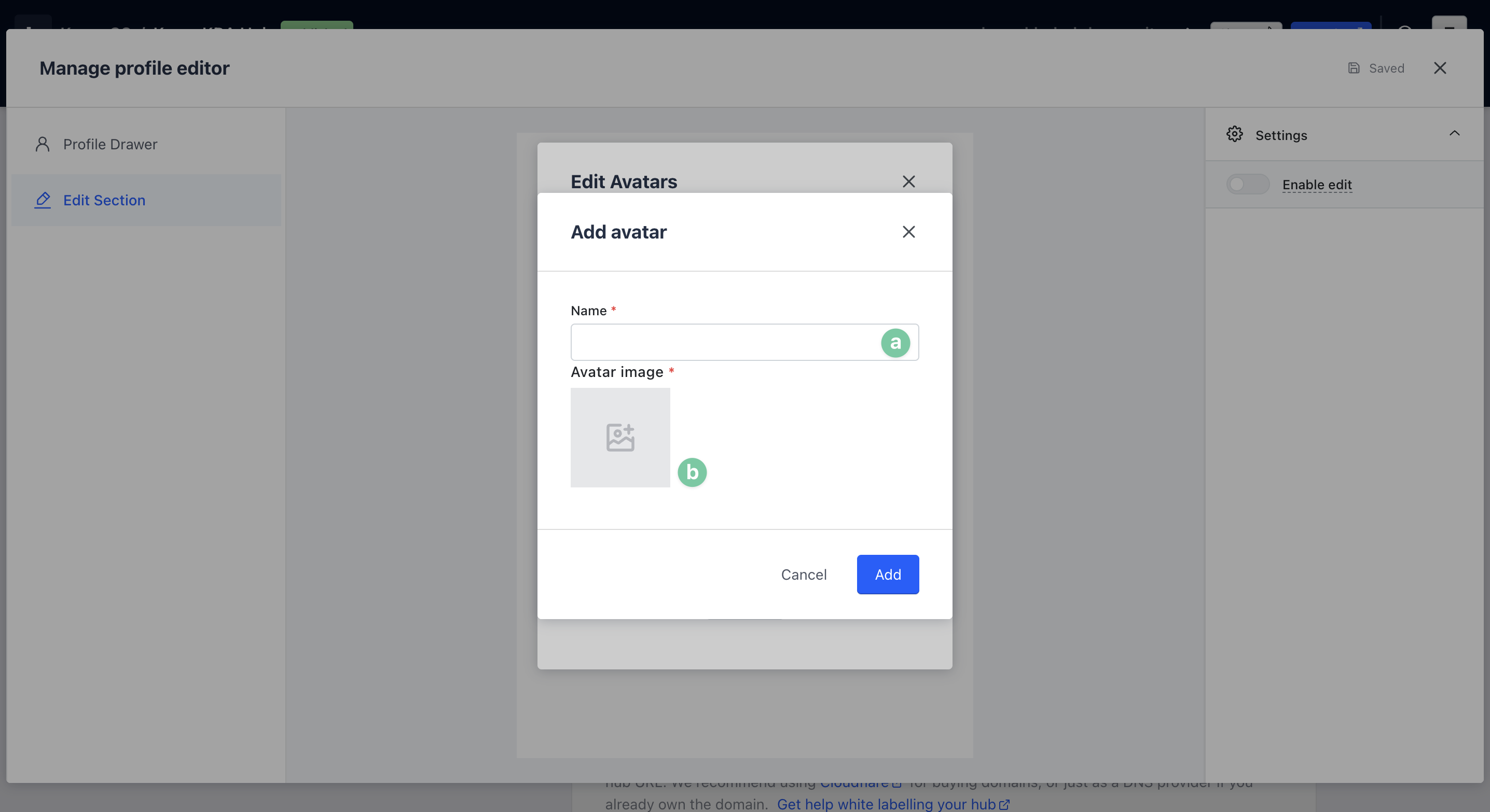 - (b) Upload an image to reflect the avatar then hit Add