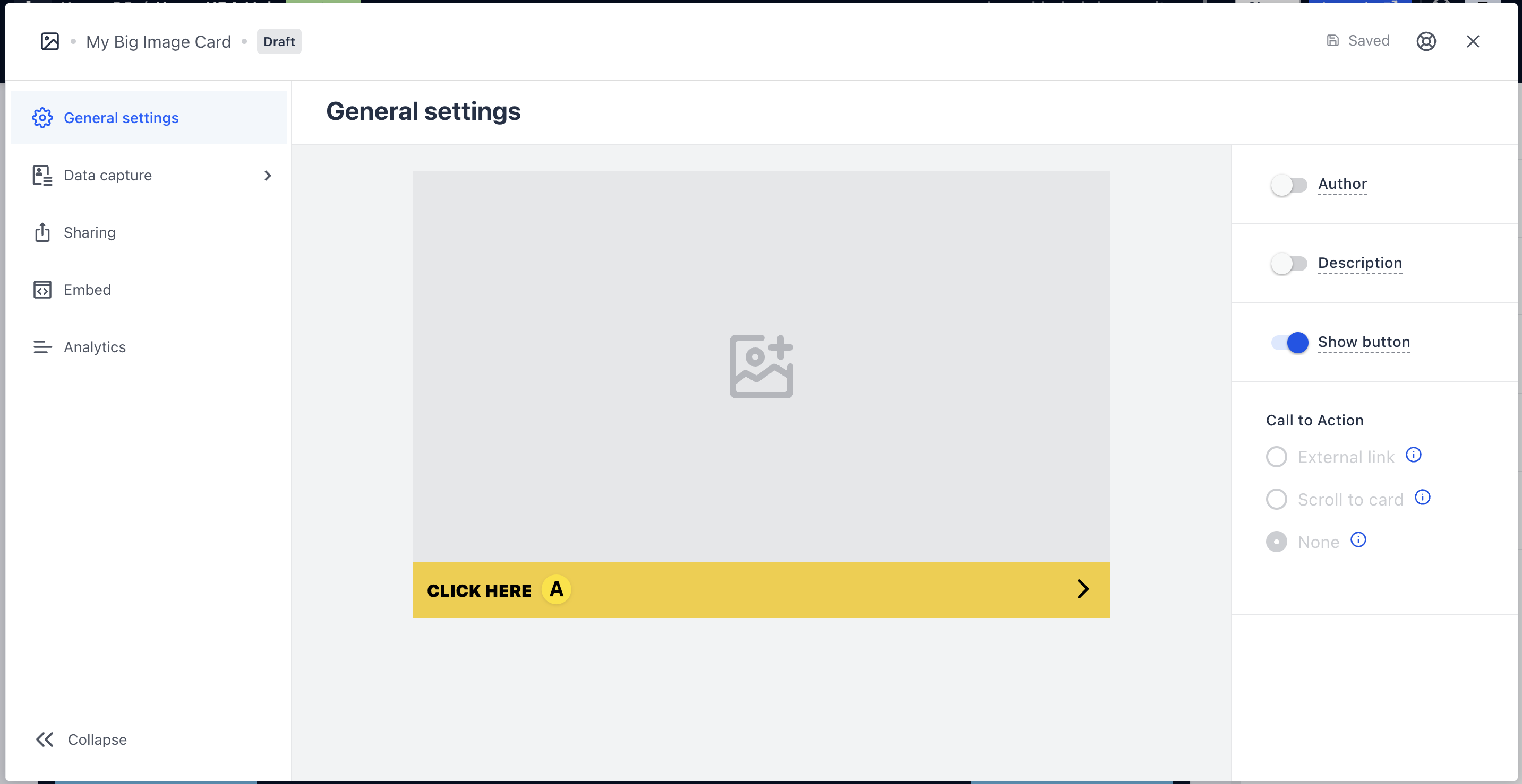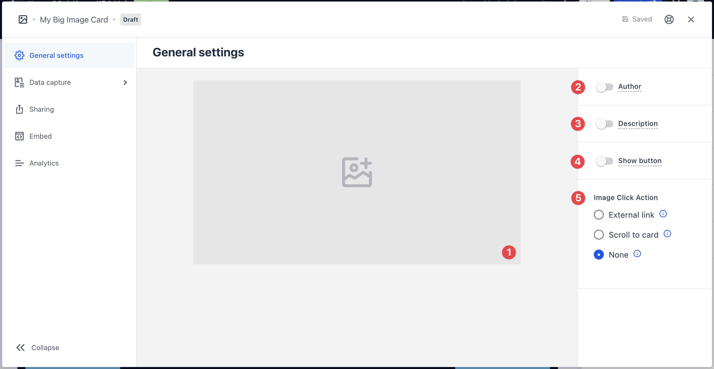 - (5) Here you have the option to direct users to an external site or card when they click on the image.