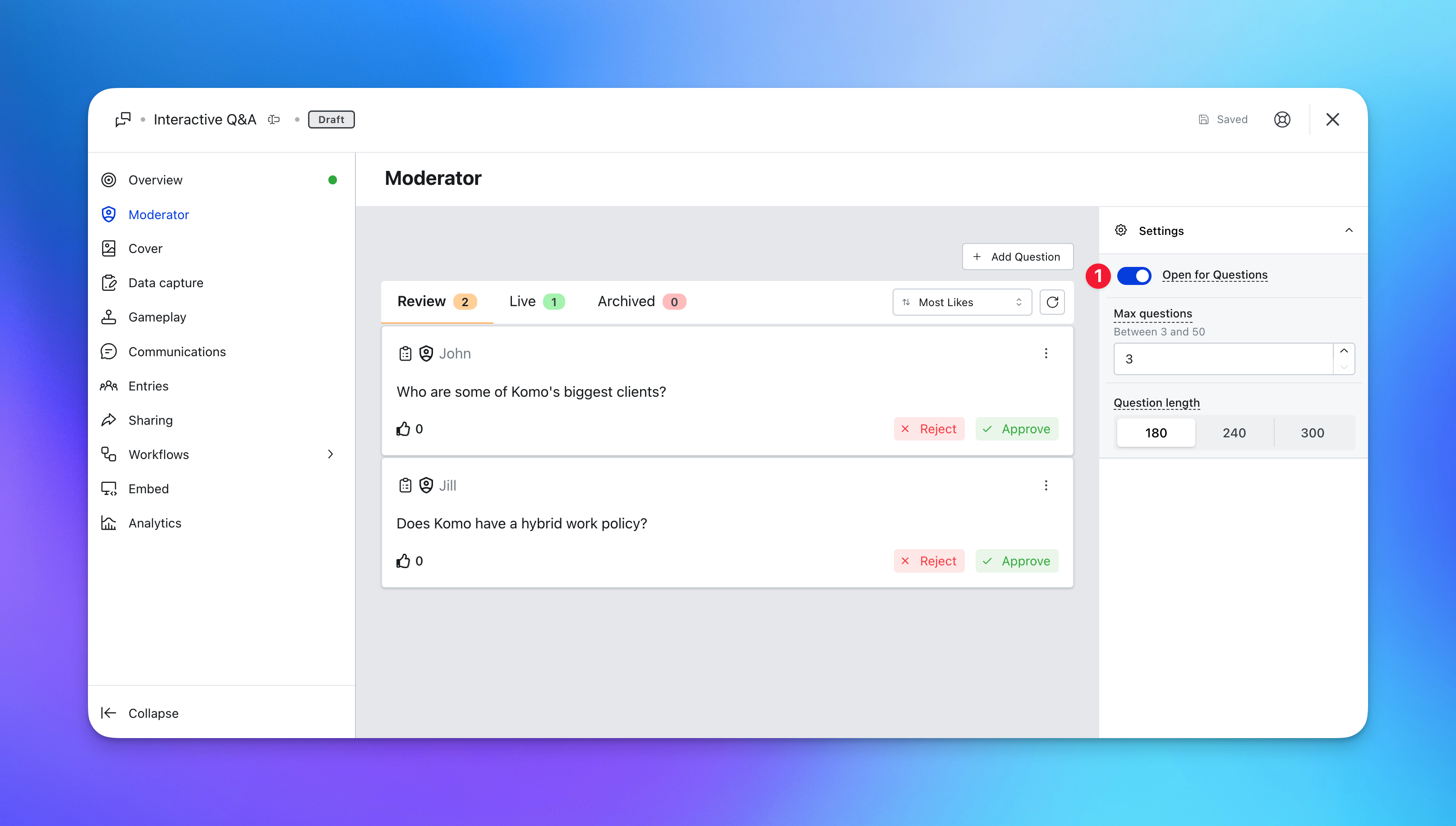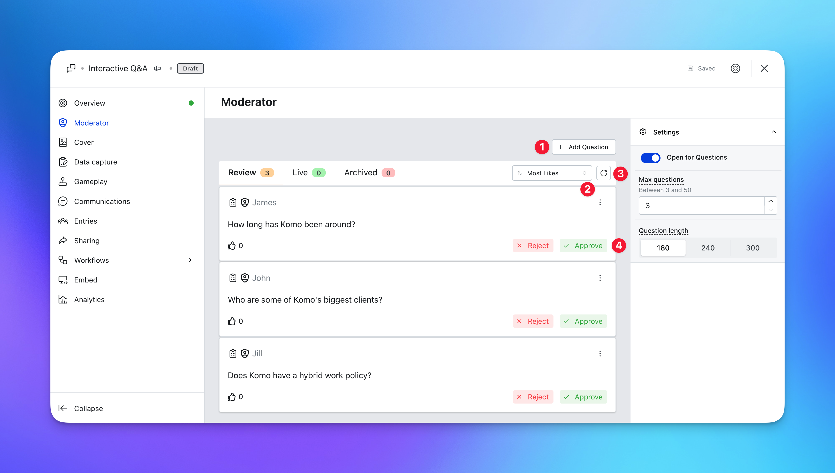 Step 2: Moderate your Q&A