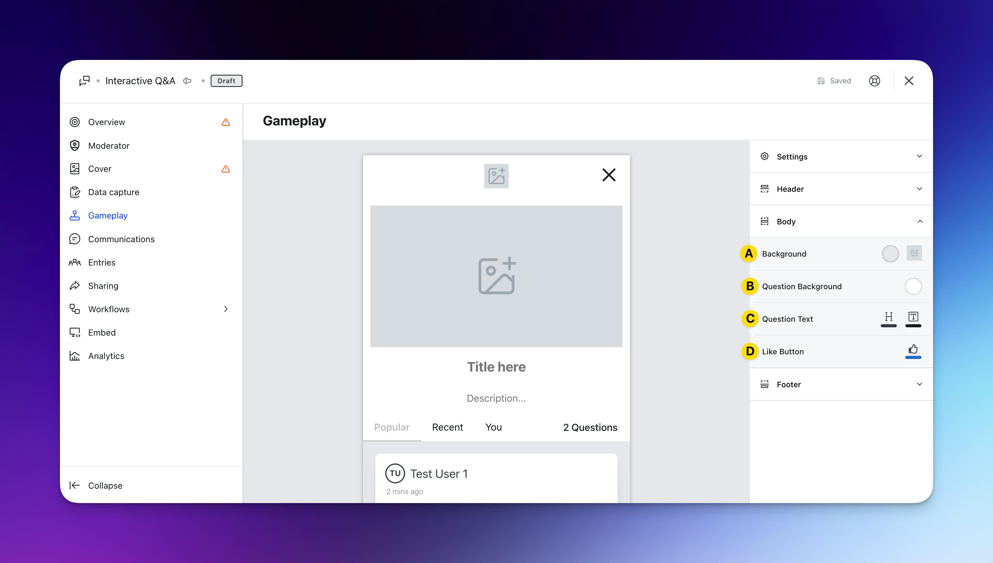 - Edited the Gameplay screen of the Interactive Q&A to reflect your branding.