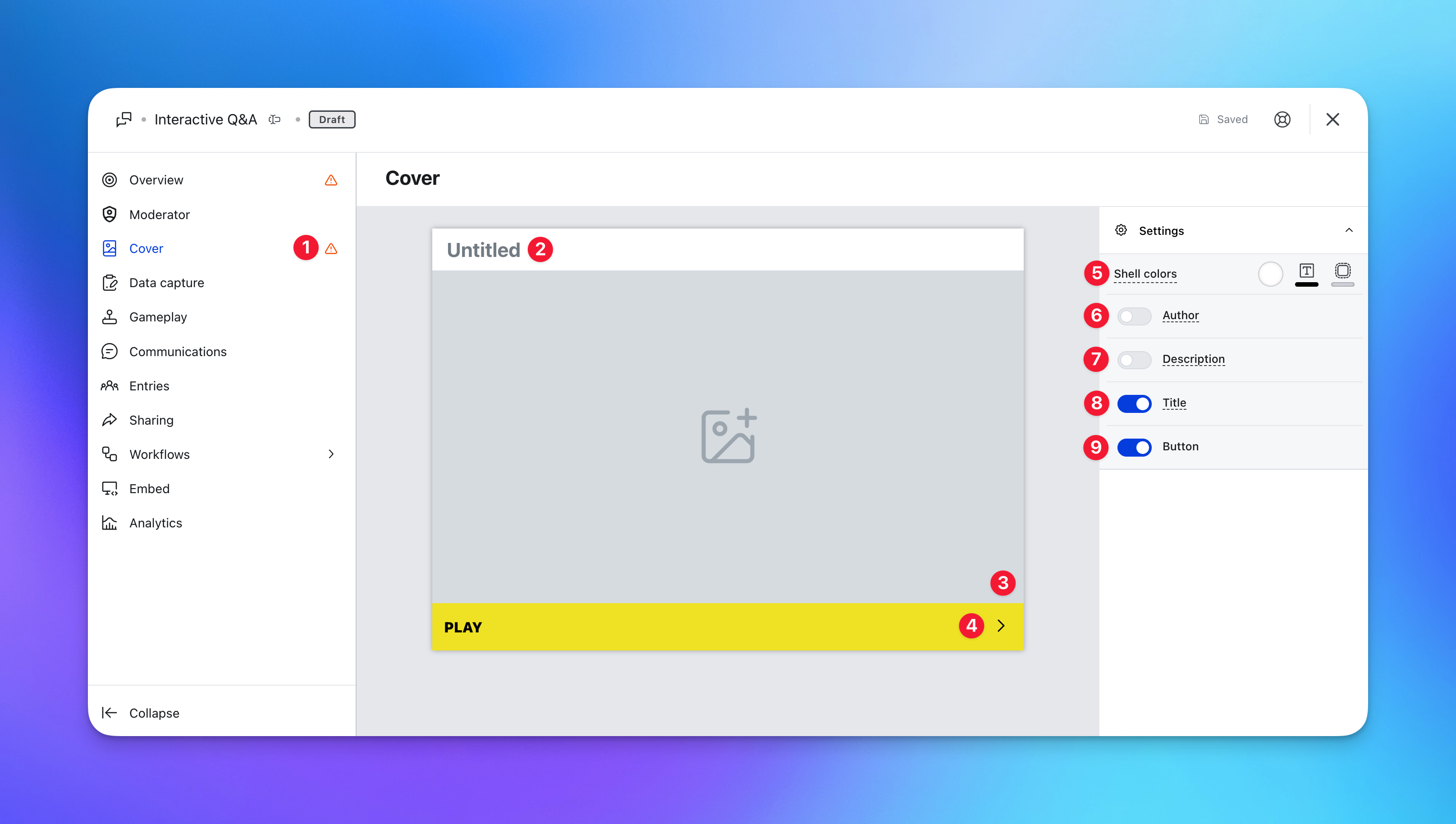 - (2) Add a Cover Image to your gameplay screen by uploading an image.