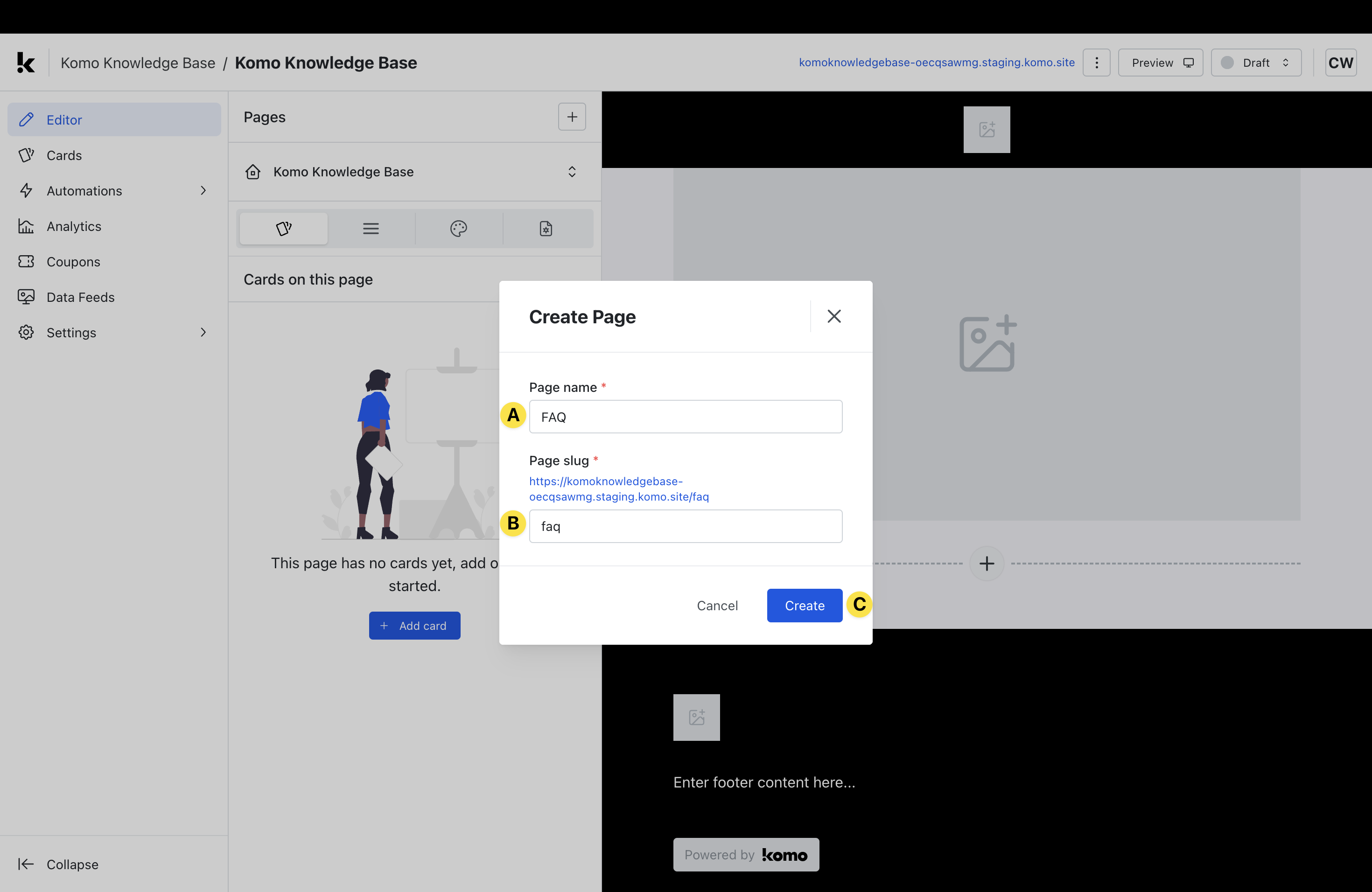 - You will then see that your additional page has been created. Notes: Please remember that your Page name and Page slug will be publicly visible, so be sure to use a suitable name.