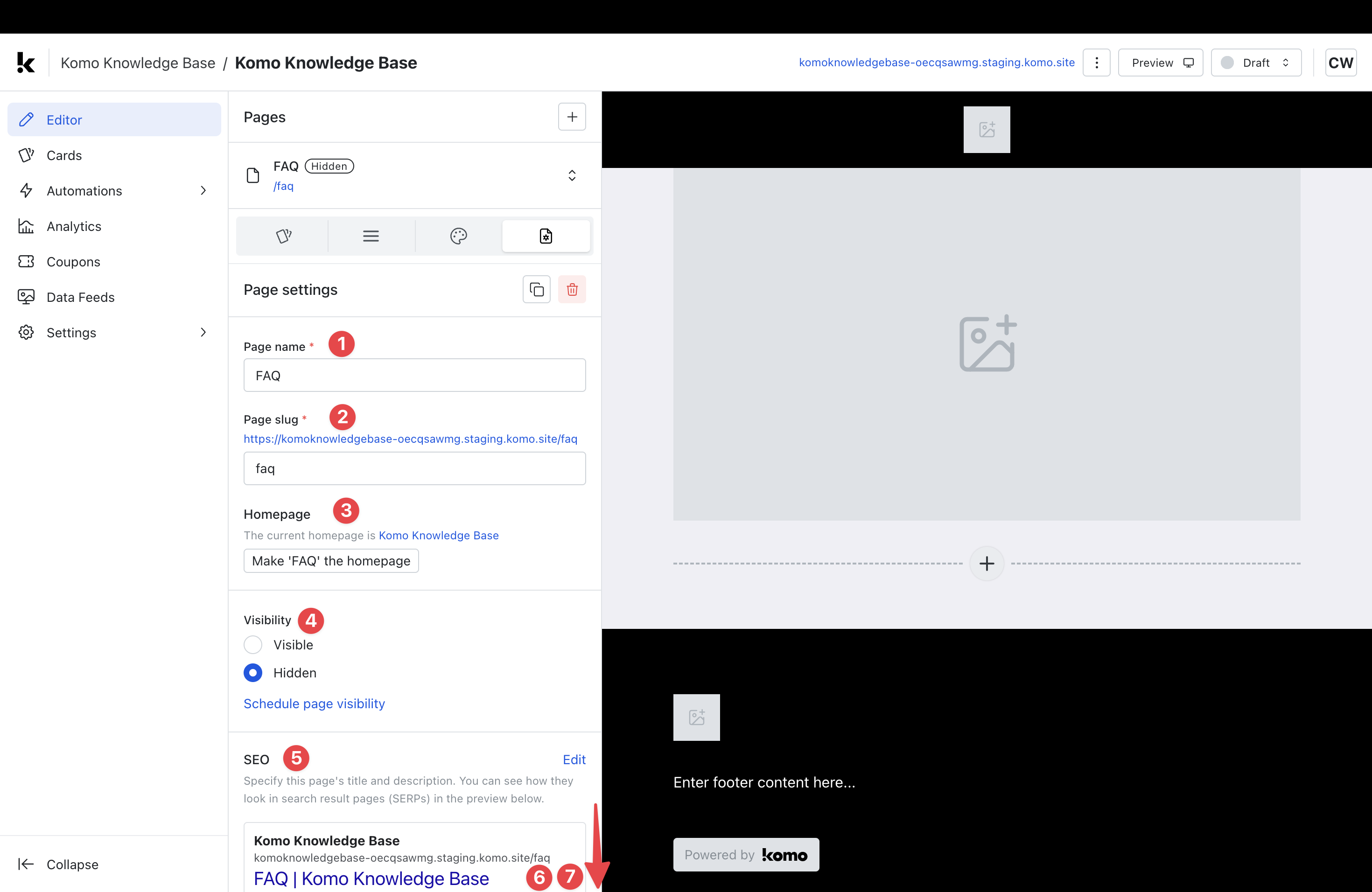 - (5) Here you can preview the SEO settings for that specific page. Click Edit to change these.