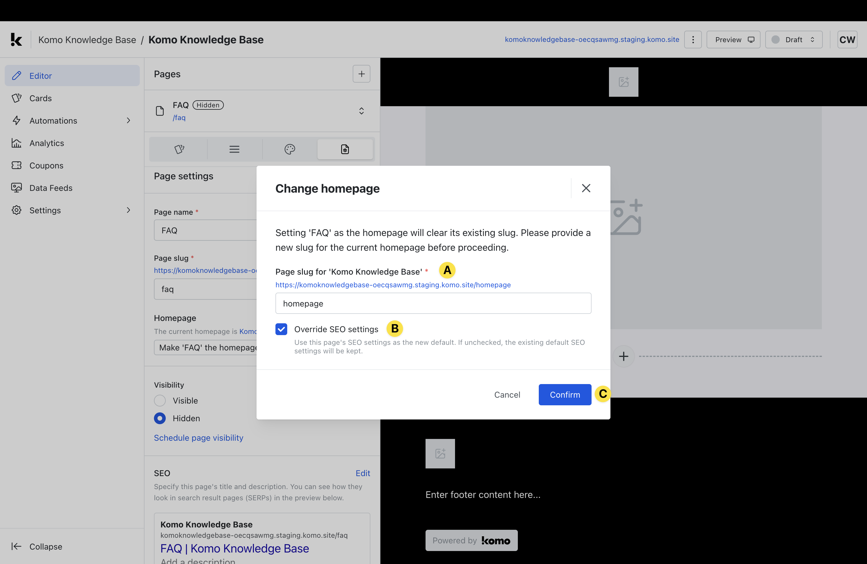 - (C) Click Confirm to implement the homepage change. Notes: You should only undertake these steps if you are looking to change which page displays as the homepage.