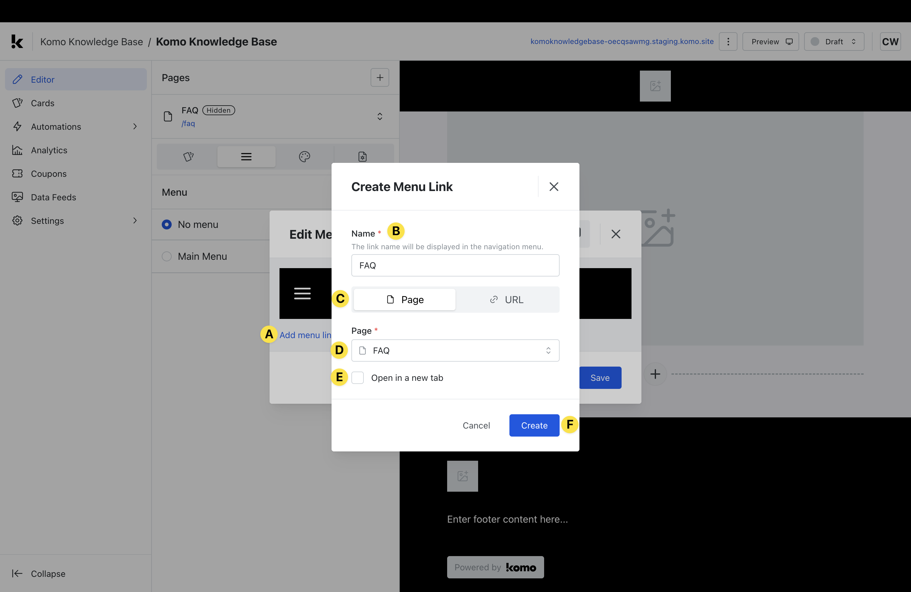 - (B) Give your link an appropriate Name (this will be visible to the public within the menu).