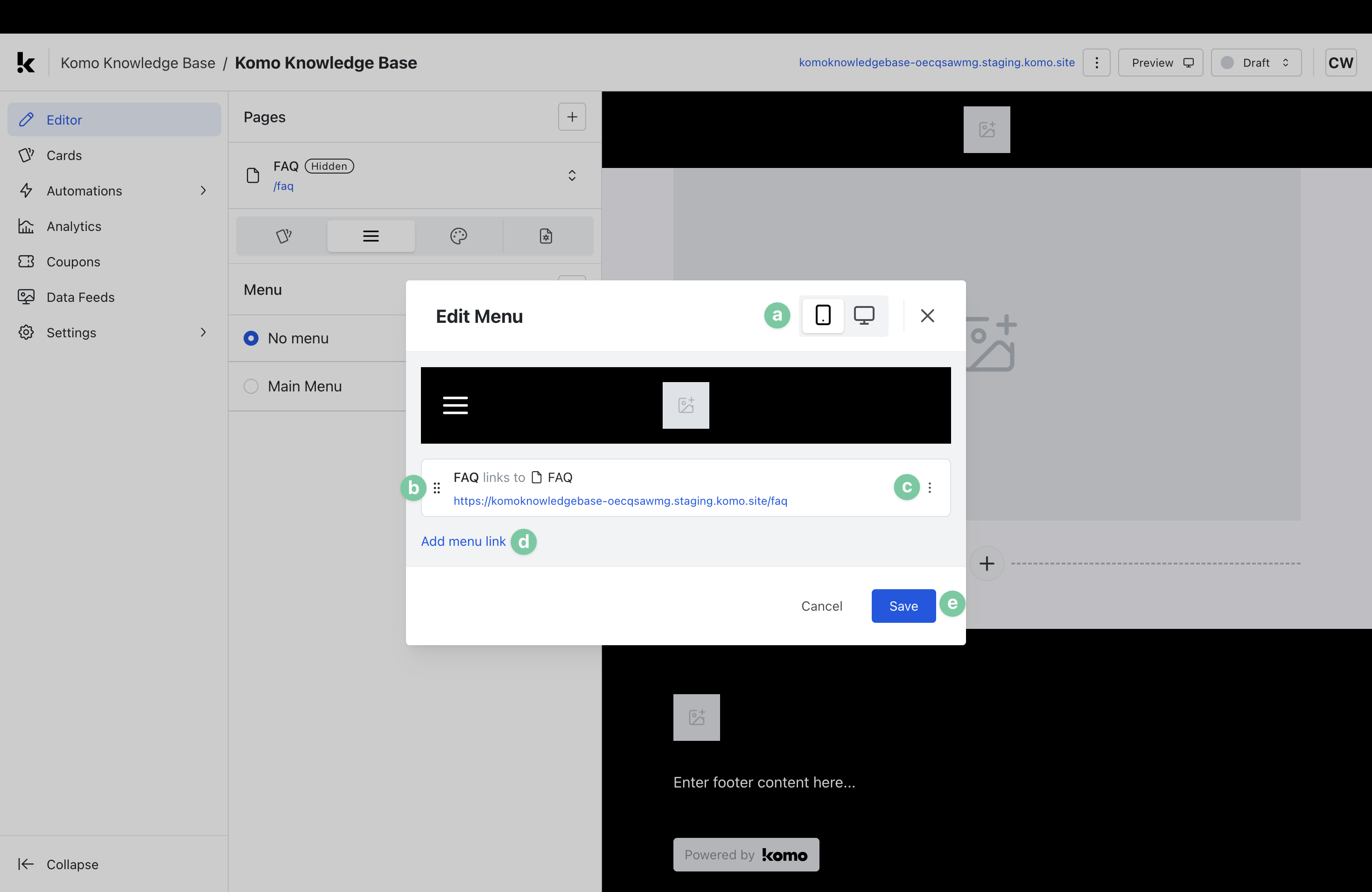 - (a) Here you can preview how your menu will appear on Mobile and Desktop screens.