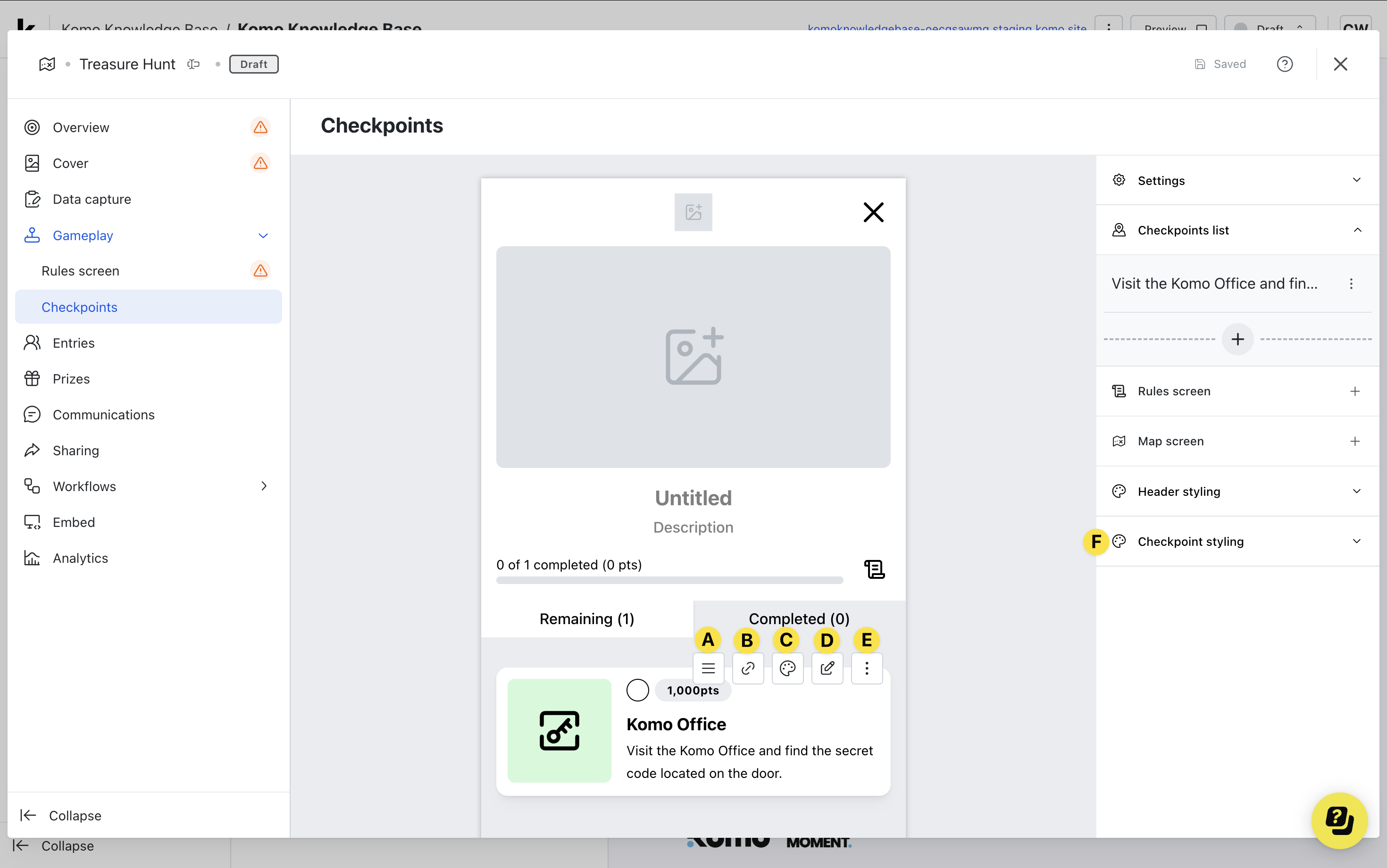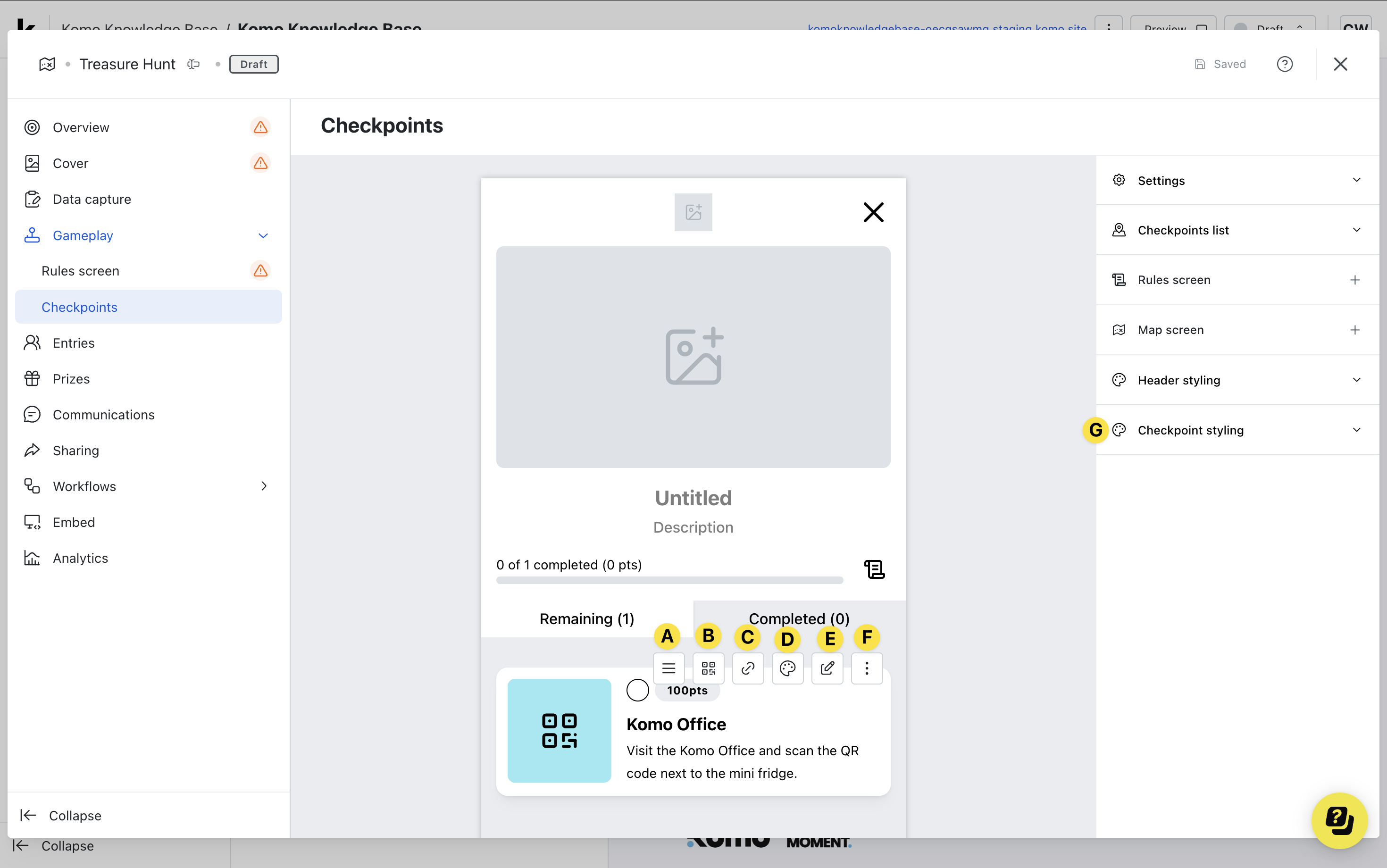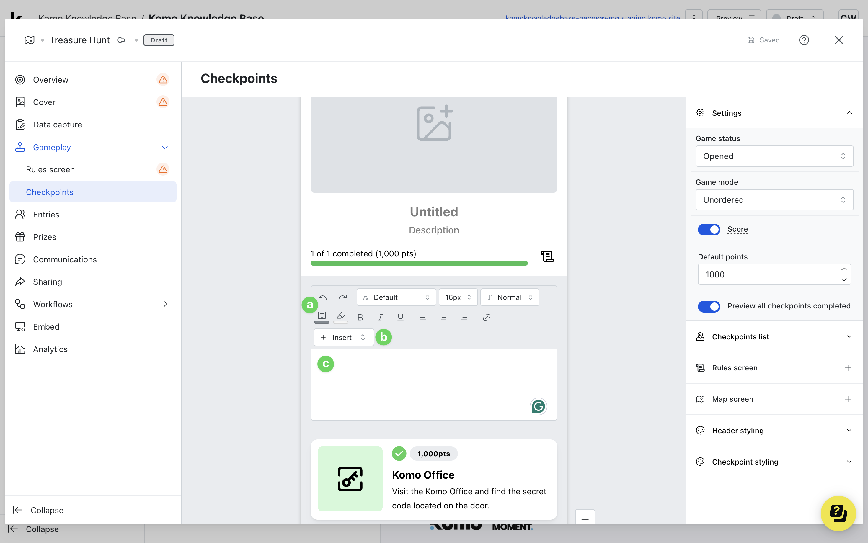 - Clicking on the Treasure Hunt will open the editing module.