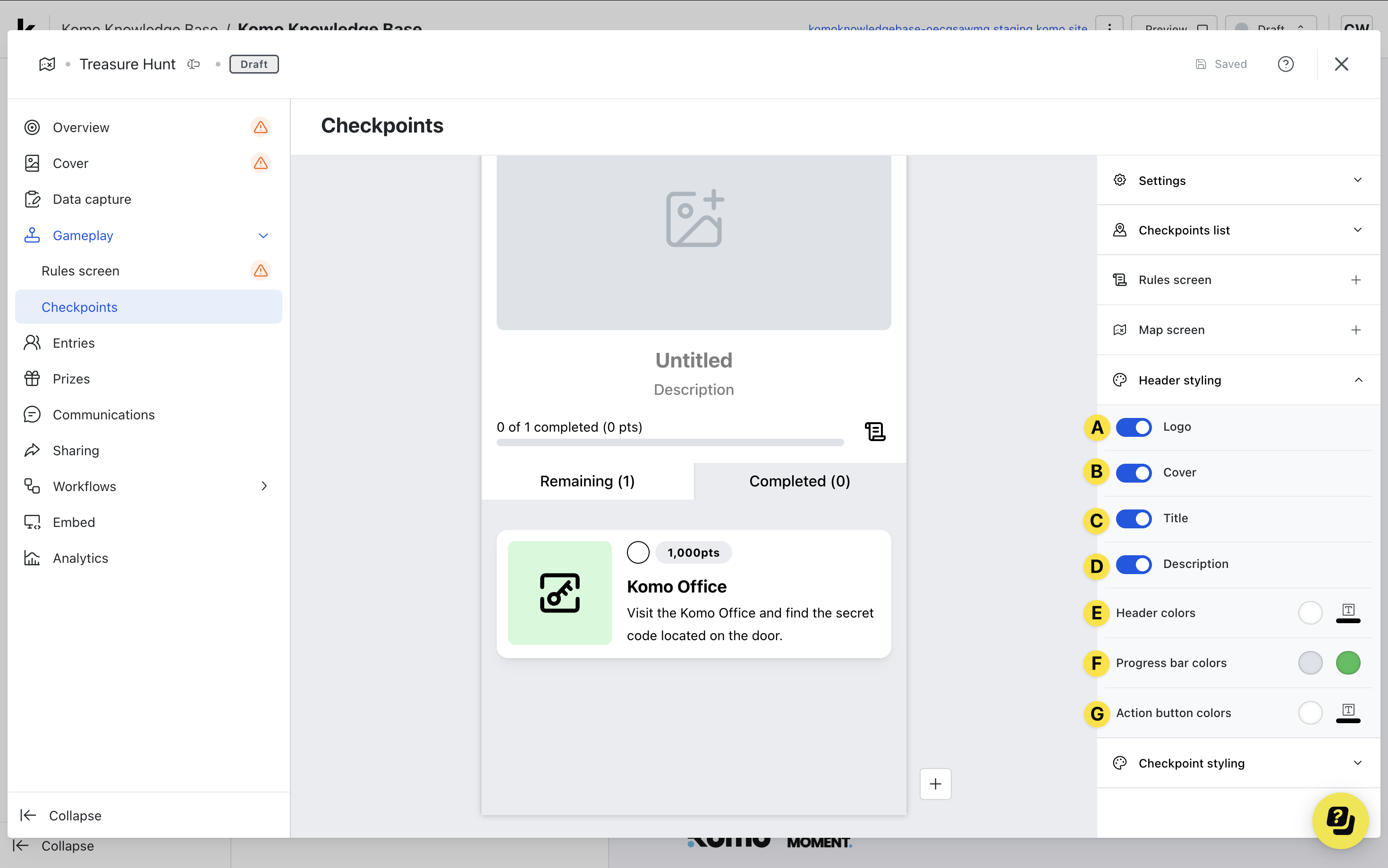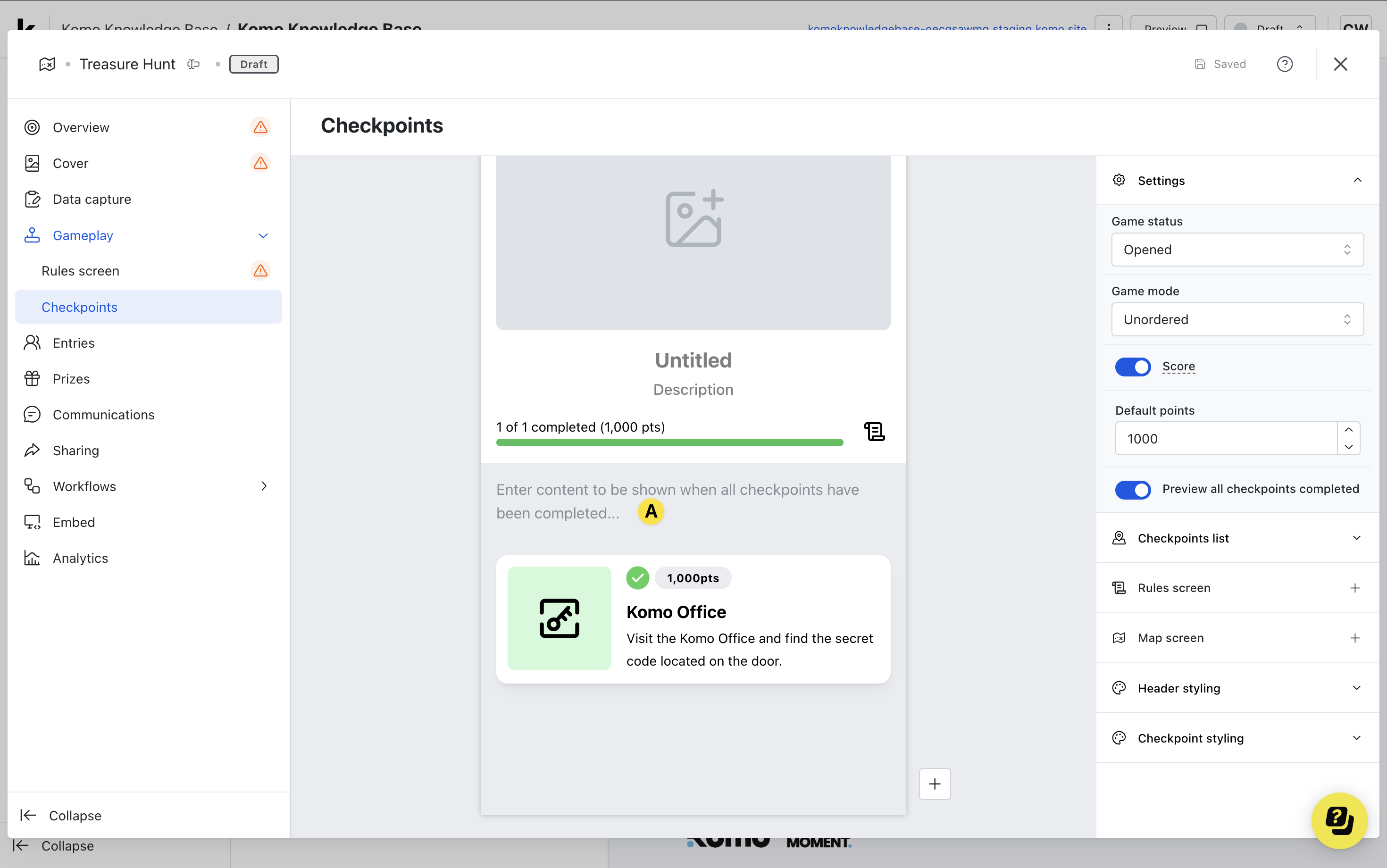 (9) Here you can preview the experience for when a user completes all checkpoints and add a completion banner or message.