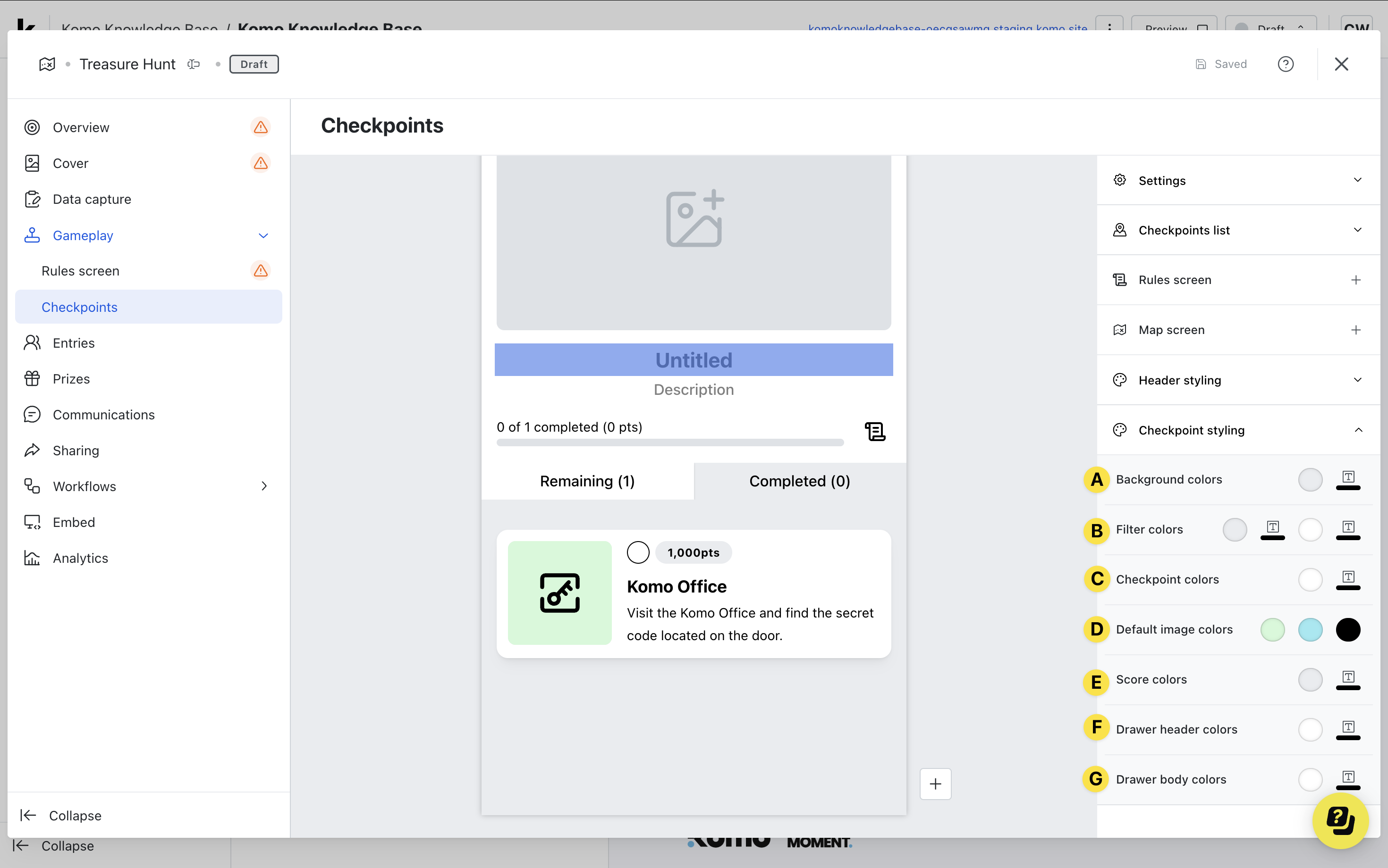 - (C) Edit the colors for the specific checkpoint or (F) you can set default colors here to apply to all checkpoints created.