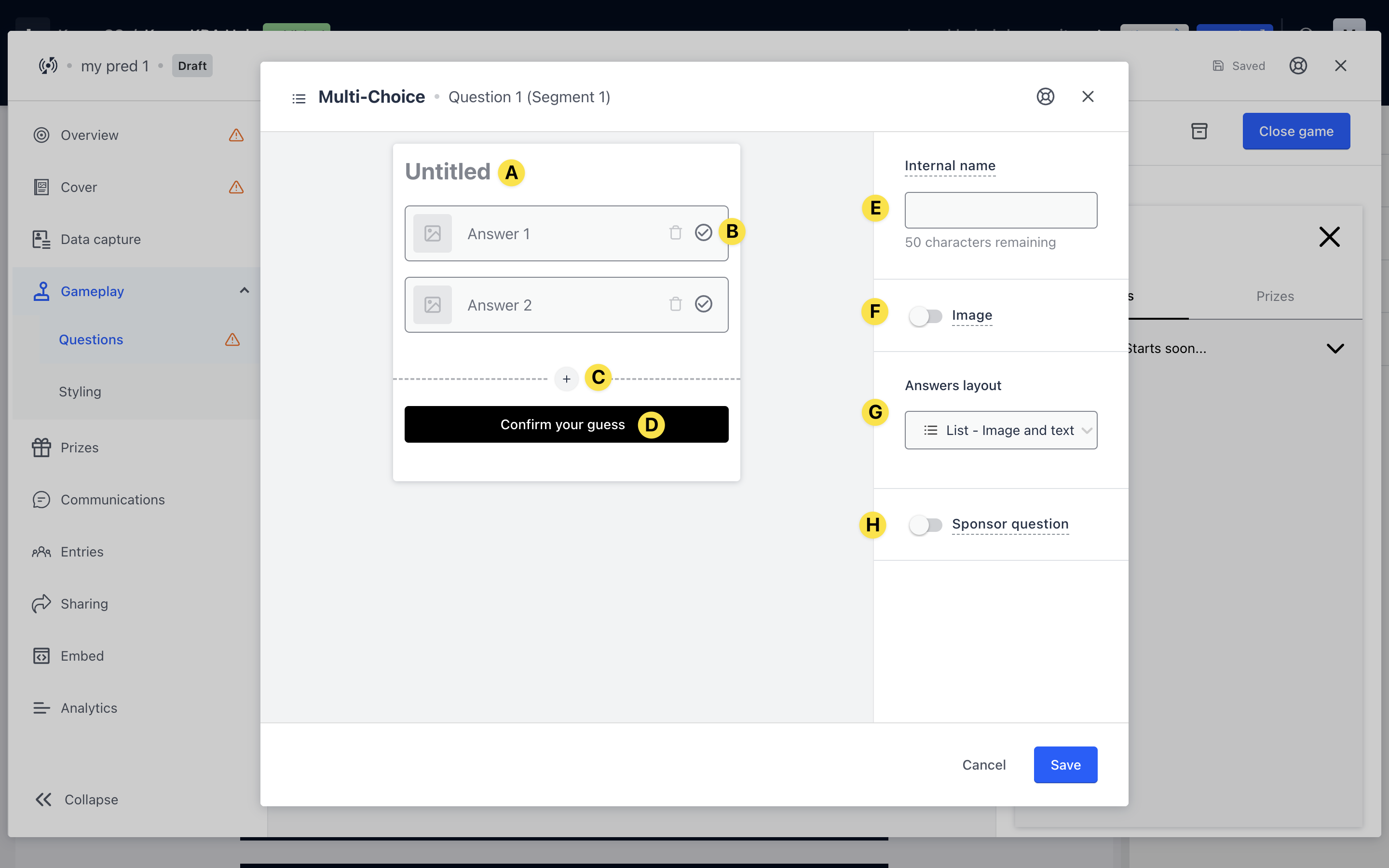 - (F) Toggling this on will allow you to add a cover image to the multi-choice question.