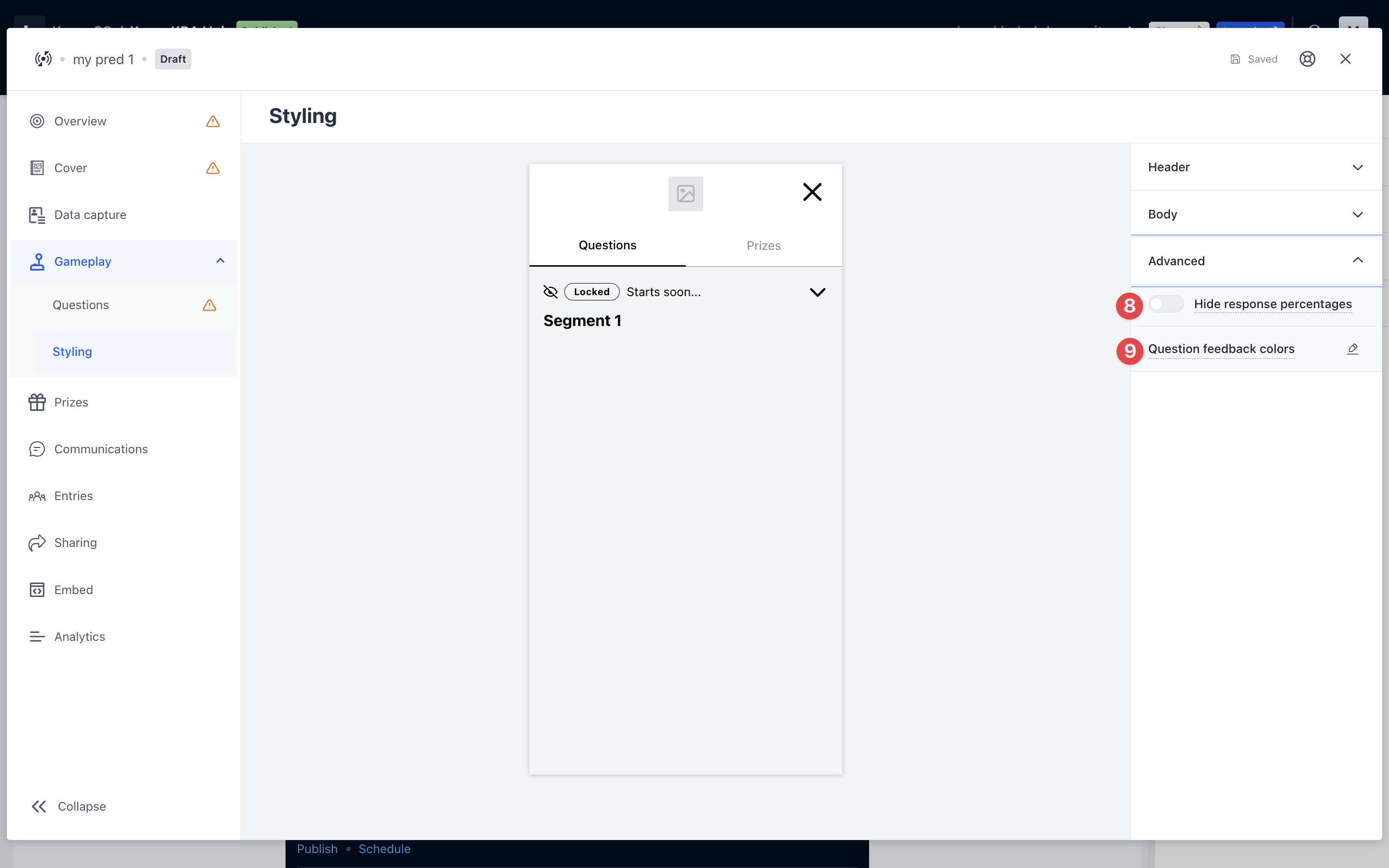 (9) Here you can configure the color of the answer borders when a user submits their predictions.