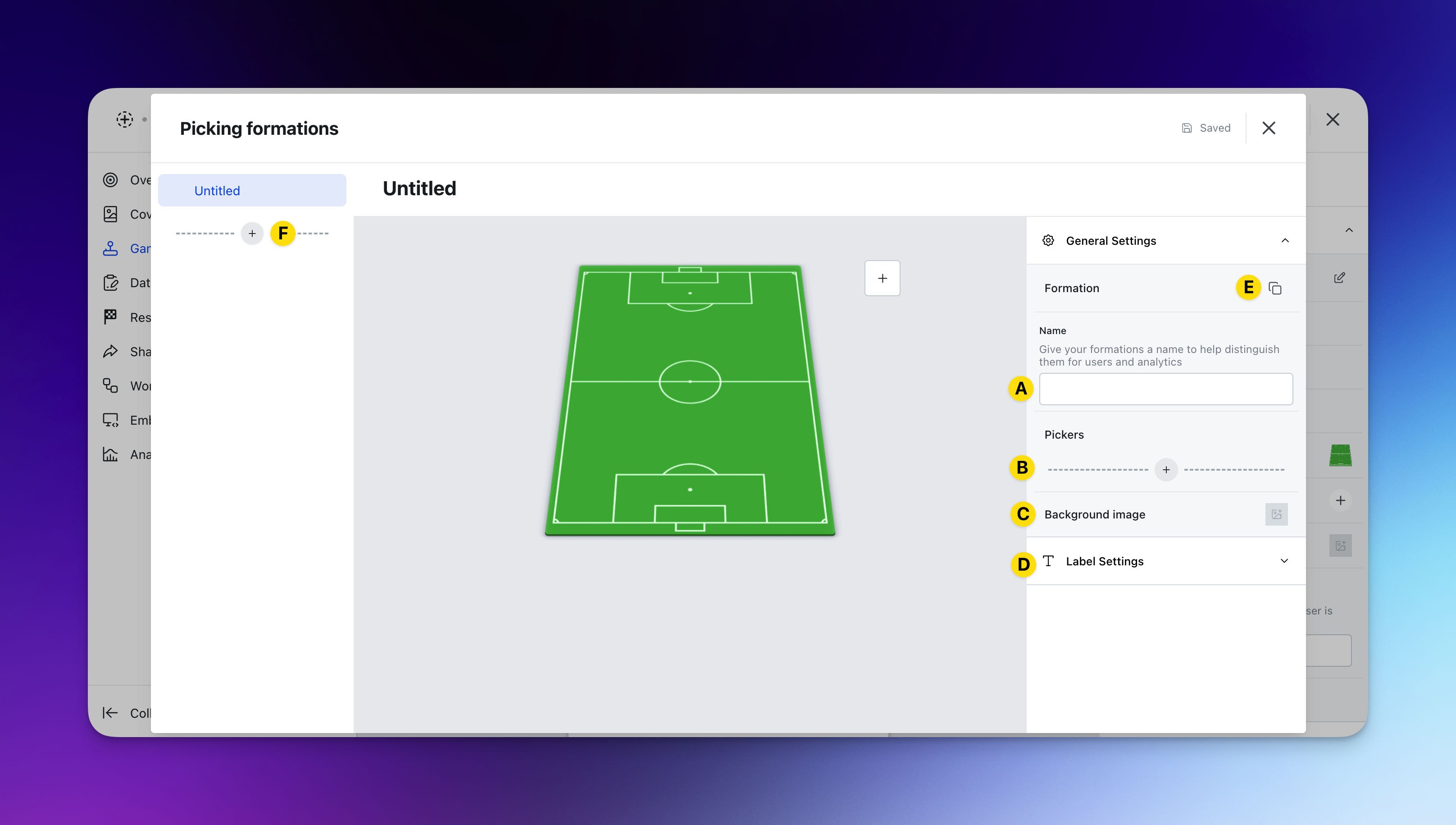 - (E) Here you can upload the default picker background image that will be added to each new formation