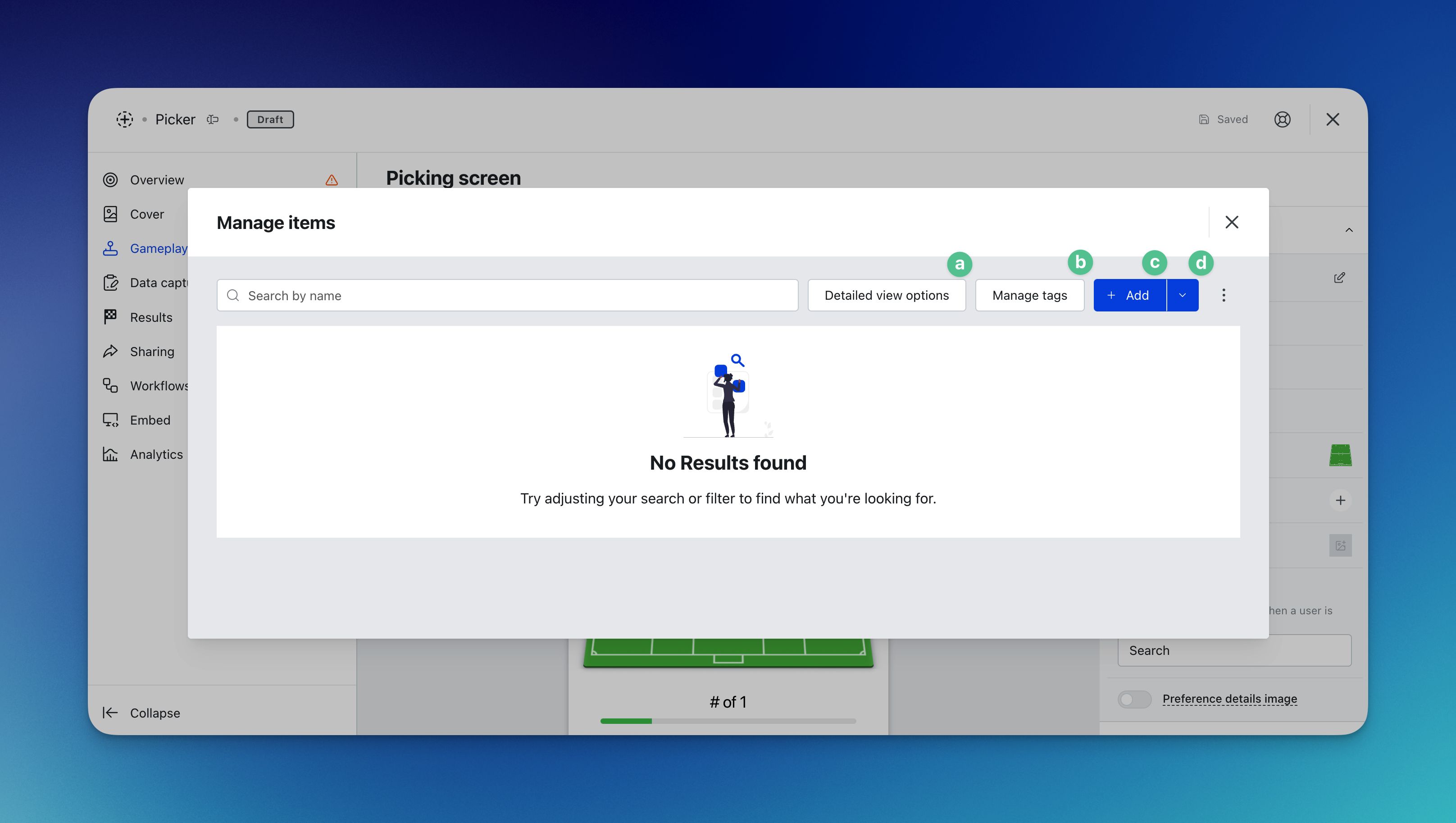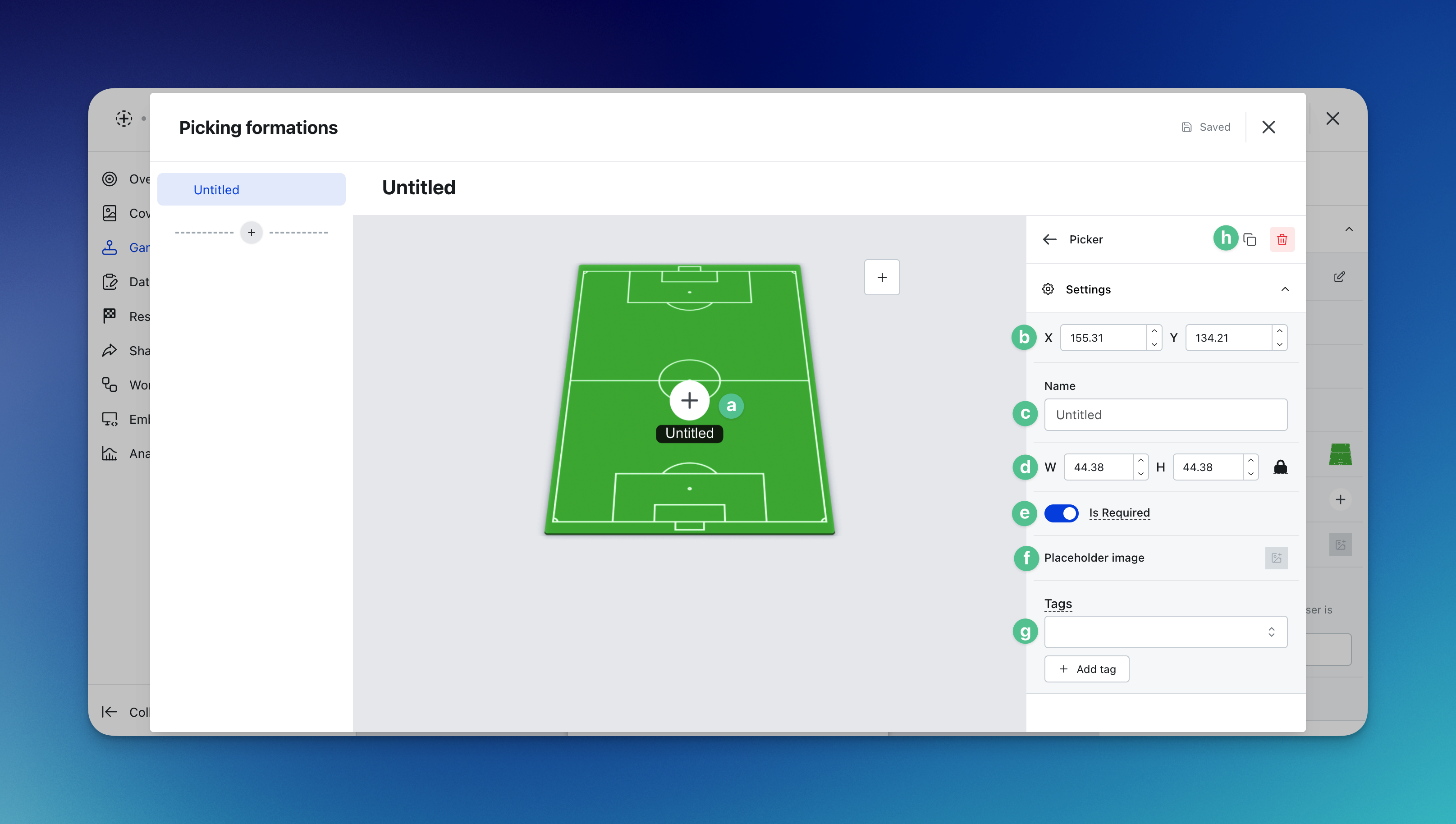 - (g) You can add and assign tags e.g. midfielder and goalkeeper under various pickers to filter through the total pickers