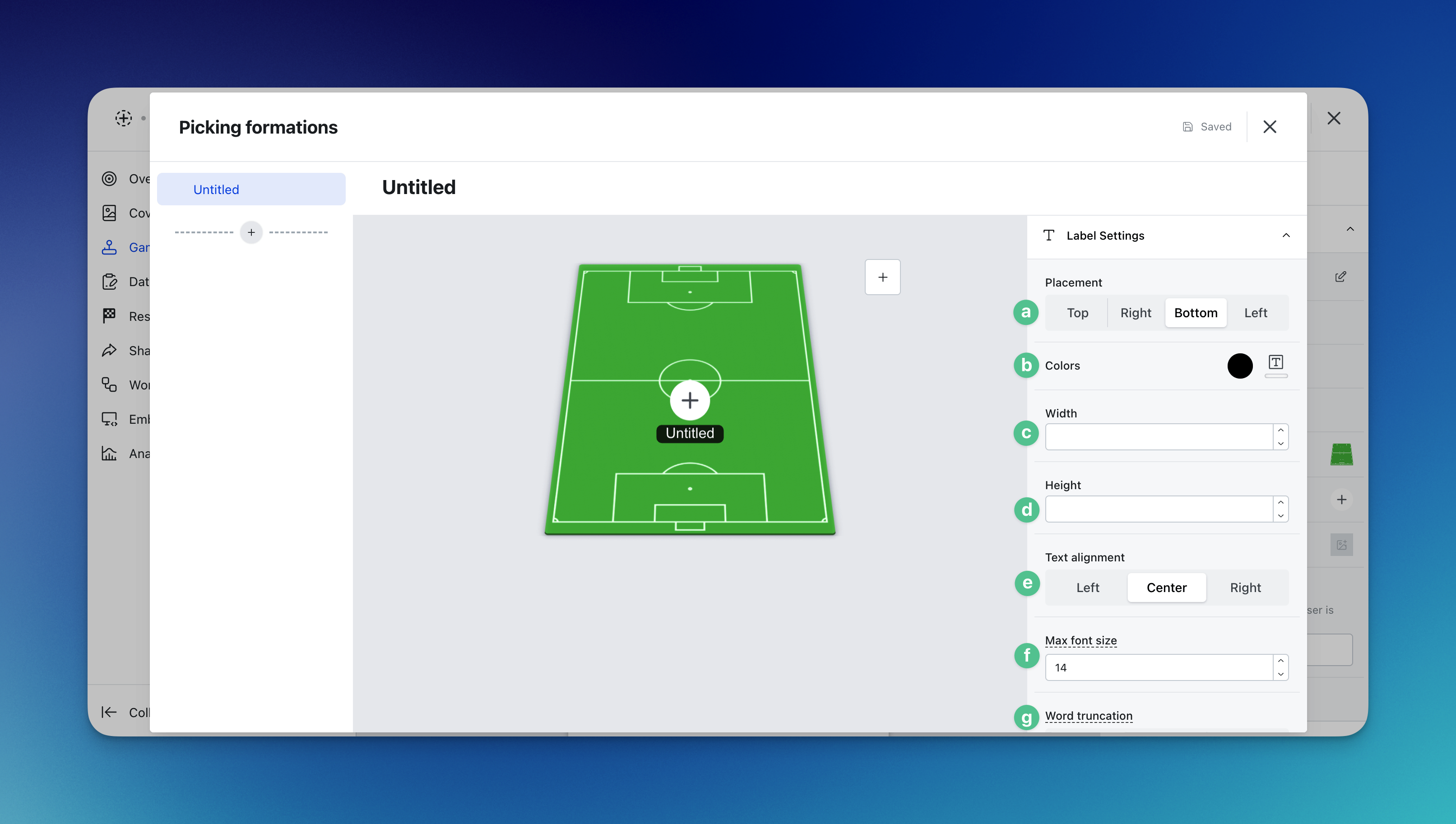 - (g) Here you have the opportunity to shorten the label of the picker e.g. L. Messi or Lionel M.