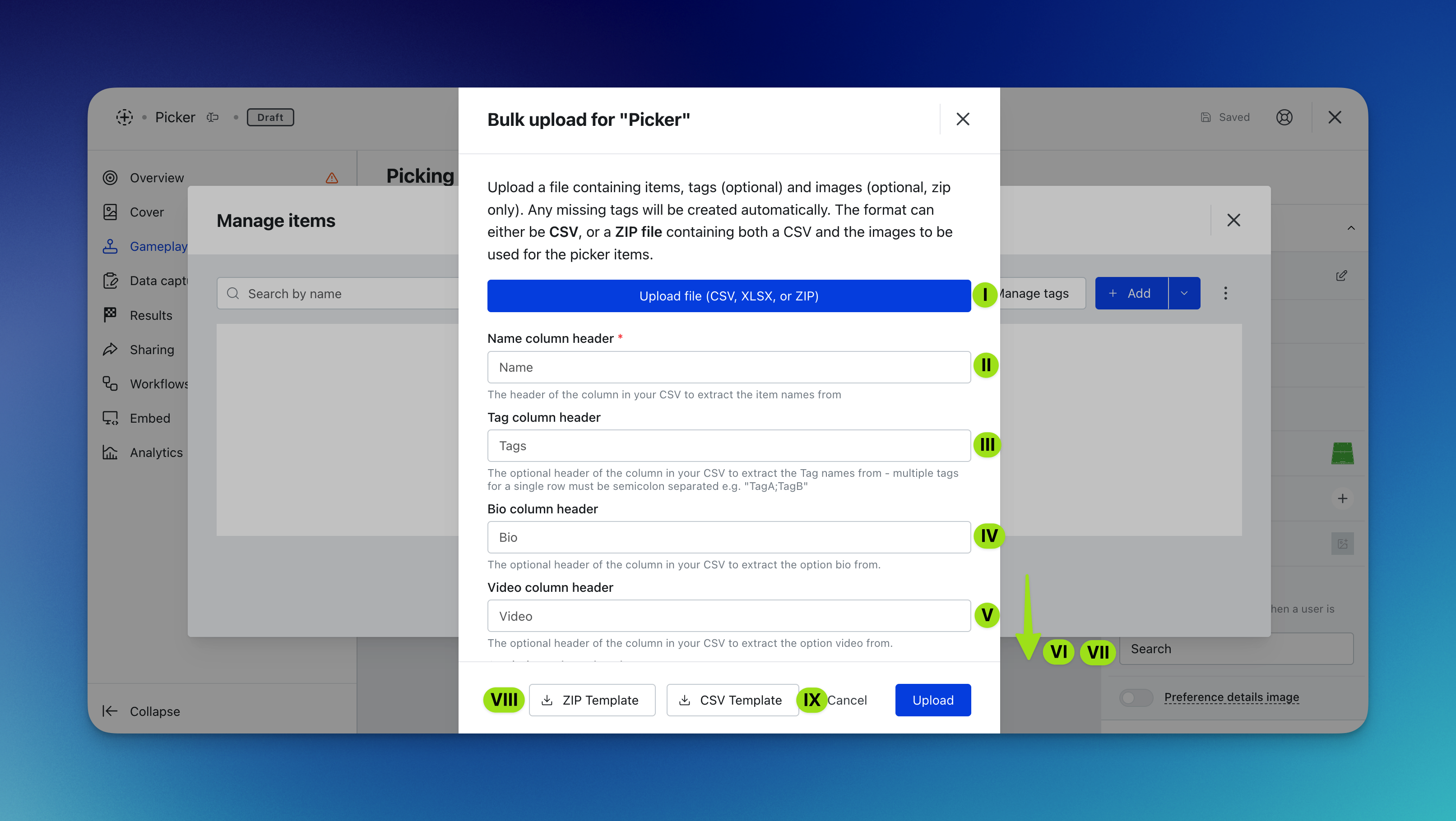 - (II) Enter the title of the column header in your CSV to extract the picker’s names from
