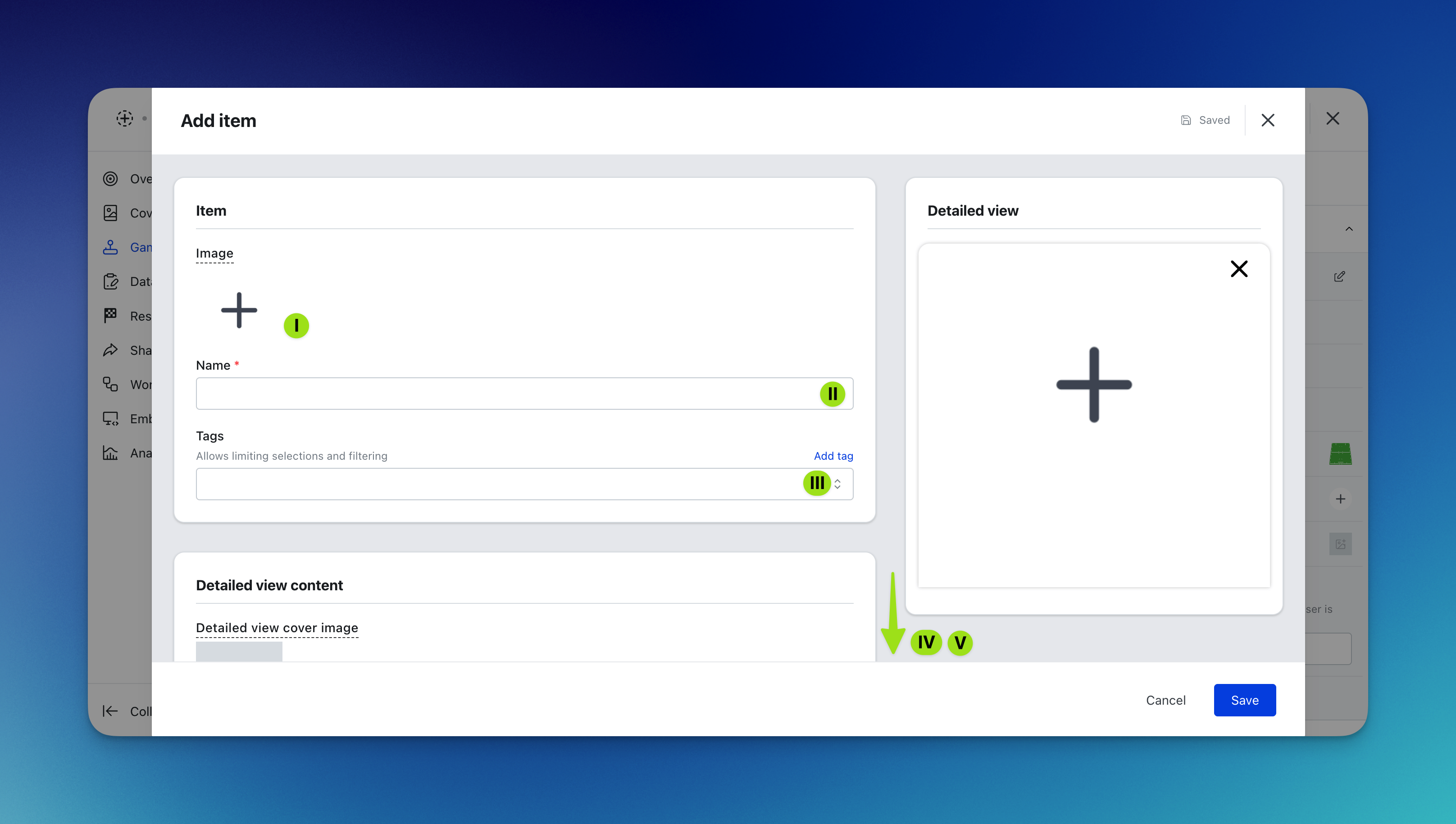 - (IV) Add an item cover image. Note: This image appears above the picker’s information and content