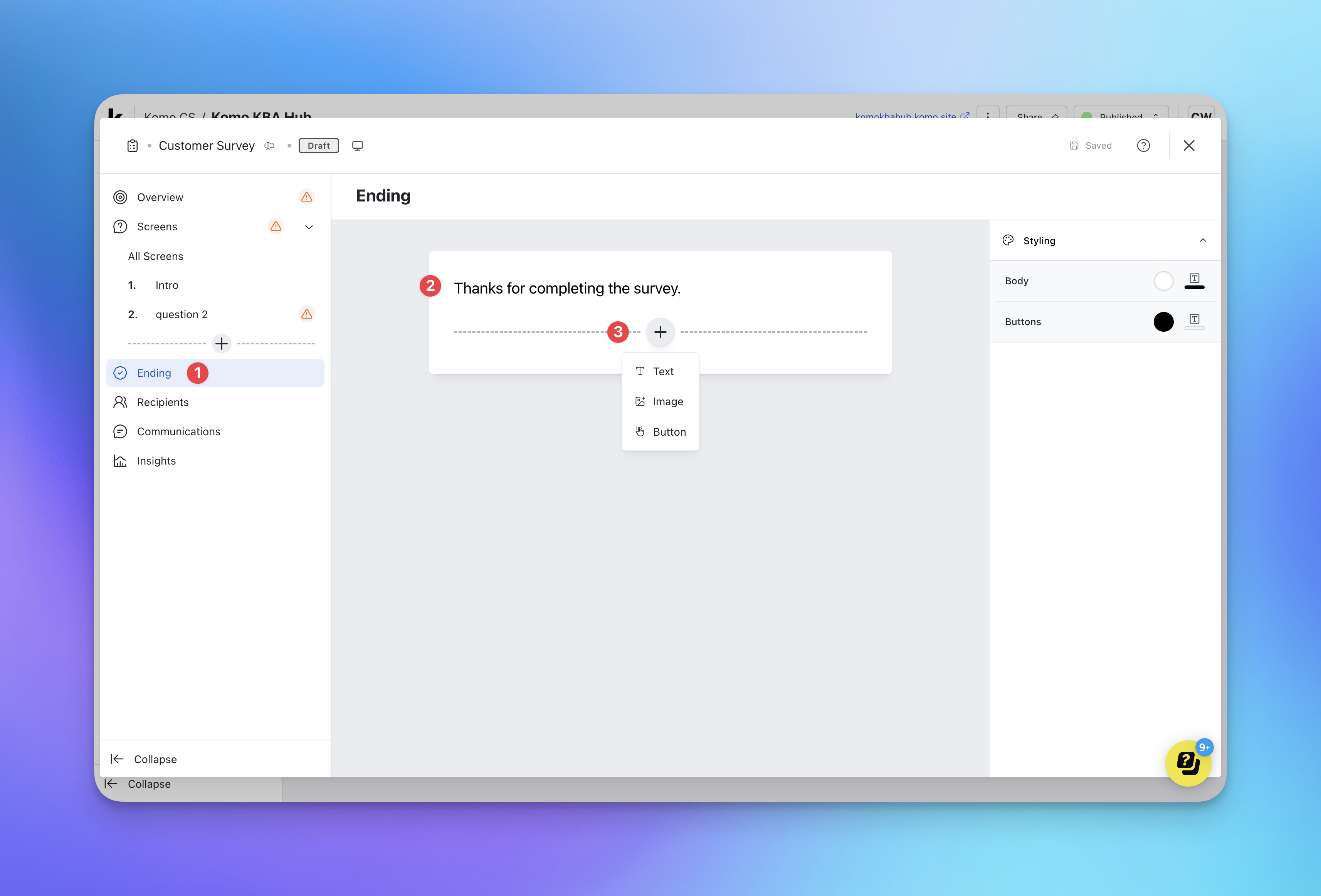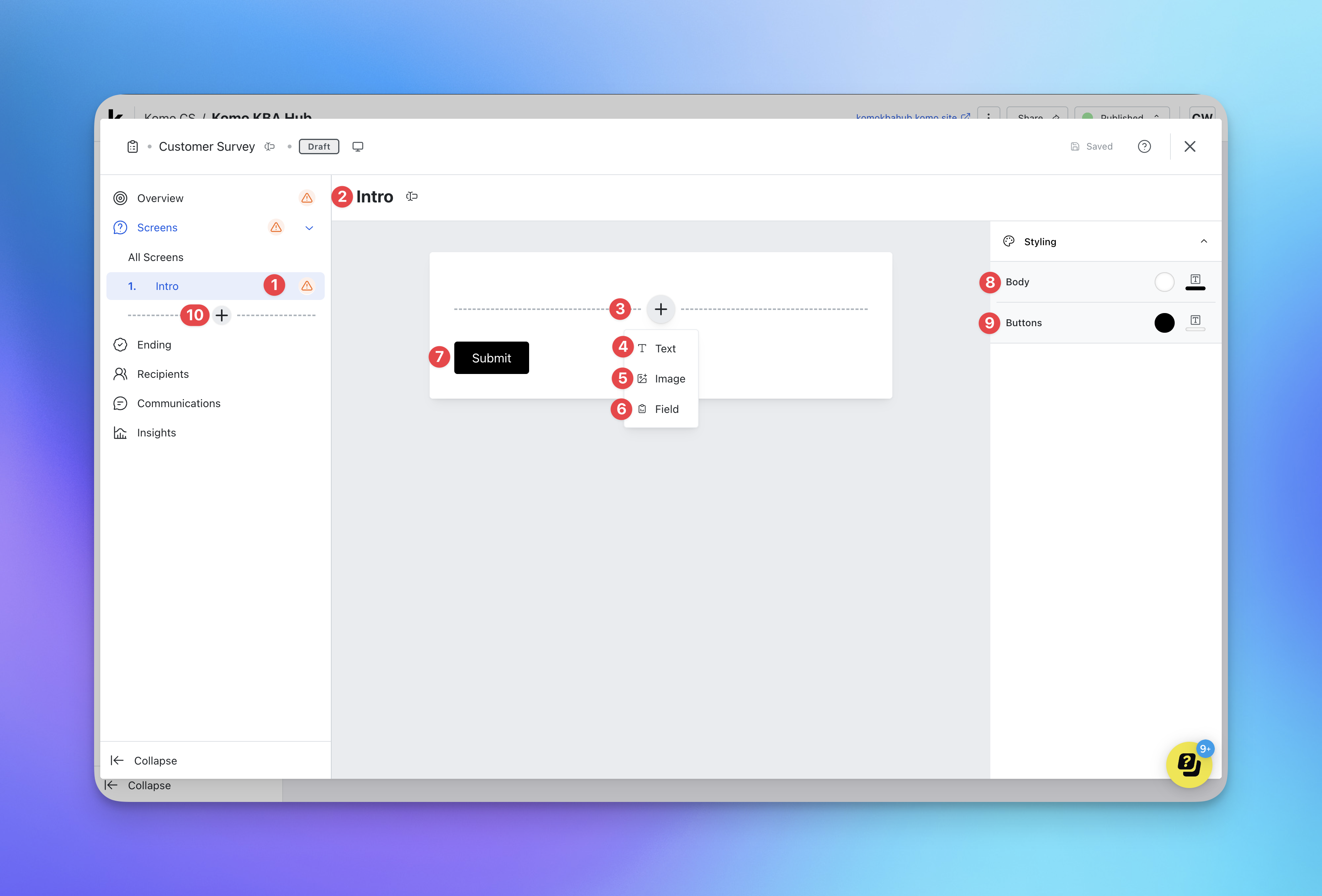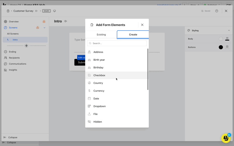 Using Komo’s Surveys tool, you can create and customize surveys with flexible screens and question types, then distribute them via unique links to capture insights within the flow of engagement. Read on to learn how to set yours up.