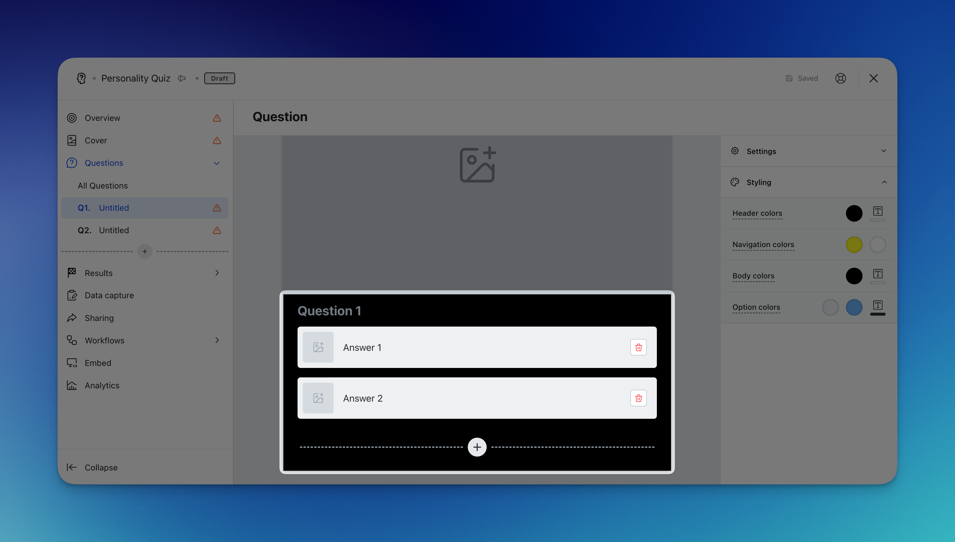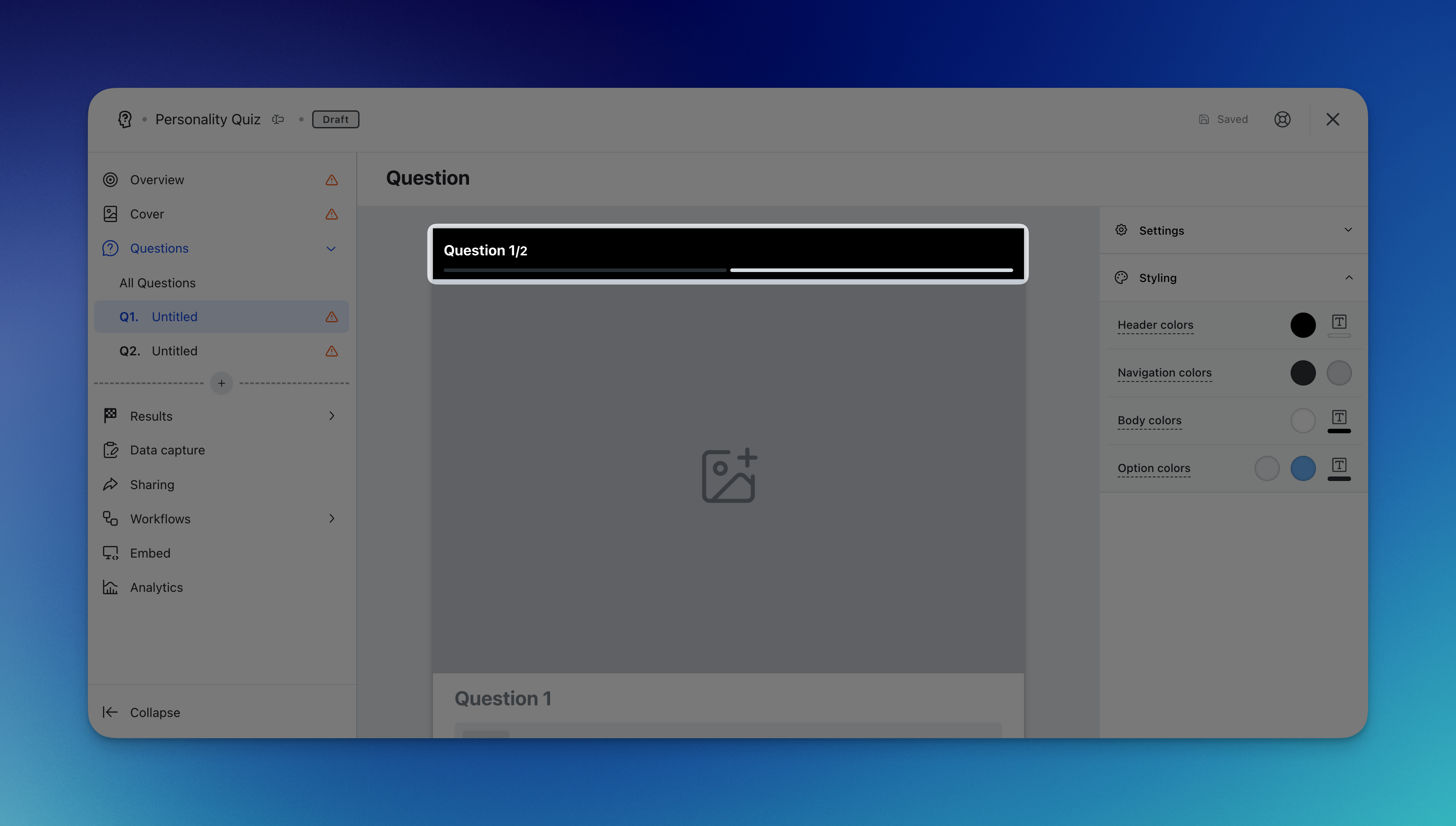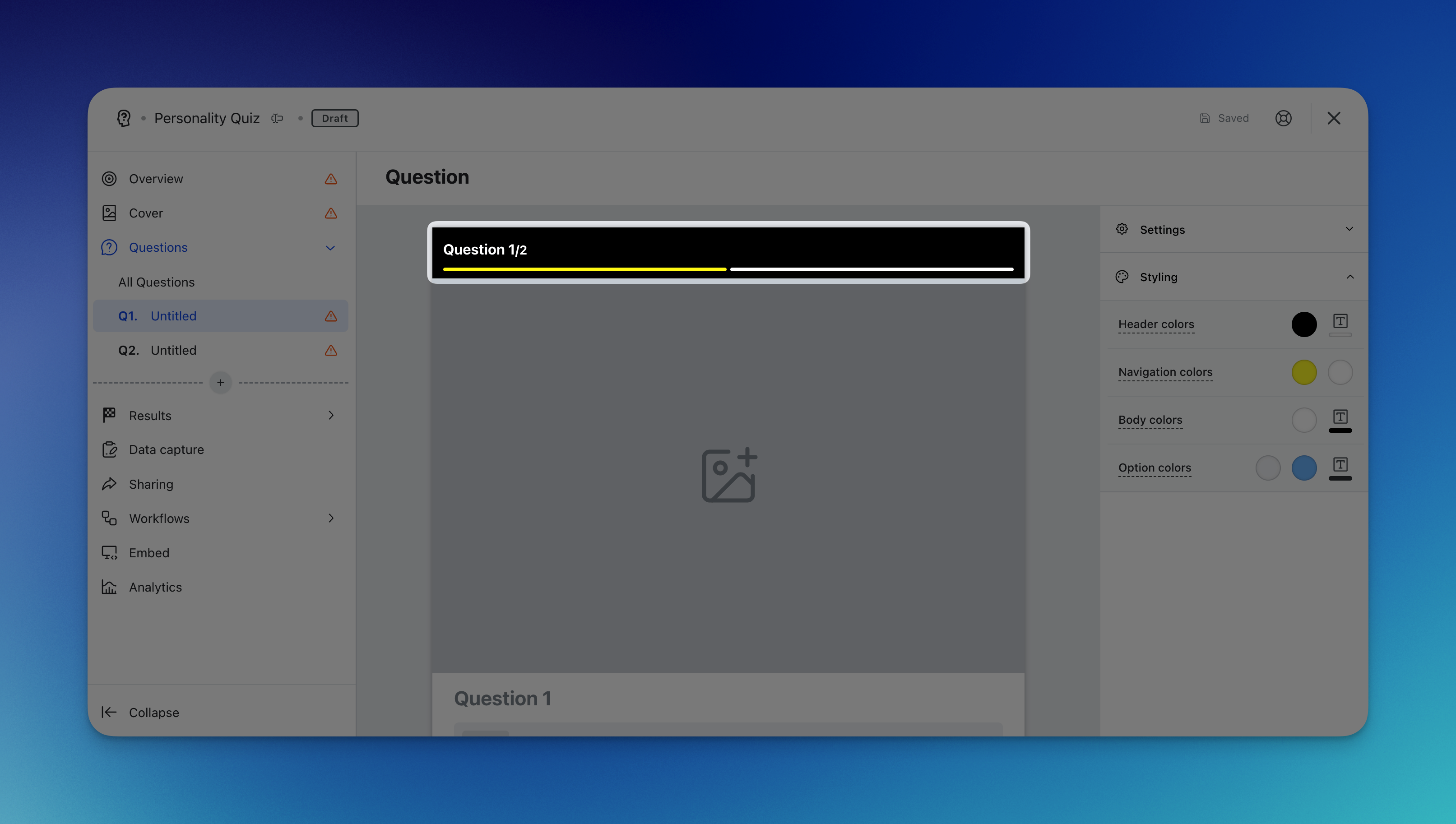 - (P) Brand the experience by altering the personality quiz styling colors.