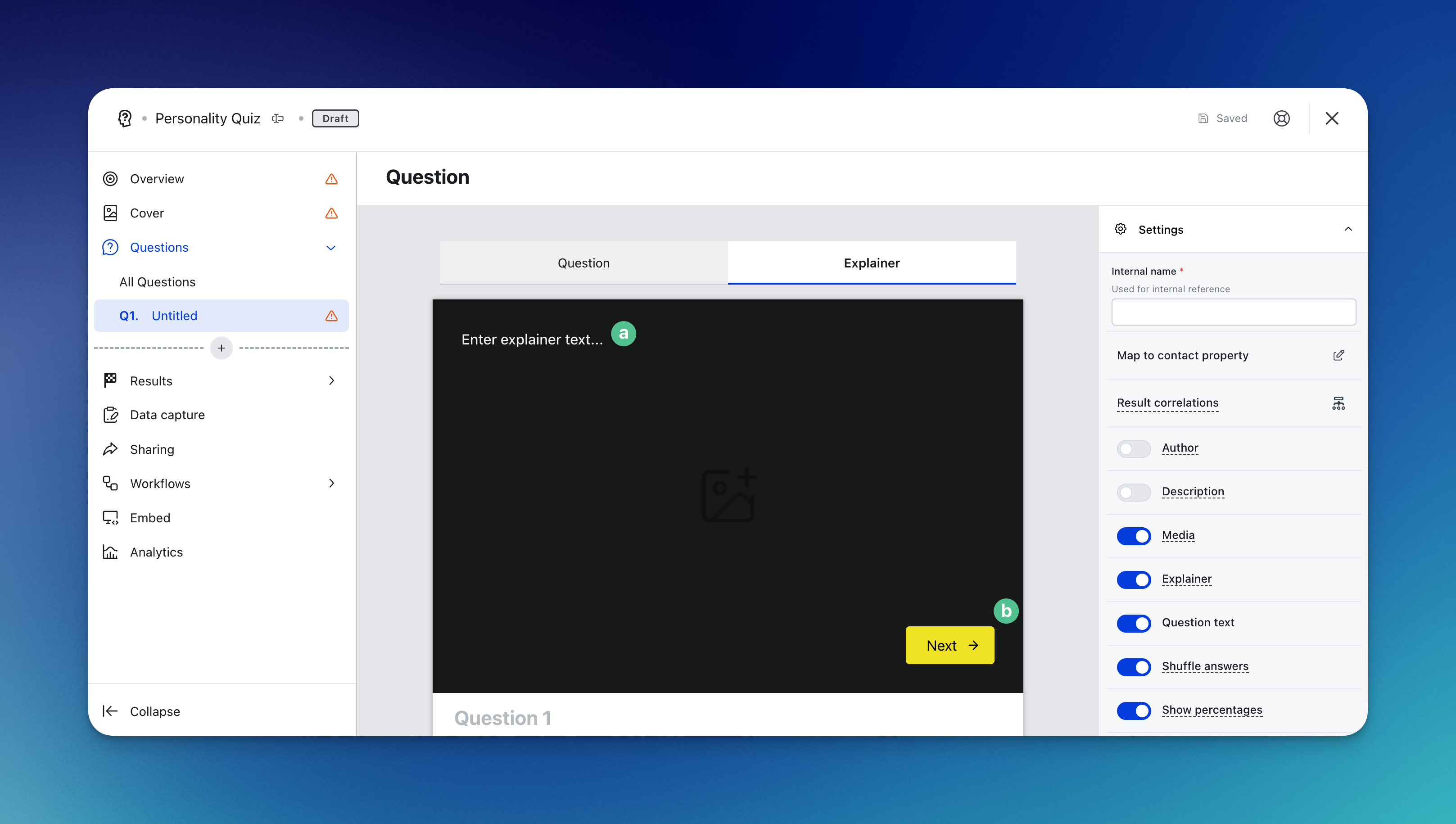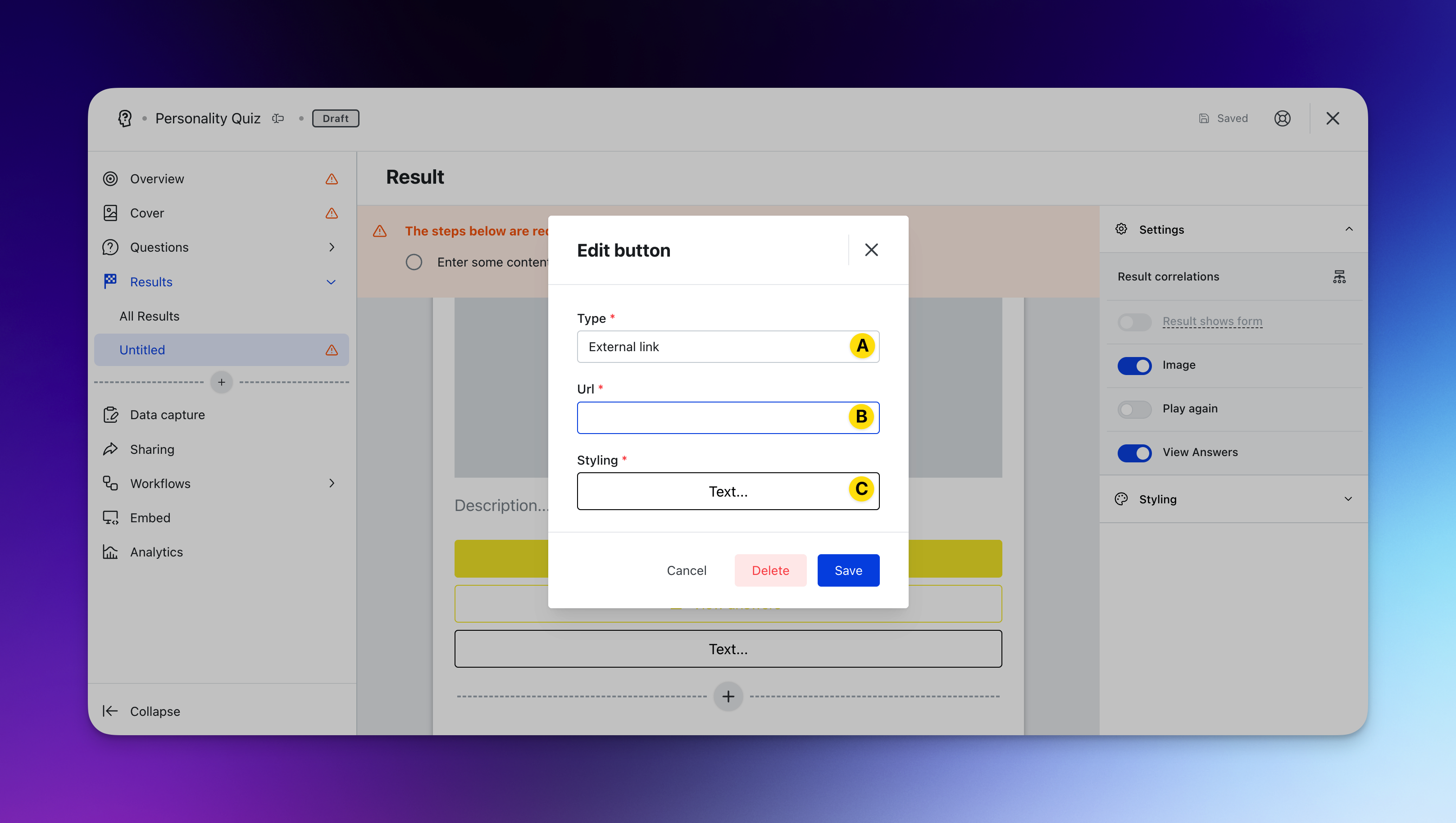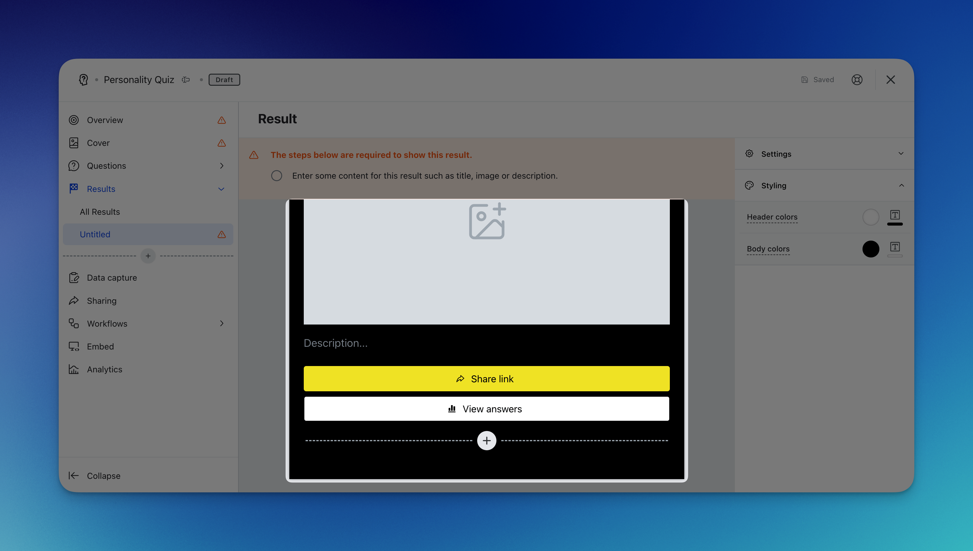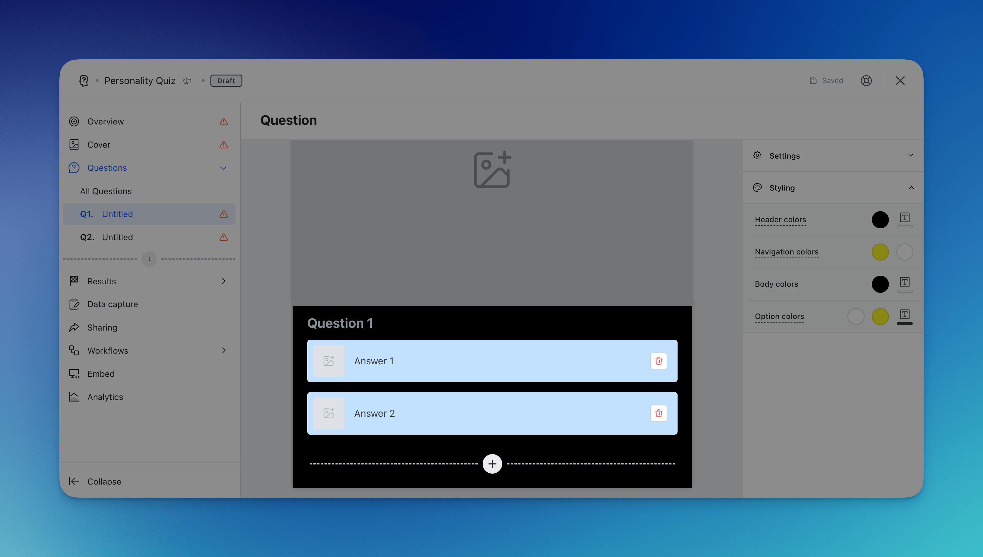- (P) Brand the experience by altering the personality quiz styling colors.