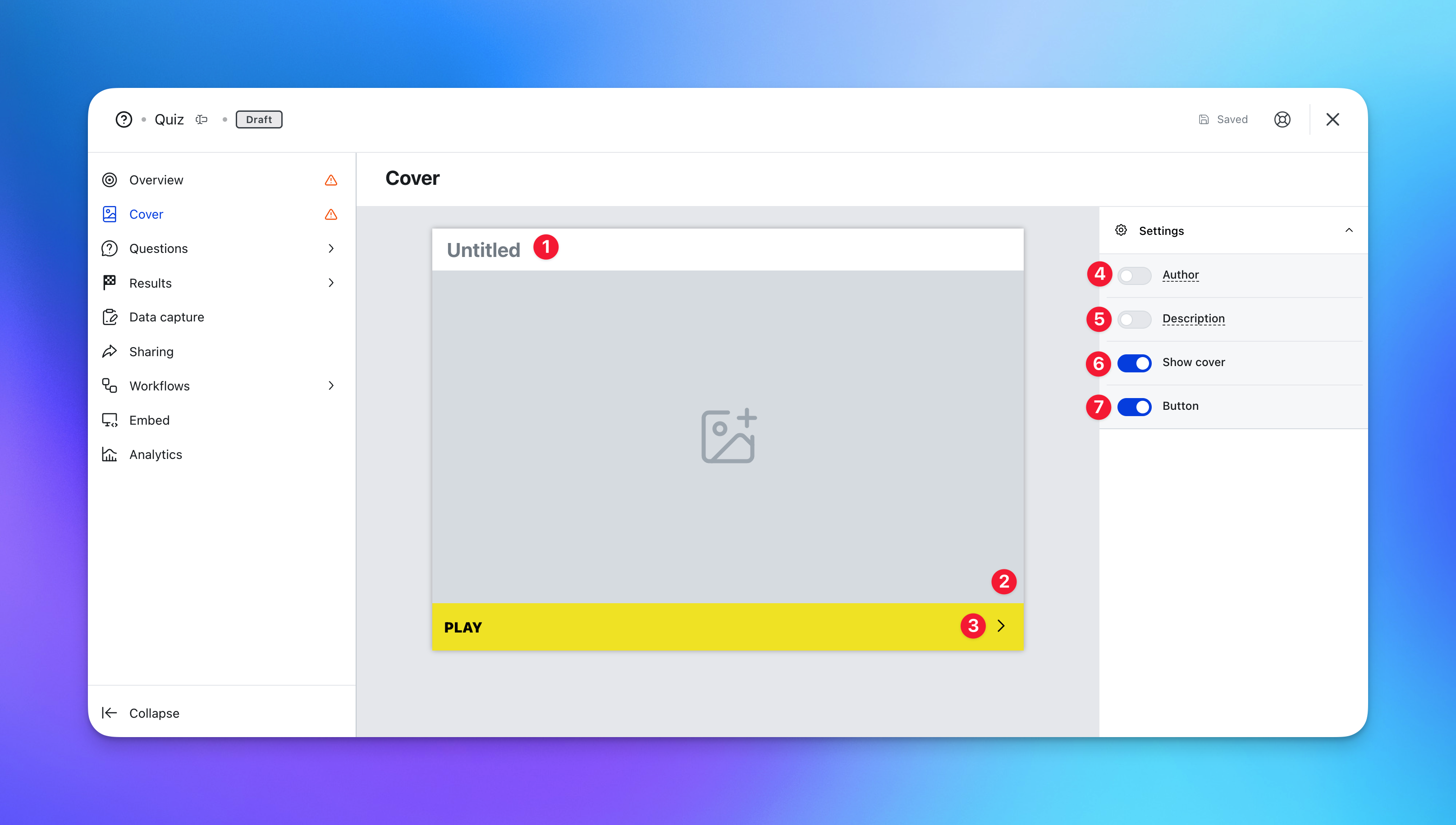 - (2) Here you add your Cover image or (6) you can turn off the cover here.
