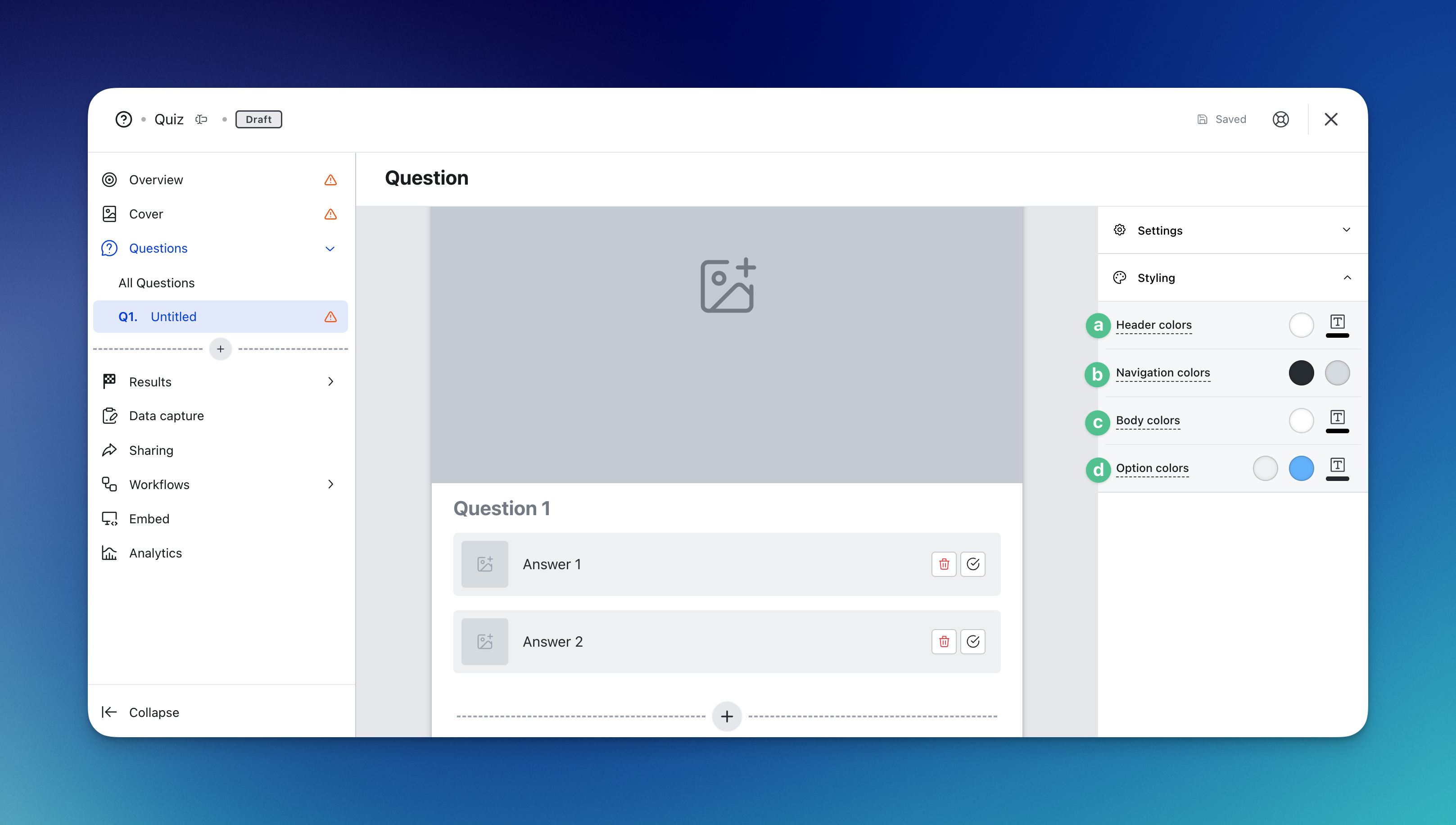 Ready to go live with your Quiz? We recommend reviewing the following list before launching and double-checking if you have:- All images uploaded are the correct dimensions. Export image files in 2x to ensure none of the images appear pixelated.