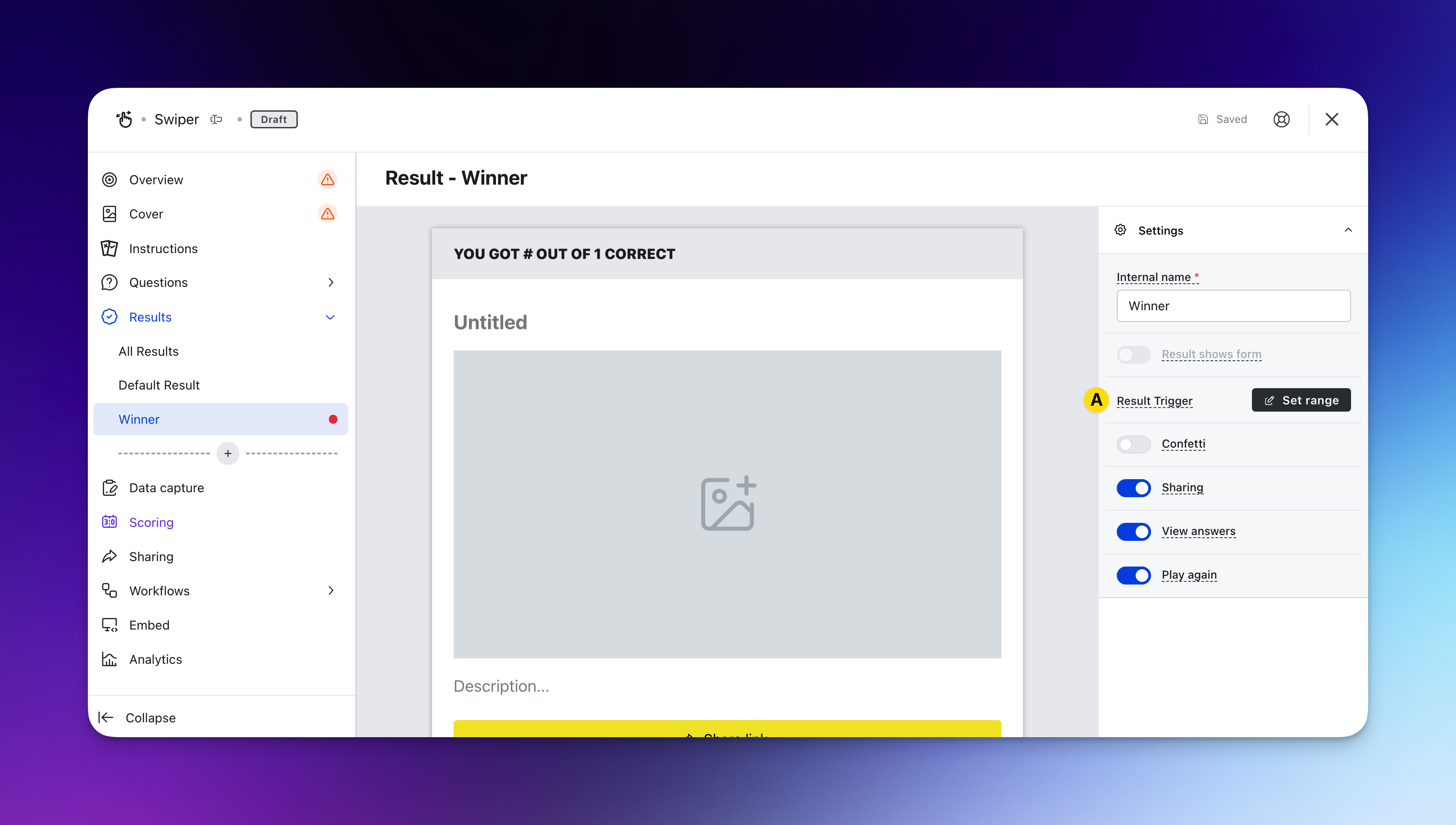 Whilst adding a competition to your Swiper is recommended to collect data, it is not always required and can be used purely as an engagement piece.Ready to set up your competition?