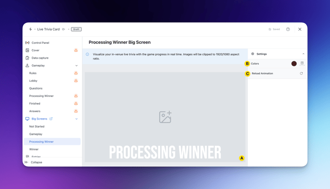 - (C) Here you can reload the processing winner animation.